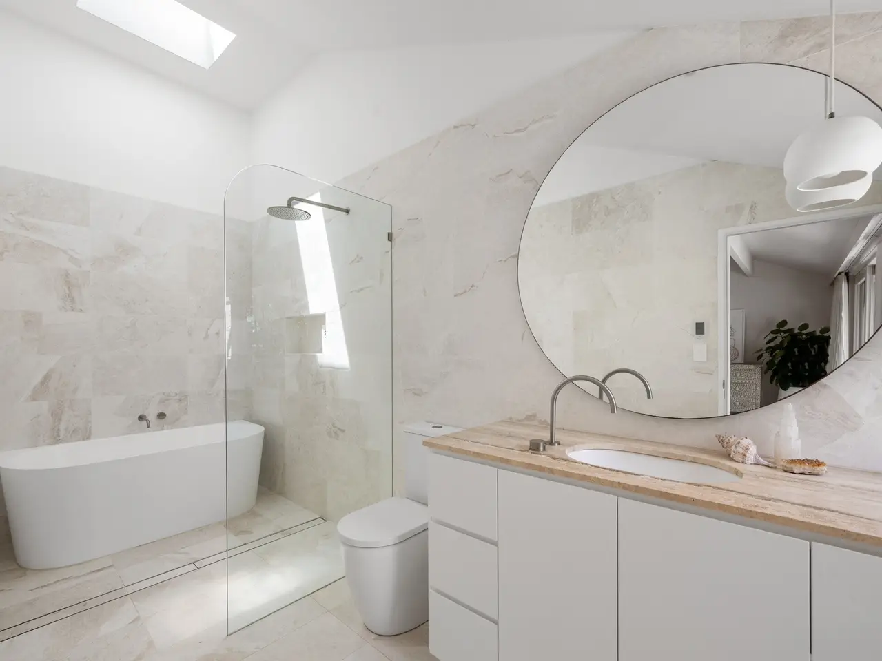 Perfectly balanced and quietly breathtaking, this home's low-slung profile and bold architectural lines unfold into a dazzling residence that's both simple and sophisticated; boasting a dress-circle setting in the heart of North Avalon, it soaks up abundant natural light from sunrise till magic hour, delivering a polished family retreat and erasing all the usual boundaries for living, entertaining and working. Soaring interior spaces and clean minimalist forms are counter-balanced by the sculptural staircase - a fluid, organic centrepiece that elevates the architecture and anchors the home with a defining work of art. The refined design sensibility, together with a clean, neutral palette set the overall tone, while extensive glazing provides a deep visual and sensory connection to the gardens, decks and pool; vast sliding doors open entirely to the gorgeous landscaping in front and back, creating an environment at one with seasonal variations. It's a perfect complement to the luminous, open layout, complete with chef's kitchen, family room, home office and studio space. - Contemporary design at its best: sleek, stylish and innovative - Refined and relaxed - an environment of luxurious simplicity and calm - Level of craftsmanship is evident in every detail, large and small - End-to-end rebuild in 2022; custom-designed from the ground up - Abundant north light, dress-circle setting, impressive 835sqm parcel - Seamless connection to front and rear gardens, decks and sunlit pool - Custom-designed lighting, joinery & fluted glass pivot door at entry - Gently curved, sculptural staircase is flooded with natural light - Vein-cut travertine benches in kitchen, living areas and bathrooms - Designer kitchen; integrated Bosch/Miele appliances + zip hydro tap - Separate media/family room, home office and custom-built studio - Parent's wing with marble-tiled ensuite, walk-in robes + deck access - Upstairs bedrooms are large and bright, each with built-in robes - Bathrooms with heated floors, designer finishes + guest powder room - Private, landscaped gardens; native in front and tropical in back - Ducted climate control, integrated sound system, built-in BBQ - Easy level walk to North Avalon shops, cafes, school and beachfront