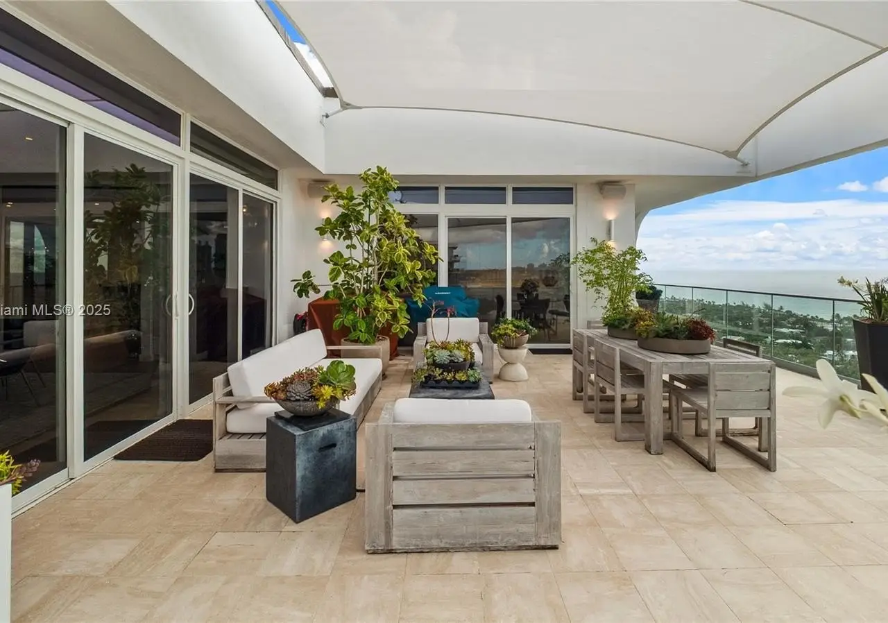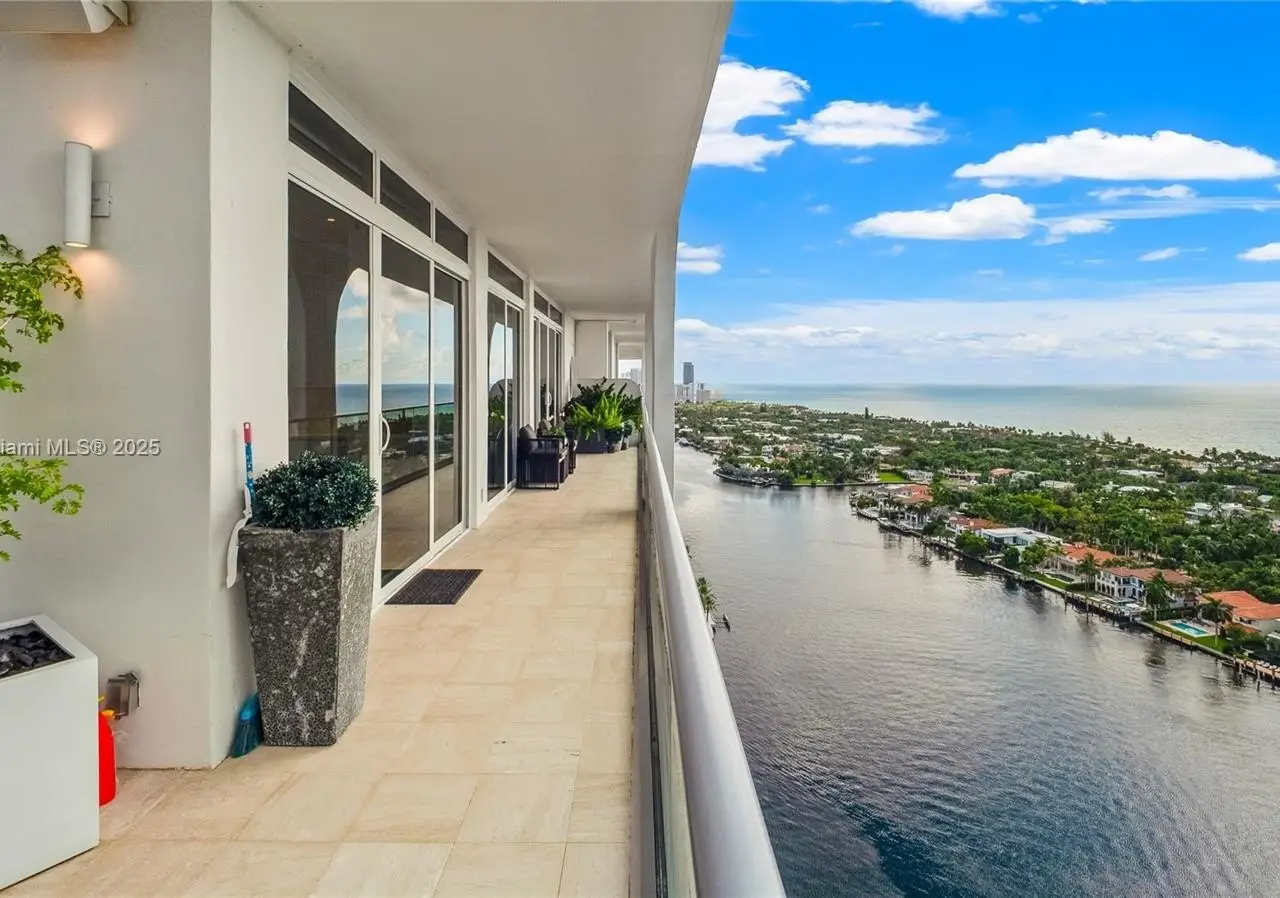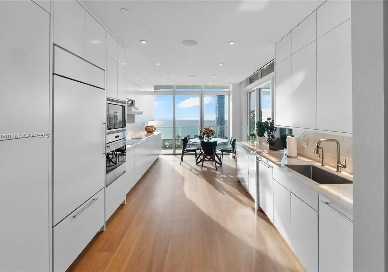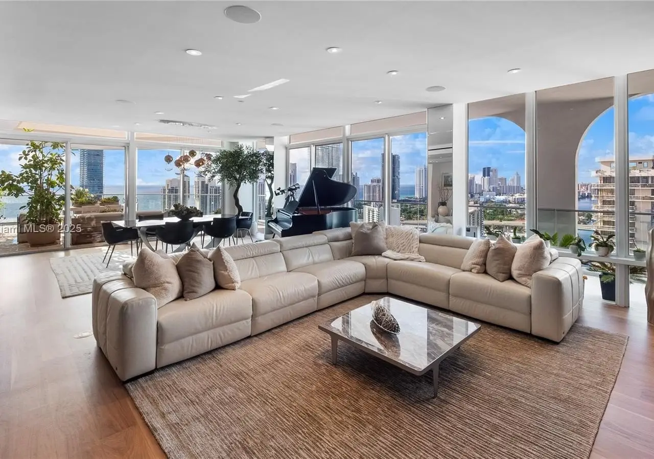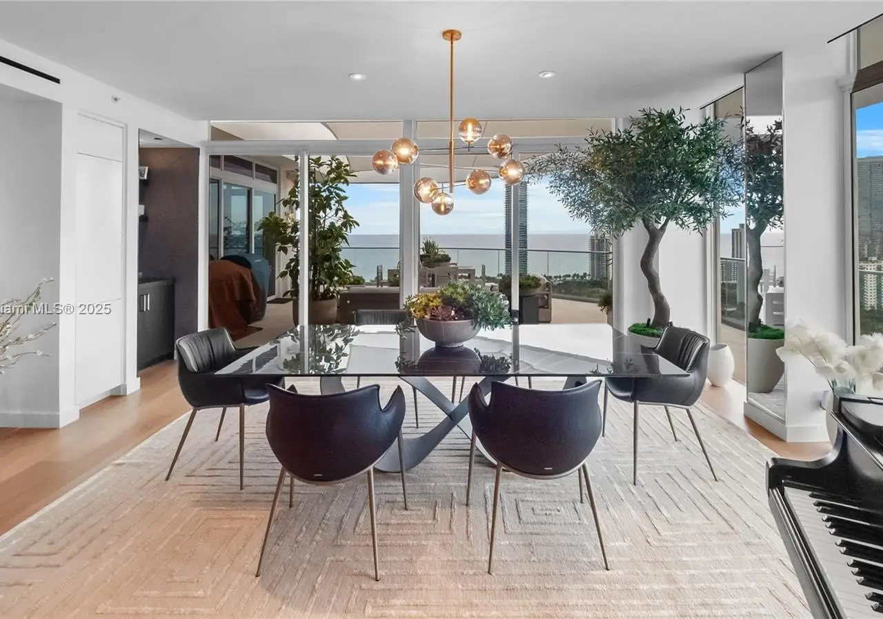 Experience luxury living in this exclusive penthouse with breathtaking direct ocean and Intracoastal views. Perfectly located near Aventura Mall, beaches, and fine dining, this 5-bedroom, 3.5-bath residence features two master suites, including a primary with a custom women's closet and a stunning Versace-tiled bath. The gourmet kitchen boasts Wolf and Sub-Zero appliances, Italian finishes, and Cristalito countertops with underlighting. Elegant interiors include custom cabinetry, a Versace-trimmed fireplace, Sonos audio, Lutron lighting, and remote blinds. A wraparound balcony invites outdoor dining and entertaining. Resort-style amenities include pool, valet, fitness center, restaurant, theatre, social room & marina. Fully funded reserves.