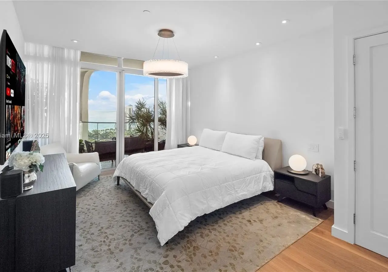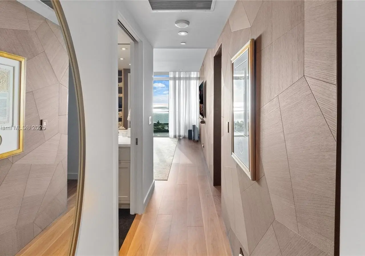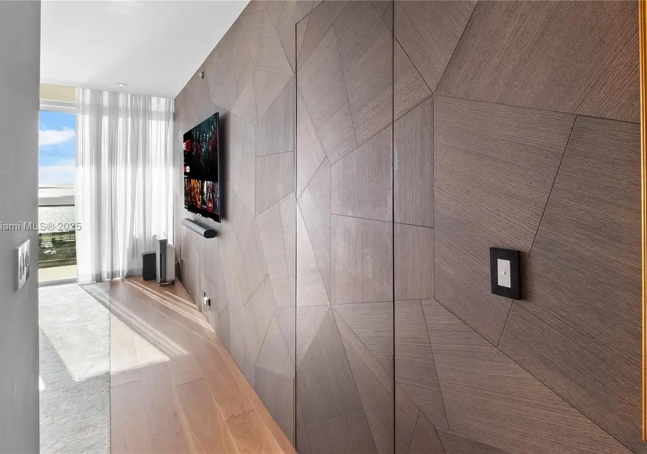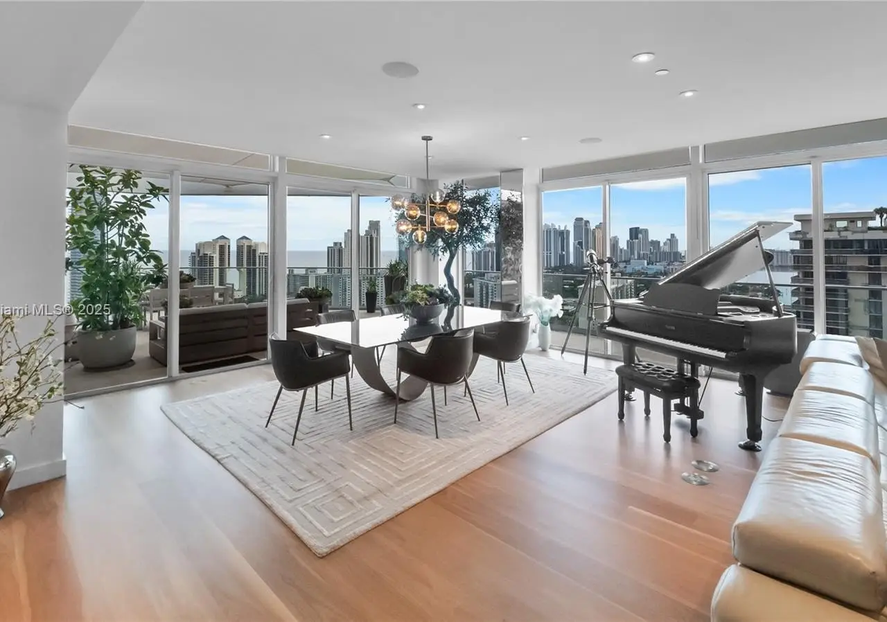 Experience luxury living in this exclusive penthouse with breathtaking direct ocean and Intracoastal views. Perfectly located near Aventura Mall, beaches, and fine dining, this 5-bedroom, 3.5-bath residence features two master suites, including a primary with a custom women's closet and a stunning Versace-tiled bath. The gourmet kitchen boasts Wolf and Sub-Zero appliances, Italian finishes, and Cristalito countertops with underlighting. Elegant interiors include custom cabinetry, a Versace-trimmed fireplace, Sonos audio, Lutron lighting, and remote blinds. A wraparound balcony invites outdoor dining and entertaining. Resort-style amenities include pool, valet, fitness center, restaurant, theatre, social room & marina. Fully funded reserves.
