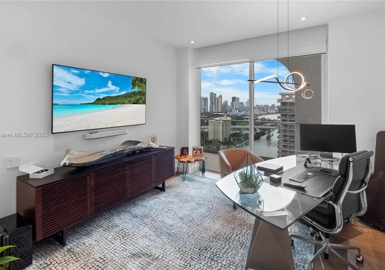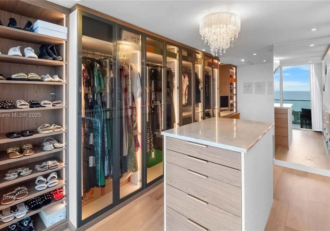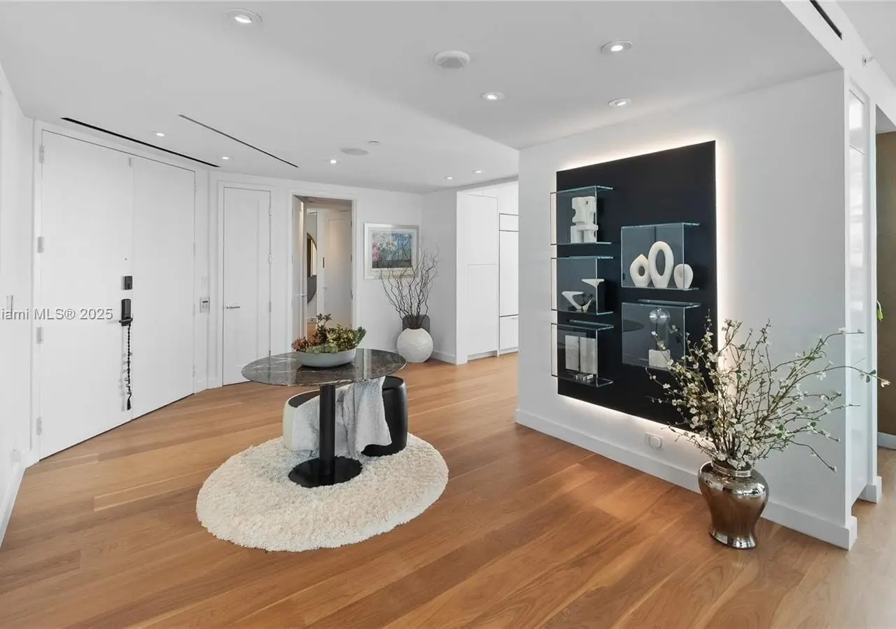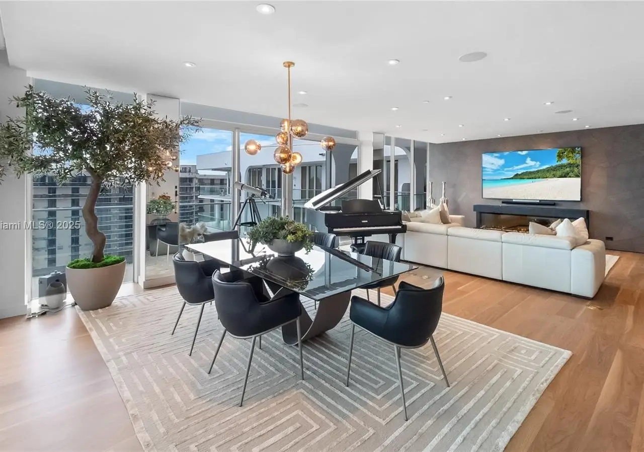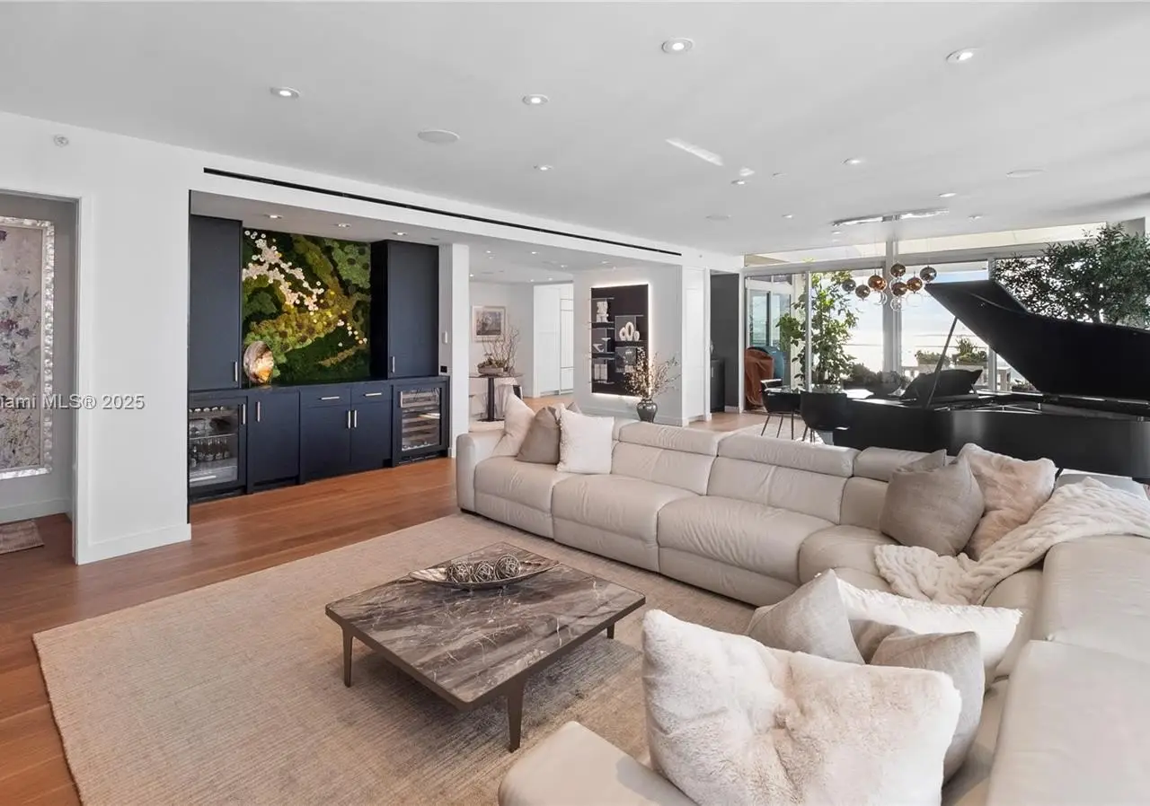 Experience luxury living in this exclusive penthouse with breathtaking direct ocean and Intracoastal views. Perfectly located near Aventura Mall, beaches, and fine dining, this 5-bedroom, 3.5-bath residence features two master suites, including a primary with a custom women's closet and a stunning Versace-tiled bath. The gourmet kitchen boasts Wolf and Sub-Zero appliances, Italian finishes, and Cristalito countertops with underlighting. Elegant interiors include custom cabinetry, a Versace-trimmed fireplace, Sonos audio, Lutron lighting, and remote blinds. A wraparound balcony invites outdoor dining and entertaining. Resort-style amenities include pool, valet, fitness center, restaurant, theatre, social room & marina. Fully funded reserves.