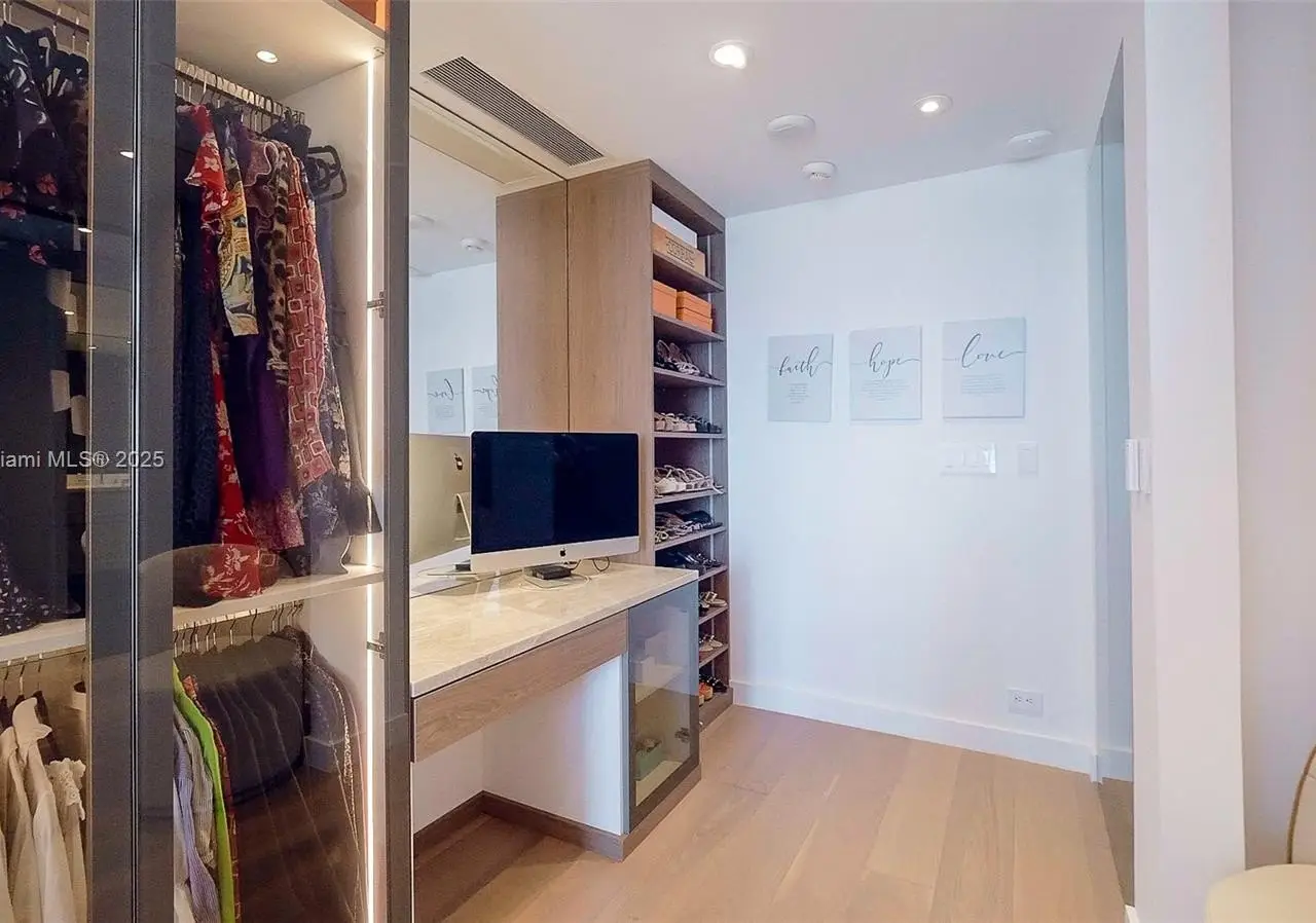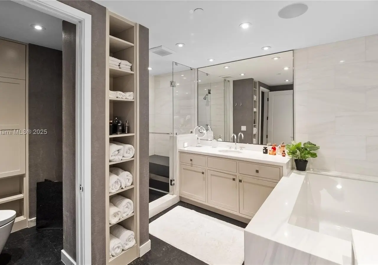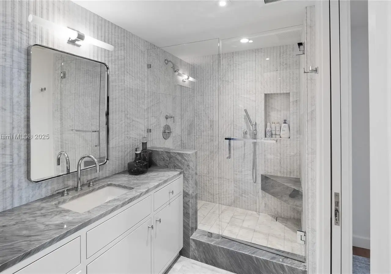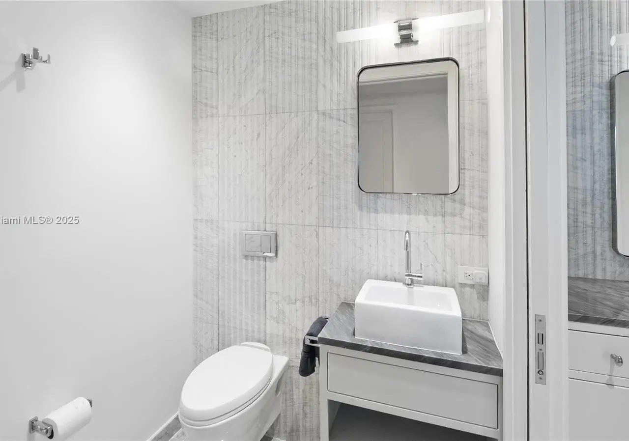 Experience luxury living in this exclusive penthouse with breathtaking direct ocean and Intracoastal views. Perfectly located near Aventura Mall, beaches, and fine dining, this 5-bedroom, 3.5-bath residence features two master suites, including a primary with a custom women's closet and a stunning Versace-tiled bath. The gourmet kitchen boasts Wolf and Sub-Zero appliances, Italian finishes, and Cristalito countertops with underlighting. Elegant interiors include custom cabinetry, a Versace-trimmed fireplace, Sonos audio, Lutron lighting, and remote blinds. A wraparound balcony invites outdoor dining and entertaining. Resort-style amenities include pool, valet, fitness center, restaurant, theatre, social room & marina. Fully funded reserves.