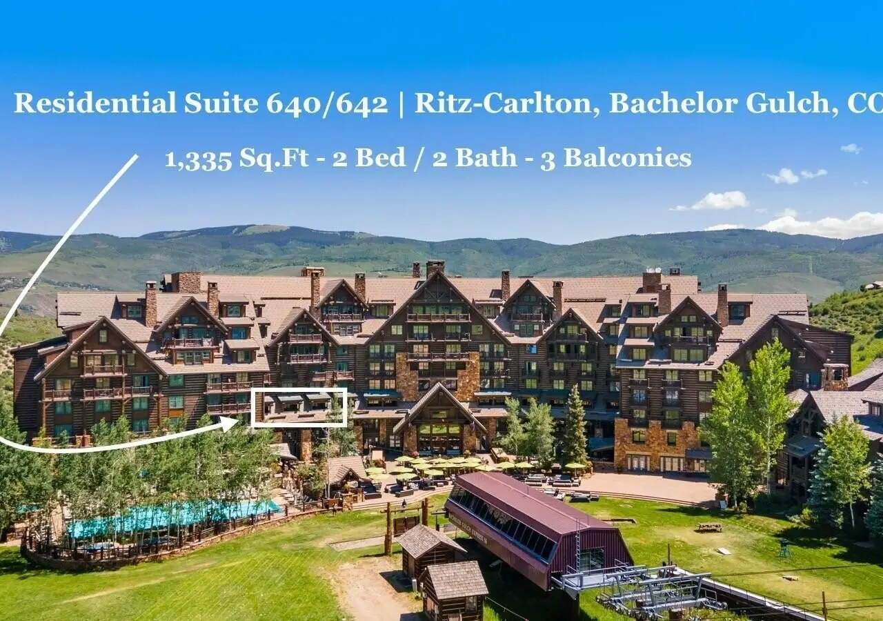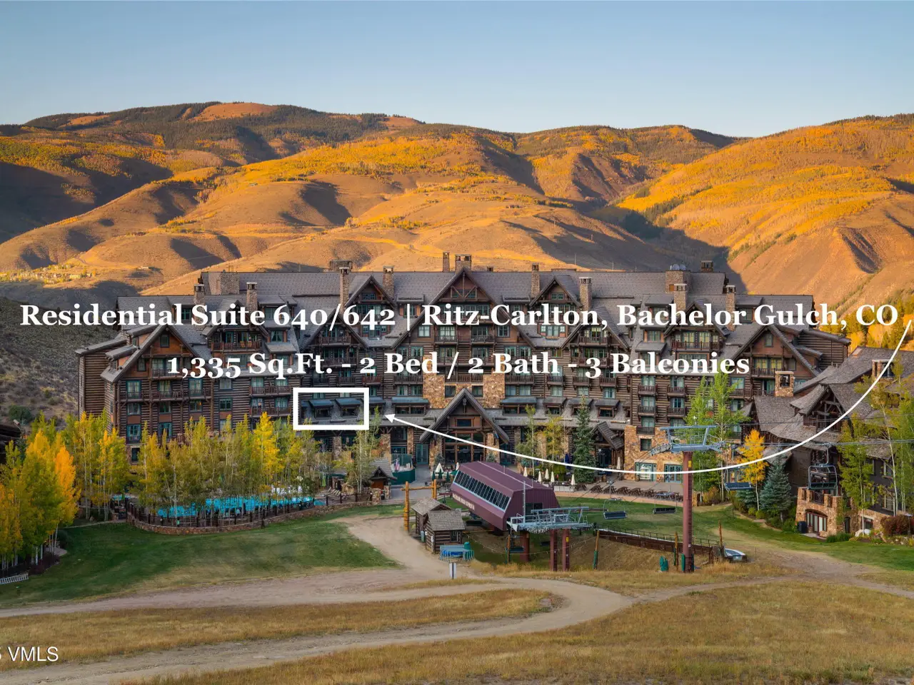 Enjoy worldwide advantages of ownership at the ski-in/ski-out Ritz-Carlton in Bachelor Gulch, Colorado. Residential Suite 640/642 [2 bedrooms / 2 bathrooms] checks all the boxes. Located on the 6th floor, the Suite is well-appointed with a full kitchen, ski-slope [southern] views and 3 slopeside decks,. Hotel amenities include three restaurants, in-room dining, valet parking, ski-valet, a luxury full-service spa and fitness center, an outdoor heated pool and hot tubs, a fire pit, hotel concierge services, and a 24-hour front desk. Residential 640/642 is a whole-ownership residence in the Ritz-Carlton hotel. All Residential Suites and hotel rooms were renovated in 2022. The actual rental revenue spreadsheet for Suite 640/642 is updated monthly and is available upon request. Actual photos and Matterport tour are pending.