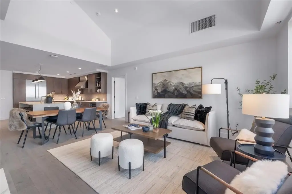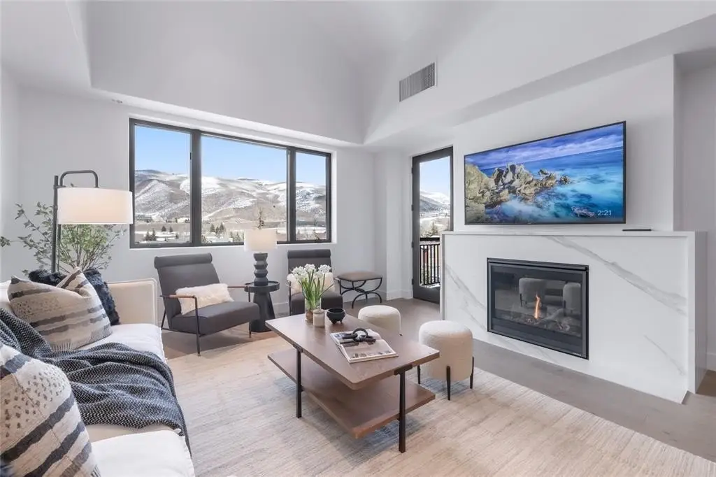 This desirable 2-bedroom, 2-bath residence boasts a coveted top-floor location with cathedral ceilings in the living room, abundant natural light from the north, and mountain views from its large balcony. The contemporary layout is designed for comfort, livability, and style, featuring a spacious open floor plan with 9-foot ceilings, Arrigoni hardwood floors, stainless steel kitchen appliances, a walk-in closet, owner's storage, and a cutting-edge finish package. Includes one unassigned parking space, plus access to numerous guest spaces. Frontgate | Avon is a new, astutely appointed, amenity-rich development featuring a masterfully designed four-story condominium building with 75 residences and 9 townhomes. Located adjacent to the entrance of Beaver Creek Resort, this limited collection of modern mountain properties is thoughtfully integrated into the natural environment. Envisioned to bring residents closer to nature, Frontgate | Avon offers The Springs Outdoor Oasis & Pioneer Plunge—a year-round outdoor bromine pool, water slide, and 15- and 35-person hot tubs—along with a Mountainside Courtyard with fire pits, outdoor grills, and gathering spaces. Additional amenities include community bikes and e-bikes, two sports simulators, a top-tier fitness center with an outdoor mountainside workout area, and a game room. On-site conveniences include dedicated shuttles to Beaver Creek and Vail, ski and boot lockers, underground heated parking, EV charging, a car wash, dog wash, property management services, and a grab-and-go market.