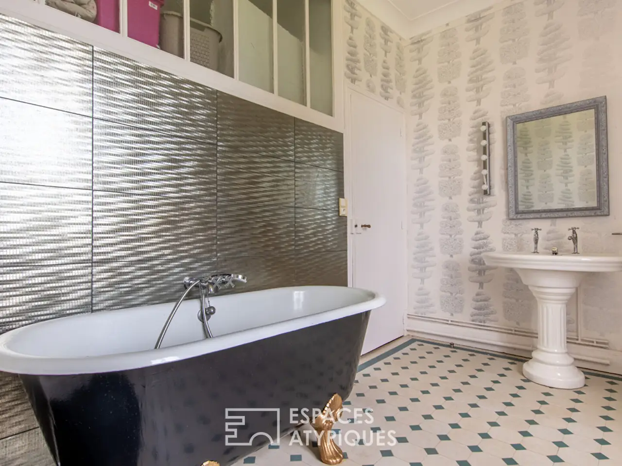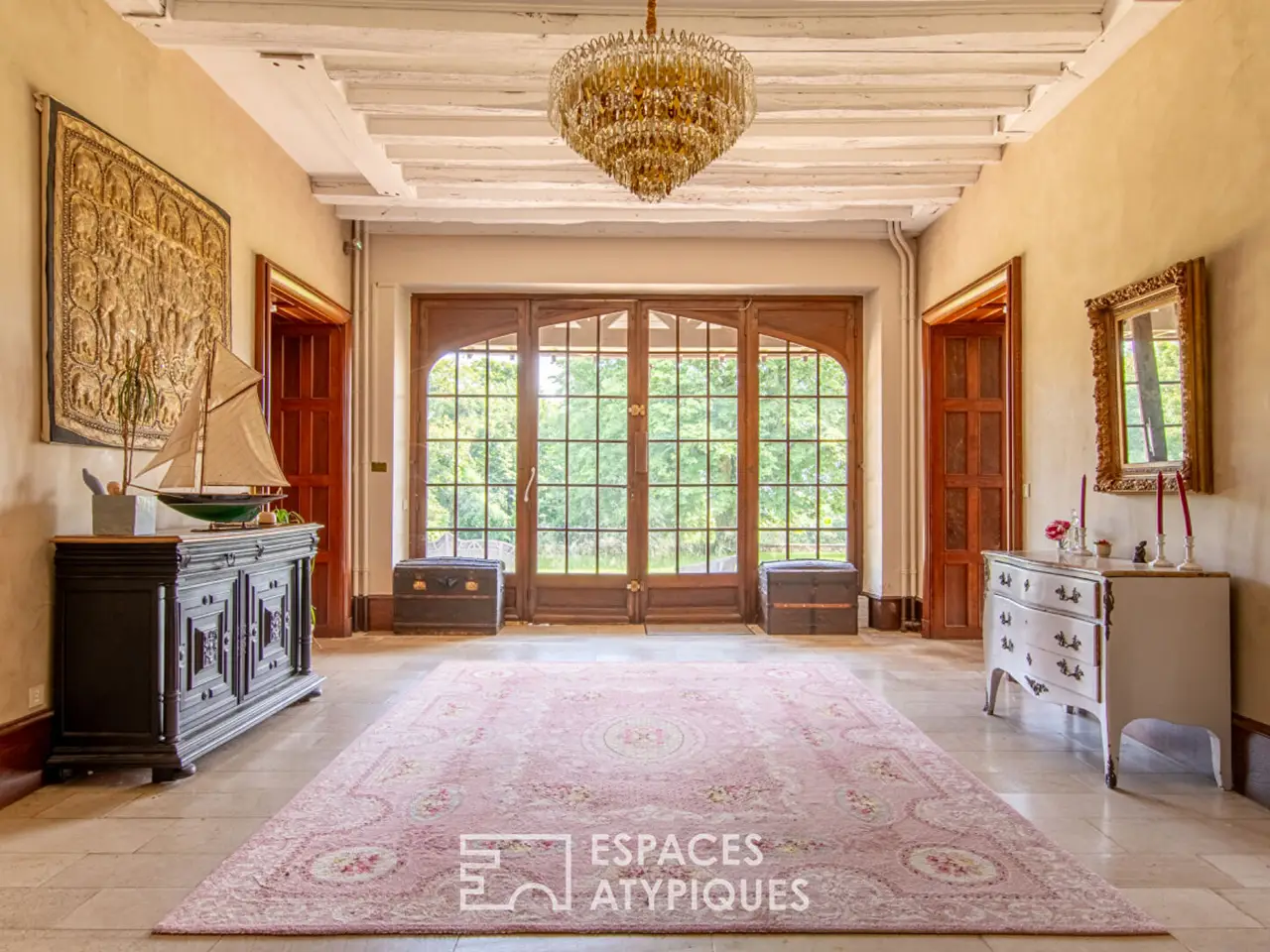 In the heart of the pleasant town of Avrille, close to the city center of Angers, this beautiful late 19th century Anglo-Norman style property offers a space nestled in its green setting with ancient trees. It is decorated with 6 renovated rental apartments, ensuring a comfortable income from constant rental income. This rare and exceptional manor, with its unique architectural style, its exceptional view and its privileged location, is composed of a ground floor comprising an entrance hall, a large living room, a separate fitted and equipped kitchen, an office and a laundry room. A floor, which is in half-landing reveals the sleeping area consisting of a large hall, five bedrooms, each with its own private bathroom or shower room and toilet, as well as numerous storage cupboards. At the back of the park, behind the swimming pool, a magnificent view opens onto the forests and meadows of the Angevin region, offering a setting of freedom. The complex is completed by 6 renovated and rented apartments, for a monthly amount of EUR3,000 excluding charges, all with private parking. Located 15 minutes from Angers train station, in a very quiet town, this beautiful residence with incredible charm is dedicated to a small family paradise. Contact: Cedric - 06 26 13 45 41 cedric.pinto@espaces-atypiques.com ENERGY CLASS: E / CLIMATE CLASS: E Estimated average amount of annual energy expenditure for standard use, established from 2021 energy prices: between EUR6,880 and EUR9,360. REF. ARG4134 Additional information * 16 rooms * 11 bedrooms * Floor : 2 * 2 floors in the building * Outdoor space : 10000 SQM * Property tax : 5 500 € * Provision for charges : 800 €