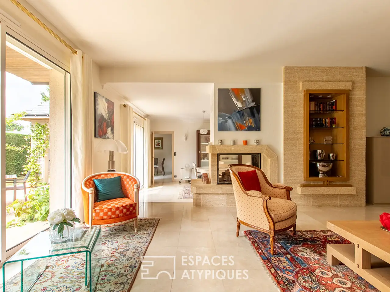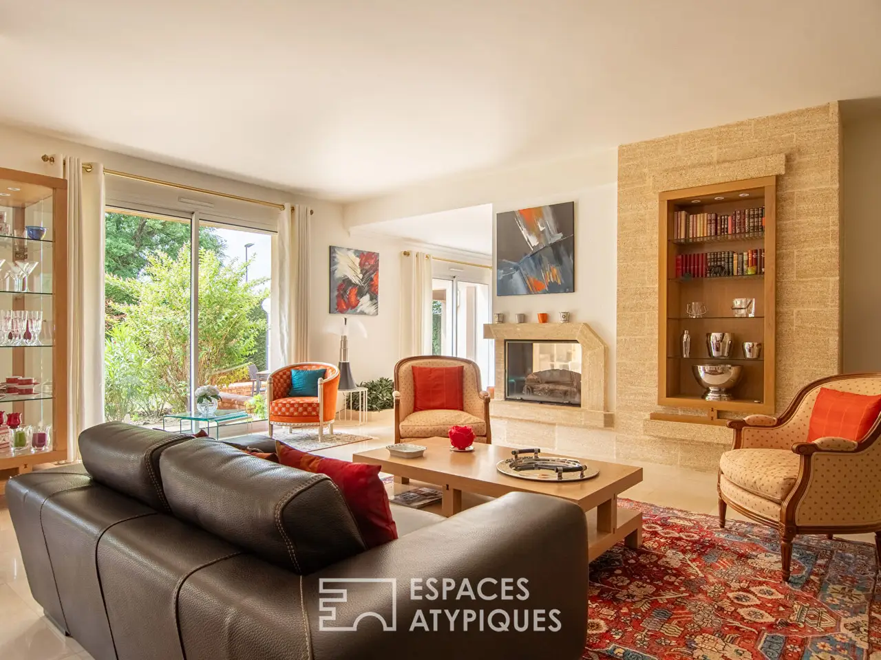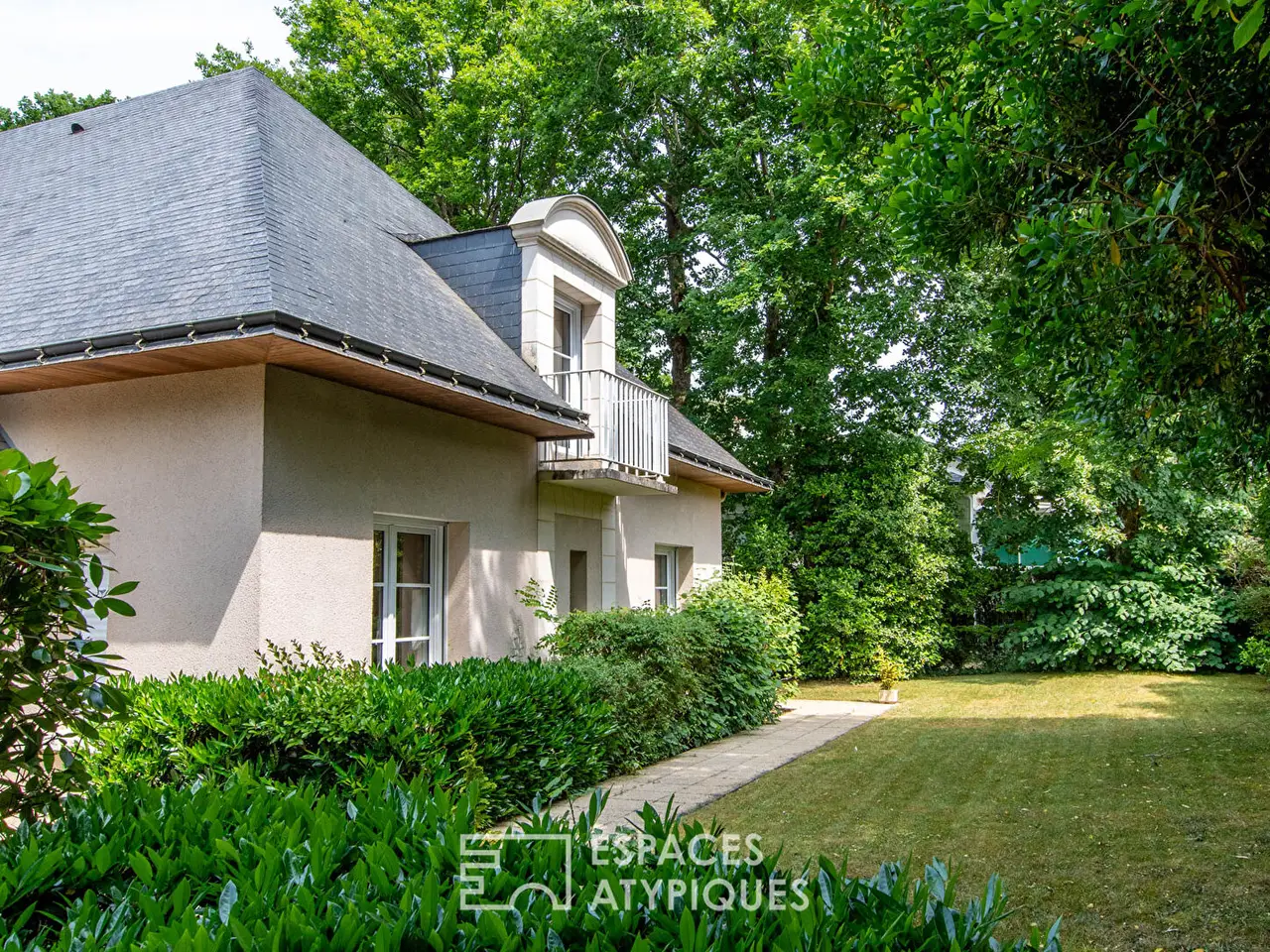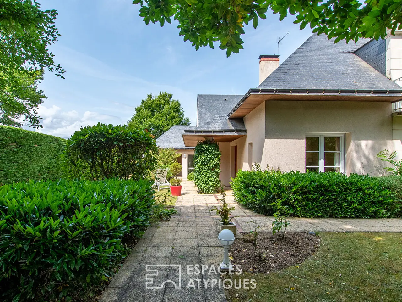 Just a few minutes from downtown Angers, in the preserved setting of Parc de la Haye, this architect-designed home of nearly 270 m2 seems to have found the perfect balance between contemporary lines and surrounding nature. Nestled in a wooded haven overlooking Saint-Nicolas Lake, it blends elegantly into its landscaped environment, designed as a natural extension of the living space. From the moment you step inside, the tone is set: generous volumes, abundant natural light, and fluid circulation. Here, every space tells a story of comfort, design, and conviviality. Thoughtfully designed for family life, the house unfolds mainly on one level, in constant dialogue with the outdoors. The vast living and dining area, bathed in light, opens onto a sleek and welcoming kitchen, extended by a cozy TV nook. Set apart, a pantry and laundry room make daily life easier. A basement wine cellar and a double garage complete this perfectly orchestrated ensemble. The separate master wing offers a quiet and bright suite with an adjoining office, conceived as a private retreat. Upstairs, a mezzanine library leads to four spacious bedrooms, a playroom, a second laundry room, a bathroom, and a shower room. Everyone can find their own space here, in a spirit of harmony and independence. Nothing has been left to chance: noble materials, meticulous finishes, and precise layouts. The whole property exudes a rare atmosphere, combining modernity with natural serenity. Located less than 500 meters from amenities (bus, bakery, pharmacy:) and only 5 km from the train station, this unique property offers both refined living and accessibility. REF. ARG4538 Additional information * 8 rooms * 5 bedrooms * Floor : 1 * 1 floor in the building * Outdoor space : 942 SQM * Property tax : 3 143 € Energy Performance Certificate Primary energy consumption c : 126 kWh/m2.year High performance housing
