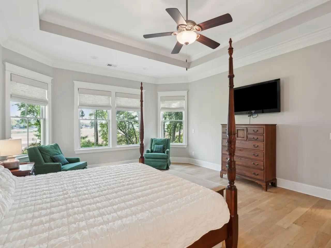 Breathtaking Marsh Views on the Wando River - Private 3-Acre Estate in Gated Pepper Plantation. Enjoy the ultimate Lowcountry lifestyle on 3 private acres overlooking the Wando River in the gated community of Pepper Plantation. Tucked at the end of a quiet cul-de-sac, this 5-bedroom, 5-bath custom-built home delivers elegance, privacy, and sweeping marsh-to-river views. The elevated, three-story home is designed for easy living and effortless entertaining. As you approach, a beautifully landscaped yard and wooded entry offer unmatched seclusion. The solid mahogany front door opens into a sun-drenched interior featuring white oak hardwood floors, high ceilings, and a seamless flow of space. A formal dining room and study flank the foyer, while the expansive great room and chef's kitchen span the rear of the home, capturing spectacular views. The kitchen is outfitted with top-tier appliances including a 48" Sub-Zero refrigerator, Wolf double ovens and gas cooktop, farmhouse sink, and granite countertops. A generous breakfast nook is wrapped in windows and overlooks the water, the perfect spot for family meals or morning coffee. The main-level primary suite is a private sanctuary with panoramic views of the Wando River, dual walk-in closets, and a spa-inspired bathroom with double vanities, walk-in shower with rain head, and soaking tub. An additional guest suite and full bath are also located on the ground floor. Upstairs are three additional bedrooms, one with an en suite bath, and two sharing a Jack & Jill, plus a large bonus room ideal for a media room, playroom, office or sixth bedroom. The ground level features a climate-controlled bonus space with a full bath, ideal for a home gym, artist's studio, or guest suite. The 3-car garage offers epoxy-coated floors, a workshop area, and ample storage. Step outside to your own private oasis. The screened-in porch with wood-burning fireplace opens to a spacious backyard with a travertine-surround saltwater pool, all framed by moss-draped oaks and uninterrupted marsh views. Enjoy outdoor dining, evening sunsets, or weekend gatherings in this truly exceptional setting. Additional features include: - 3-stop elevator - Whole-home generator - Standing seam metal roof - Impact-rated windows and doors - Fenced backyard with direct bathroom access from pool area Pepper Plantation is an exclusive enclave of custom homes offering privacy, natural beauty, and unique amenities. Residents enjoy an equestrian-style setting with a training track, riding trails, and a picturesque pavilion overlooking a freshwater lake, perfect for weddings, events, or community gatherings. Located just 12.5 miles from Isle of Palms beach and 15 miles from downtown Charleston, this community offers the perfect blend of quiet Lowcountry living with Charleston convenience.