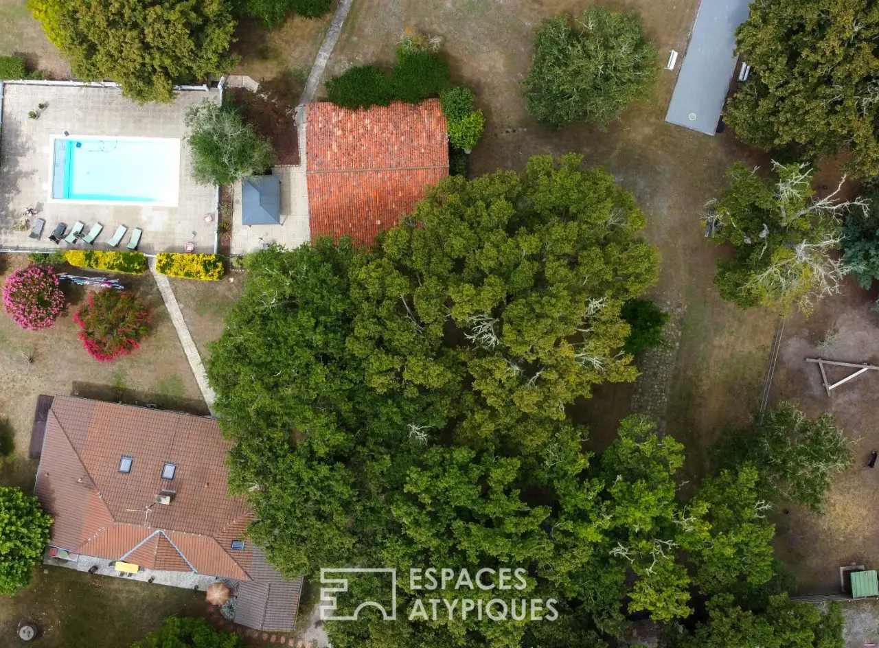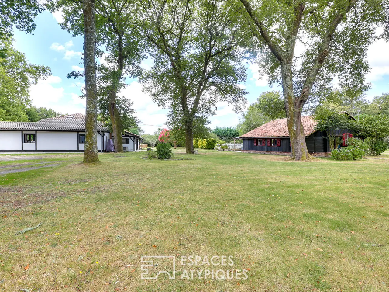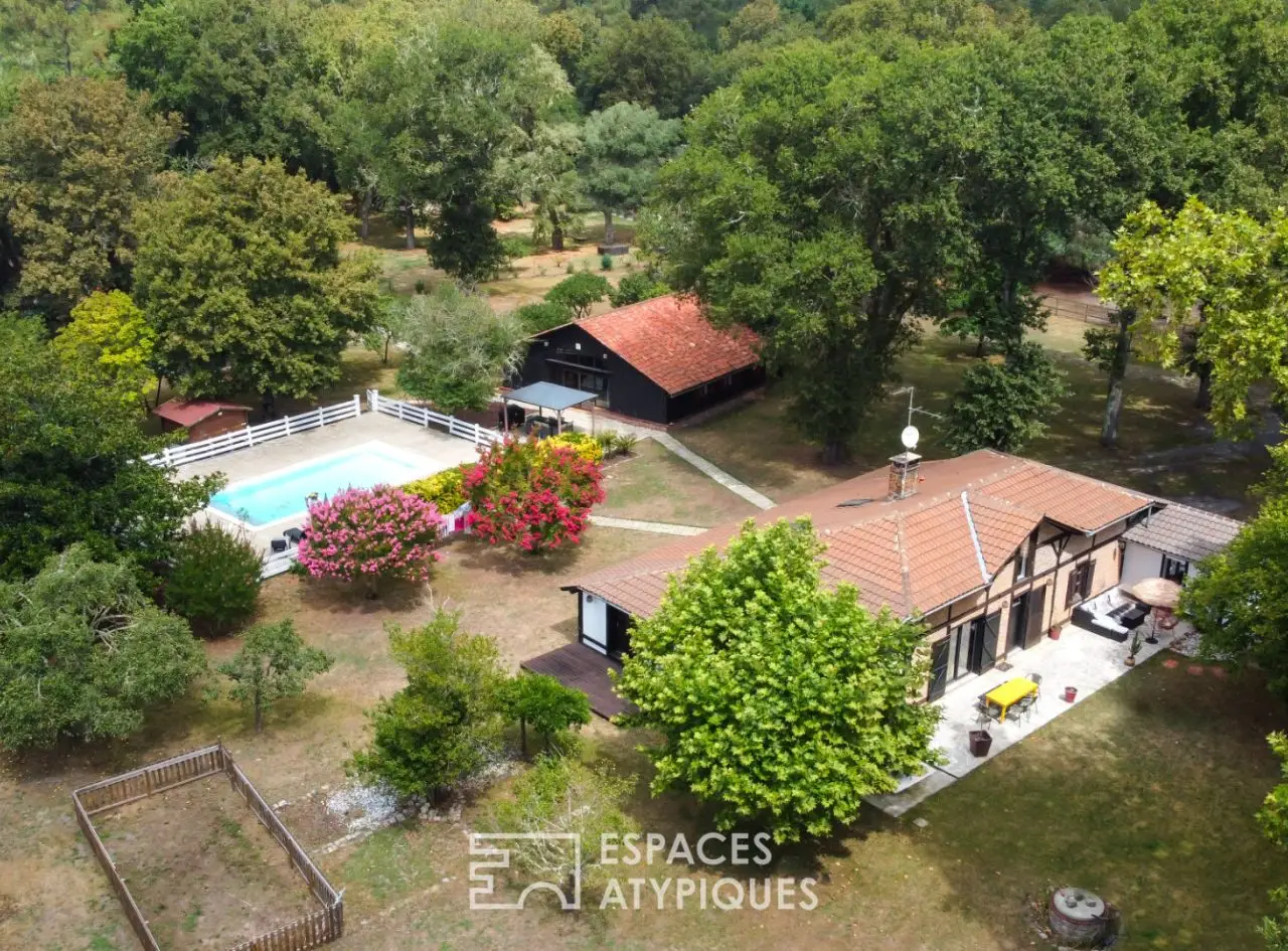 Less than ten minutes from the ocean beaches, this unique airial dating from 1850 displays all the charm of a carefully renovated character property. Set on a vast wooded plot of 6,778 m2, this estate consists of two independent single-story houses: a resolutely Landes-style main house with 169 m2 of living space and a renovated old barn of 91 m2, totaling eight bedrooms. A swimming pool, century-old oak trees and a petanque court complete this rare ensemble. Both homes offer generous volumes and a warm atmosphere, enhanced by a quality renovation combining authenticity and contemporary comfort. Exposed beams, brick walls, solid wood joinery, every detail tells the story of the place while ensuring functionality and aesthetics. The main house includes a bright and welcoming living space, four bedrooms, and elegantly appointed bathrooms. The fully independent cottage offers the same comforts, allowing for perfect flexibility depending on the project. The meticulously maintained landscaped grounds are a true haven of peace. The swimming pool, the heart of the property, offers a refreshing escape amidst the vegetation. The petanque court, nestled in the shade of the trees, extends the art of outdoor living. Located in the immediate vicinity of the village of Azur, the property is close to shops, schools and all amenities, in a privileged natural environment. With its unique character, its multiple possibilities of use and its remarkable energy performances (DPE A for the gite and DPE B for the main house), this Landes property seduces with its authenticity and its potential. REF. 12287EALDAdditional information* 14 rooms* 8 bedrooms* 1 bathroom* 3 shower rooms* Outdoor space : 6778 SQM* Property tax : 1 515 €Energy Performance Certificate Primary energy consumptionb : 67 kWh/m2.yearHigh performance housing*A*67kWh/m2.year2*kg CO2/m2.yearB*C*D*E*F*G Extremely poor housing performance* Of which greenhouse gas emissionsa : 2 kg CO2/m2.yearLow CO2 emissions*2kg CO2/m2.yearA*B*C*D*E*F*G Very high CO2 emissions Estimated average annual energy costs for standard use, indexed to specific years 2021, 2022, 2023 : between 880 € and 1270 € Subscription Included Agency fees The fees include VAT and are payable by the vendor Mediator Mediation Franchise-Consommateurswww.mediation-franchise.com29 Boulevard de Courcelles 75008 ParisInformation on the risks to which this property is exposed is available on the Geohazards website : www.georisques.gouv.fr