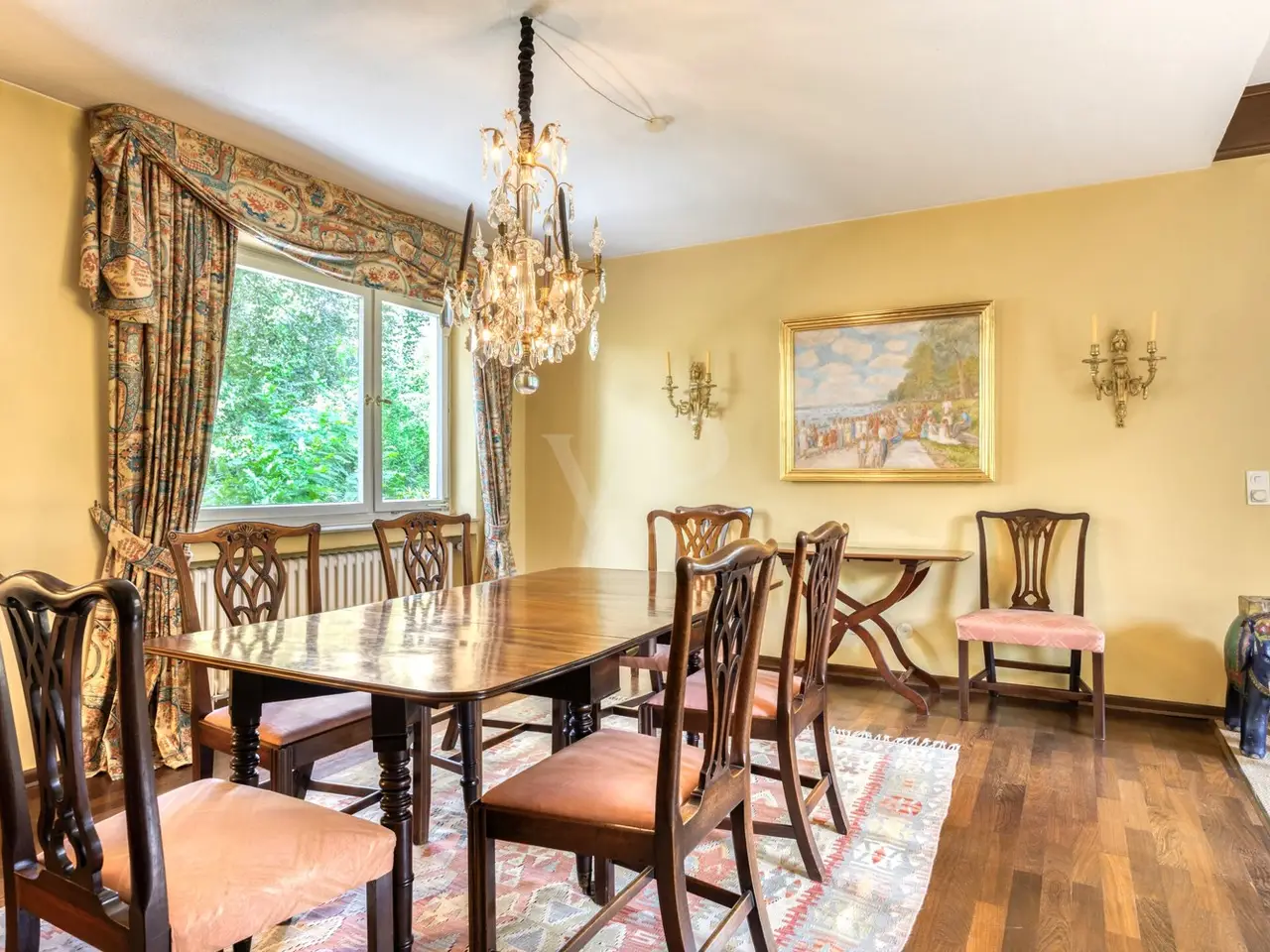 A refuge with character, substance and perspective - in the heart of one of Bad Godesberg's most charming districts. This stylish property impresses with a generous living space of approx. 226 m² and is located on a well-kept plot of approx. 1050 m² in one of the most sought-after locations in Bad Godesberg - the renowned Rüngsdorf Rhine quarter. Built in 1970/72 as a solid construction, its sophisticated architecture provides the ideal basis for living at an exclusive residential level. The property has a total of nine generously proportioned rooms - including 6 bright bedrooms, two modern bathrooms and an open-plan living area with a cozy corner fireplace. Generous windows bring light and airiness into the rooms and emphasize the friendly atmosphere. The large fitted kitchen in a charming country house style blends seamlessly into the room concept and is both visually and functionally impressive. Numerous custom-made built-in units offer well thought-out storage solutions without dominating the living space. A special bonus is the separate granny apartment with a further 2 rooms and its own entrance. It is ideal as a retreat for guests or for individual use. The well-kept outdoor area offers a green oasis of tranquillity: a mature tree population and a garden fountain characterize the natural and peaceful ambience in the immediate vicinity of the Rhine. Several sunny terraces and balconies create additional outdoor retreats. A spacious double garage and an outdoor parking space round off the practical benefits of the house. The basement offers further potential uses, for example as a hobby room, fitness area or private wellness area. An integrated alarm system ensures maximum security. All in all, this property presents itself as a rare opportunity. Don't miss out on this opportunity and arrange a viewing today to see the many possibilities of this special home for yourself! An energy certificate is currently being prepared and will be presented at the viewing.