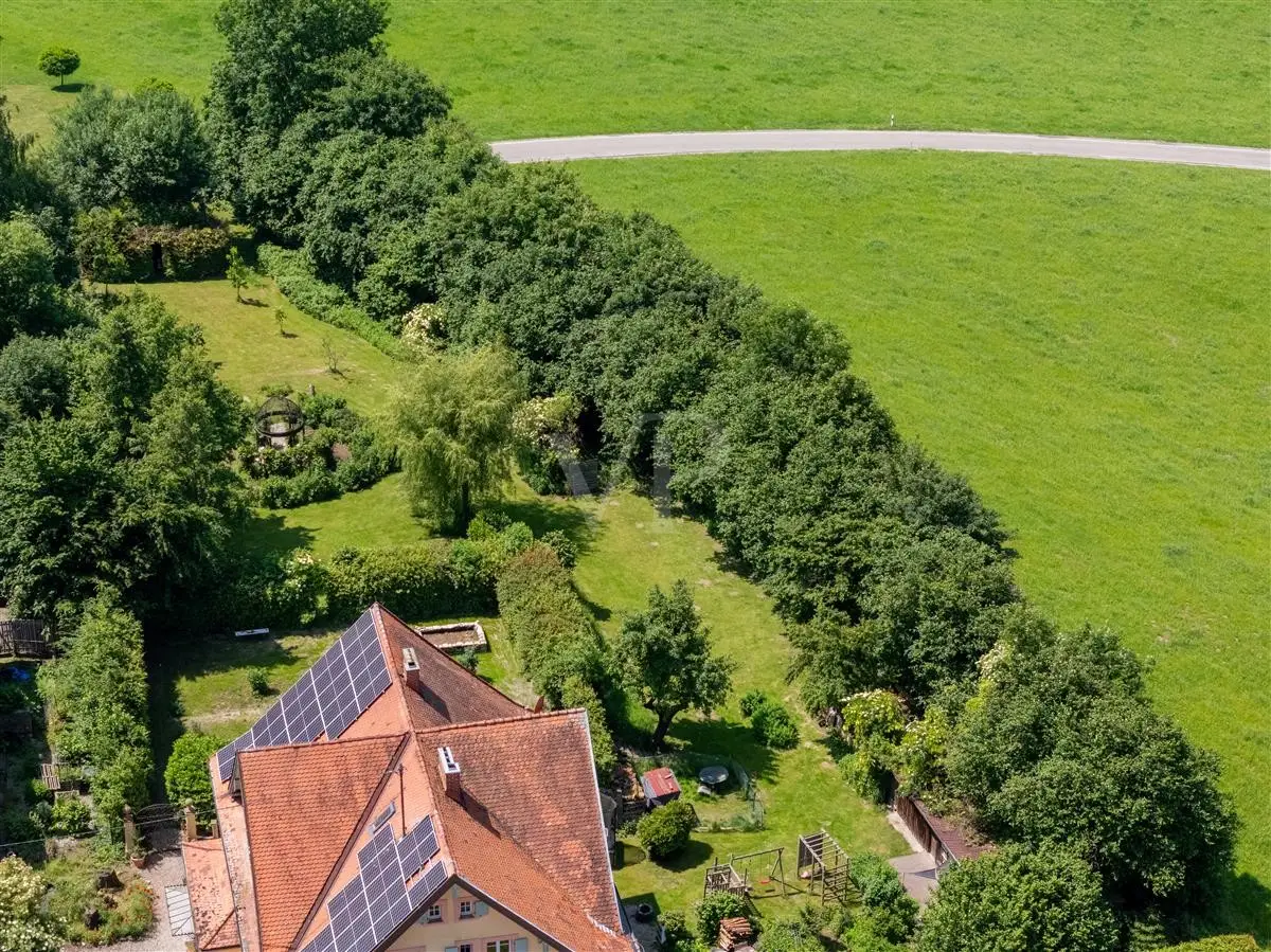 A unique property from 1924, which has been extensively modernized until 2023, awaits you. With a total living space of approx. 431 m², the house offers a successful fusion of historical charm and contemporary comfort. The solid brickwork and the cleverly thought-out room layout invite you to explore. The property has been extensively renovated and offers a wide range of features: Extensive refurbishment measures were carried out back in 2004 - including the partial draining of the basement (except for the side of the driveway next to the house and the area by the entrance to the laundry room and basement apartment), the fundamental renewal of the house electrics and the modernization of the bathrooms. The wooden windows, which were renewed and partially enlarged at the same time, have double glazing and are characterized by masterful craftsmanship. The full thermal insulation installed in 2010/2011 perfectly complements the solar water heating system installed in 2010 and significantly increases energy efficiency. In 2020, the property received a new distribution box in the basement. As part of this, the electrics were also improved and renewed in parts. A modern fitted kitchen was installed on the second floor in 2021. This is equipped with high-quality Siemens and Bosch appliances - including an extractor fan, a ceramic hob, an oven, a dishwasher and a fridge-freezer. In addition, a photovoltaic system with a capacity of 13.5 kWp was installed in 2023, which, in combination with the newly installed wall box, enables a sustainable energy supply. The central heating supply is provided by an oil heating system and is supplemented by a total of six wood-burning stoves in the house, including several Swedish stoves. One solid fuel burner is present and in working order, but no longer has current approval. The wooden floorboards laid throughout give the rooms a warm, authentic atmosphere. A professional kitchen on the first floor is waiting to support your culinary ambitions. Equipped with two gastro ovens, electric and gas hobs as well as other Bosch appliances, it offers ideal conditions for extensive cooking pleasure. The second floor can be used as an independent living unit and offers the opportunity to enjoy an unobstructed view of the Ried as well as Bad Wurzach, Dietmanns and Ellwangen from the spacious terrace - an exceptional highlight of this property. On the second floor, there are four bedrooms, a bathroom and two unfinished rooms. One of the unfinished rooms already has partially prepared water connections and can be converted into a further bathroom. The top floor offers additional development potential - it currently houses a small hobby room. The spacious outdoor facilities are another highlight of this property. A lovingly designed garden paradise extends over approx. 3,744 m² with several terraces, a balcony, a pavilion, a garden shed and a decorative fountain. The stylish garden design invites you to linger and enjoy. Parking is available and rounds off the offer. Overall, this is a stately property that impresses with its successful combination of historical flair and modern living comfort. Ideal for people who are looking for and appreciate a stylish retreat with a variety of uses. A viewing offers the best opportunity to discover the full potential of this property.
