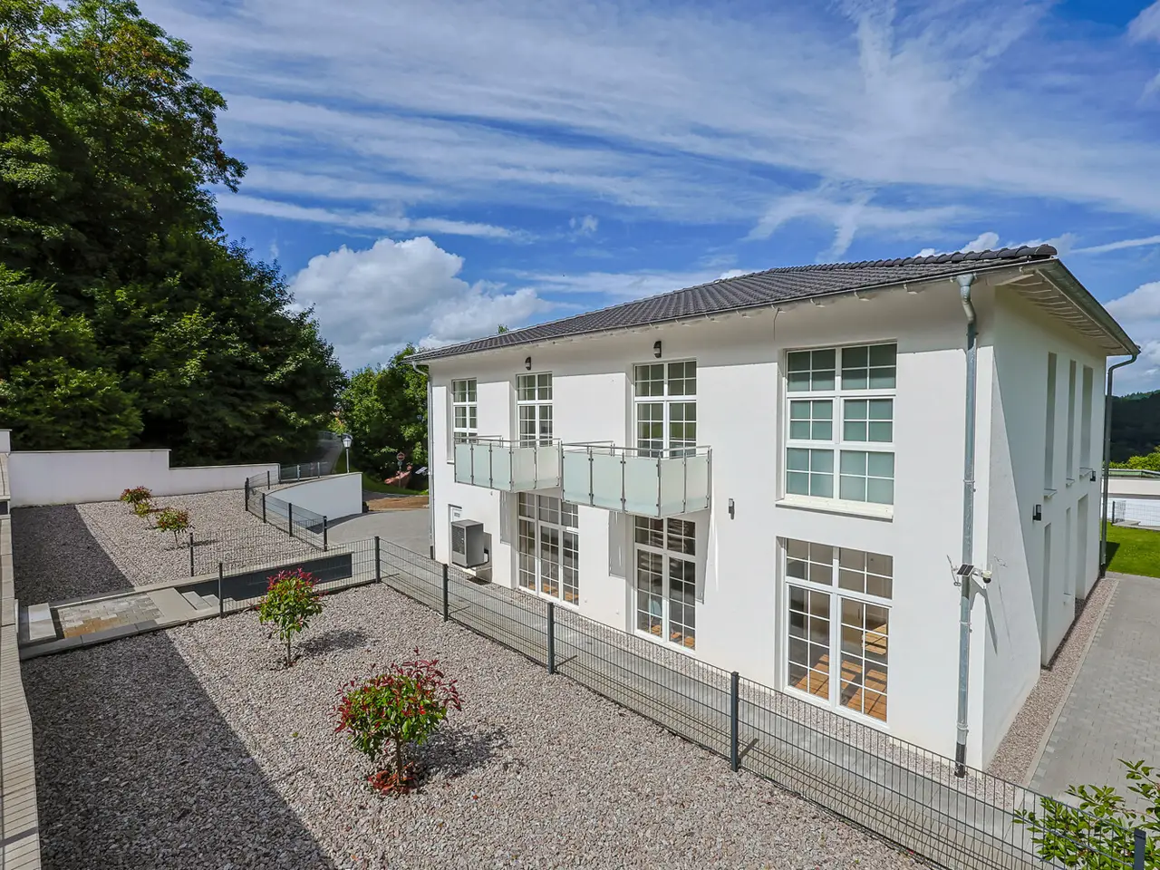 This impressive villa in the picturesque spa town of Badenweiler offers you an incomparable living experience on a living space of 340 m² and a spacious plot of 1592 m². A harmonious interplay of space and light unfolds over two floors. The eight rooms of this modern property invite you to realize your personal wishes and enjoy life to the full. The open-plan living area creates an inviting atmosphere, while two balconies allow you to enjoy the fresh air and the breathtaking natural surroundings of the villa. Another highlight of this villa is the cozy fireplace, which not only provides warmth, but also creates a cozy atmosphere on cold evenings. Security is a top priority here thanks to the alarm system, which gives you a reassuring feeling of security. This luxurious residential property is ideal for families or discerning couples looking for something special. The well thought-out north-facing orientation of this spacious plot guarantees a perfect balance of sun and shade. Especially in summer, you will always be woken by the sun in the bedrooms in the morning and can admire the sunset from the terrace or living room in the evening. Half of the house's spacious terrace provides shade, while the other half offers a sunny area for playing. In addition, the spacious rear plot provides a quiet retreat to enjoy the sun undisturbed.