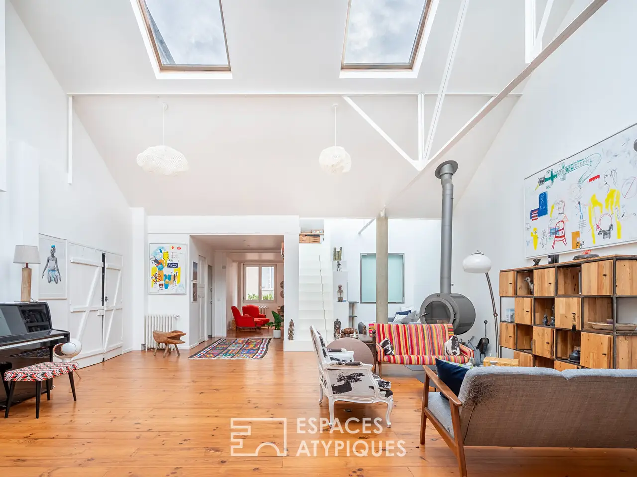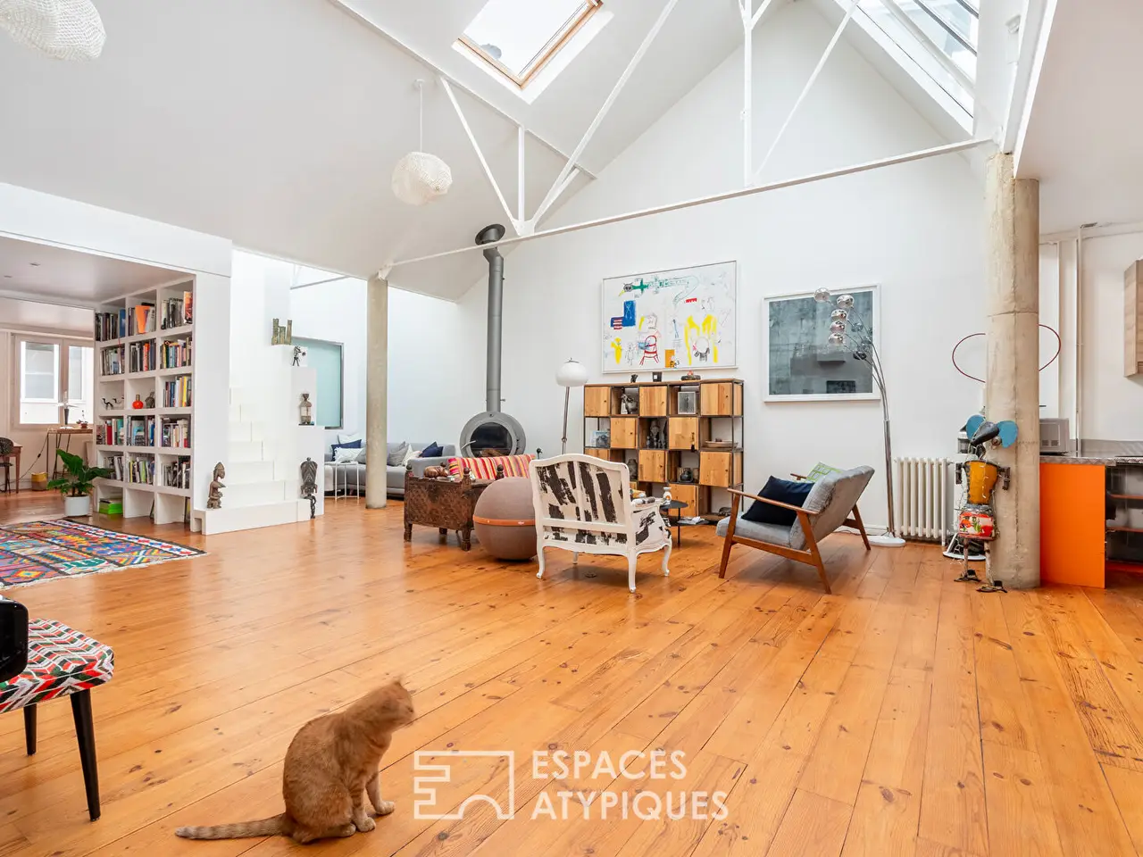 Located on the edge of Montreuil, in the Coutures district, this 253.40 m2 duplex loft (201.80 m2 Carrez law), designed to combine personal and professional life, was the result of the transformation of the former offices of the iconic small appliance brand. Nestled on the first and top floors, it boasts generous volumes and omnipresent light that accompanies every moment.From the entrance, the living room of over 80 m2 captures the eye: a spectacular space beneath a dizzying height, topped with metal beams testifying to the industrial past of the premises. Bathed in light from a skylight and punctuated by skylights, the space benefits from a warm living room, a convivial dining room, and an eat-in kitchen designed as a space for sharing.Wood, concrete, and metal create a subtle and elegant combination, asserting a resolutely contemporary identity. In the center, a wood-burning stove, a true functional sculpture, imposes its presence and enhances the space.Opposite the TV area, a discreetly integrated bookcase accompanies the staircase leading to the mezzanine, designed as a creative cocoon with two workspaces.On the sleeping area, leading off the living room are two bedrooms of 20 m2 and 22 m2 respectively, a bathroom with a bathtub, shower, and toilet, and a dressing room.The entrance hall also leads to a laundry room, a separate toilet, and a third 23 m2 bedroom with its own shower room.Upstairs, a fourth bedroom with a bathtub and an office area completes the space.Tucked away from the hustle and bustle of the city, nestled in a peaceful courtyard, this exceptional loft combines elegance, comfort, and functionality. A truly expressive property, ideal for those seeking a meaningful work-life balance.A parking space and a cellar complete this loft, which is subject to co-ownership status.Metro line 9: Robespierre, 400 meters awayENERGY CLASS: D / CLIMATE CLASS: DEstimated average annual energy costs for standard use, based on 2021 energy prices: between €2,070 and €2,860Contact: Daniel +33 6 64 01 30 43 EI - RSAC: 811 163 369 BobignyREF. 12333Additional information* 7 rooms* 4 bedrooms* 2 bathrooms* 1 bathroom* Floor : 1* 1 floor in the building* Parking : 1 parking space* 91 co-ownership lots* Annual co-ownership fees : 4 263 €* Property tax : 5 801 €* Proceeding : NonEnergy Performance CertificatePrimary energy consumptiond : 160 kWh/m2.yearHigh performance housing*A*B*C*160kWh/m2.year34*kg CO2/m2.yearD*E*F*GExtremely poor housing performance* Of which greenhouse gas emissionsd : 34 kg CO2/m2.yearLow CO2 emissions*A*B*C*34kg CO2/m2.yearD*E*F*GVery high CO2 emissionsEstimated average annual energy costs for standard use, indexed to specific years 2021, 2022, 2023 : between 2070 € and 2860 € Subscription IncludedAgency feesThe fees include VAT and are payable by the vendorMediatorMediation Franchise-Consommateurswww.mediation-franchise.com29 Boulevard de Courcelles 75008 ParisInformation on the risks to which this property is exposed is available on the Geohazards website : www.georisques.gouv.fr