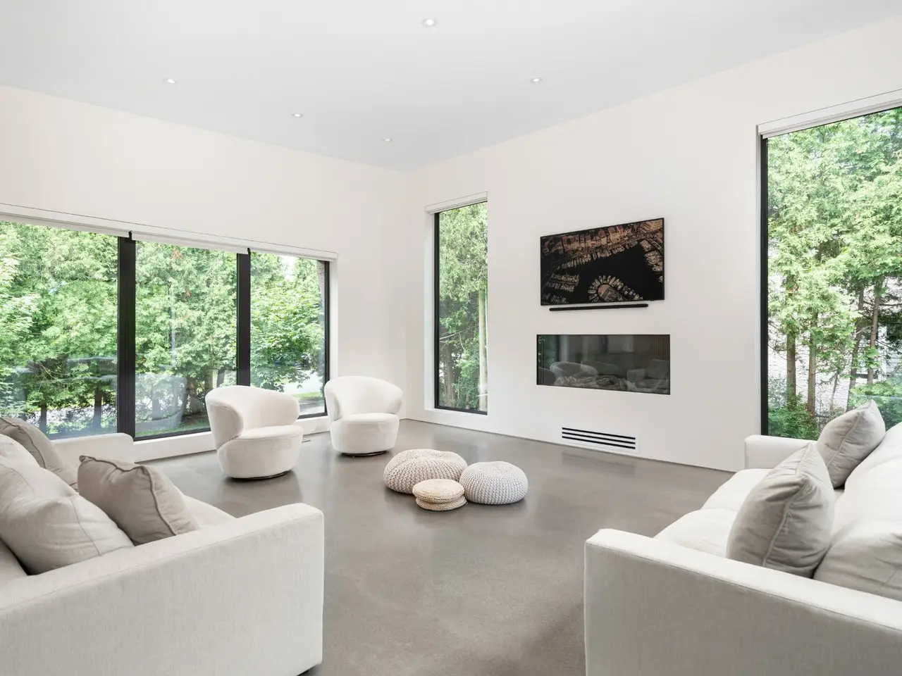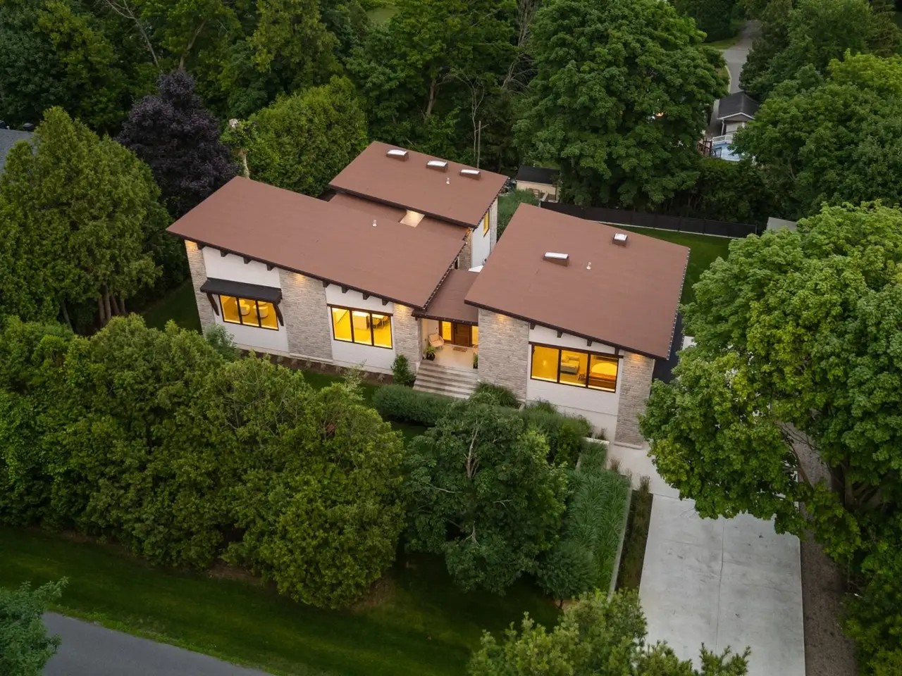 Welcome to 95 Upper Cambridge. This newly constructed 3+1 bedroom, 3+1 bathroom home is located on a sought-after street in Baie d'Urfe. Beautifully landscaped and situated on over 20,000 sq ft of property. This 2021 bungalow was meticulously crafted with cutting-edge contemporary architecture. You will find polished concrete floors with built-in hydronic radiant heating throughout the entire home. Ceiling heights vary from 9 to 12.5 ft on the main floor and 9 feet high in the basement.