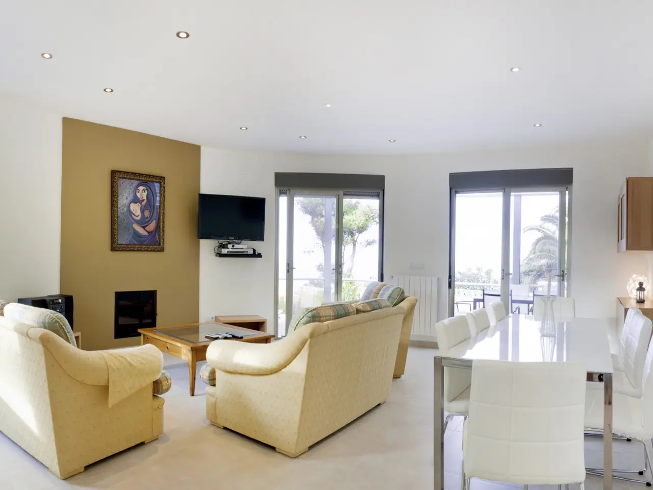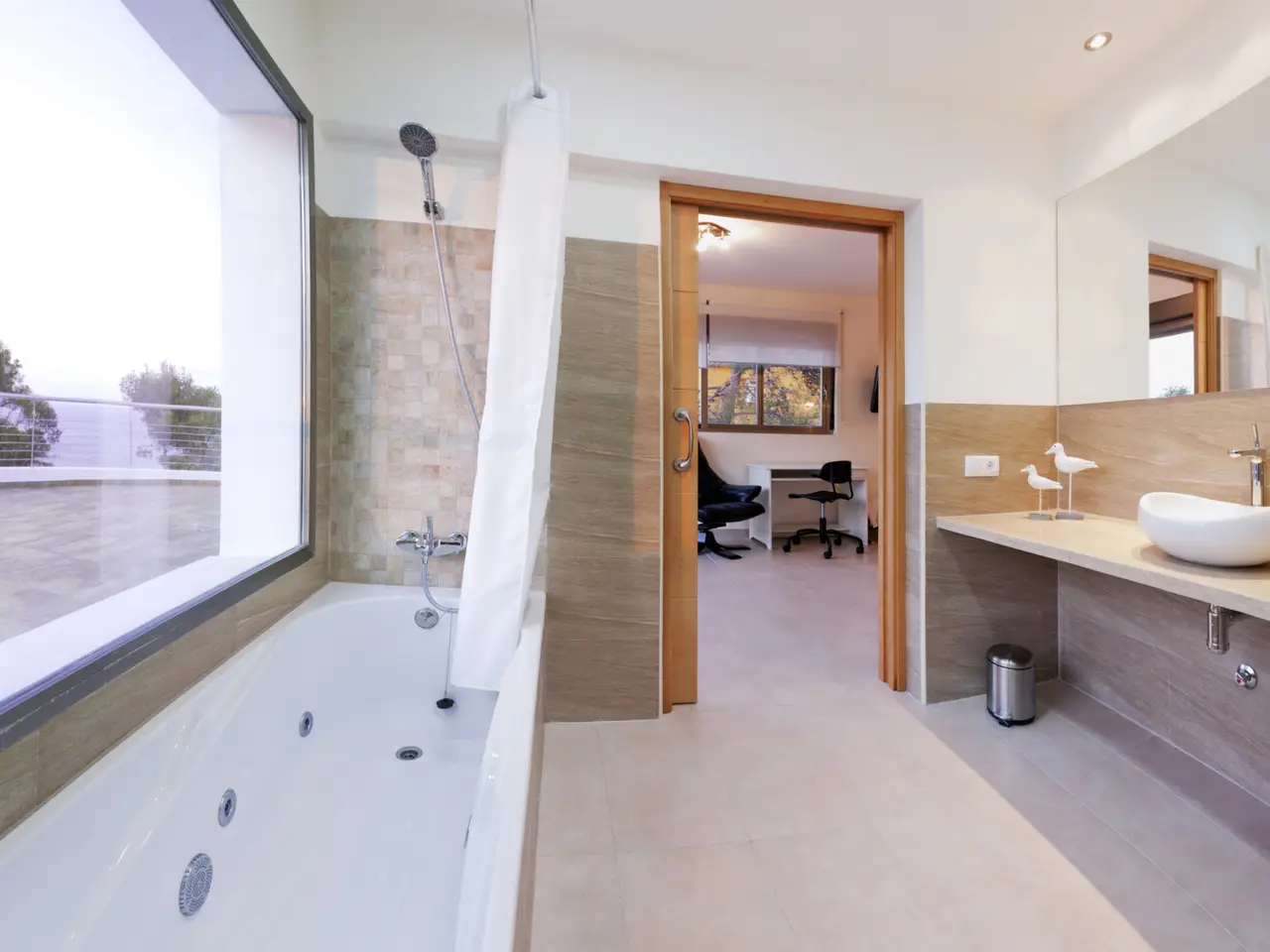 This beautiful villa is located in the exclusive residential area of Balcón al Mar in Jávea, set on a 955m2 plot. The property its distributed over two floors plus a semi-basement, as well as stunning sea views. The main floor consists of a spacious and bright living-dining room with a fireplace and access to a sunny terrace, from which you can enjoy magnificent sea views. On this floor, there is also an office-style kitchen, fully equipped with high-end appliances, as well as two bedrooms, one of them with an en-suite bathroom, and a guest toilet. The upper floor houses two more spacious bedrooms, two full bathrooms, and a lounge from which you can access a terrace with panoramic sea views. In the semi-basement, there is a large bedroom with a full bathroom, a storage room, and a storeroom. From this floor, there is direct access to an exceptional terrace with a heated swimming pool. It is worth mentioning that the villa was completely renovated in 2011, using top-quality materials, and features radiator heating and air conditioning with a heat pump.