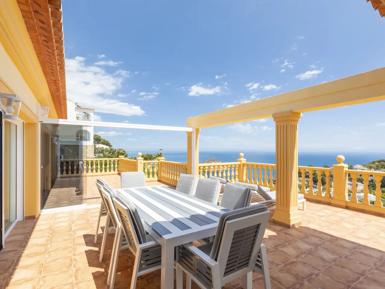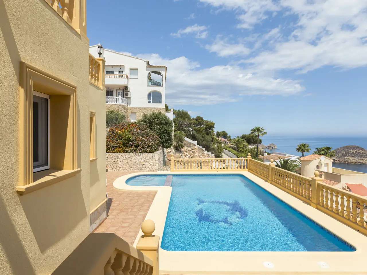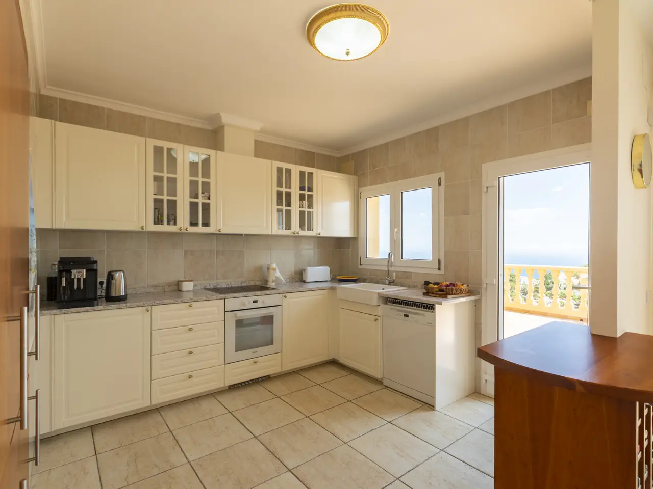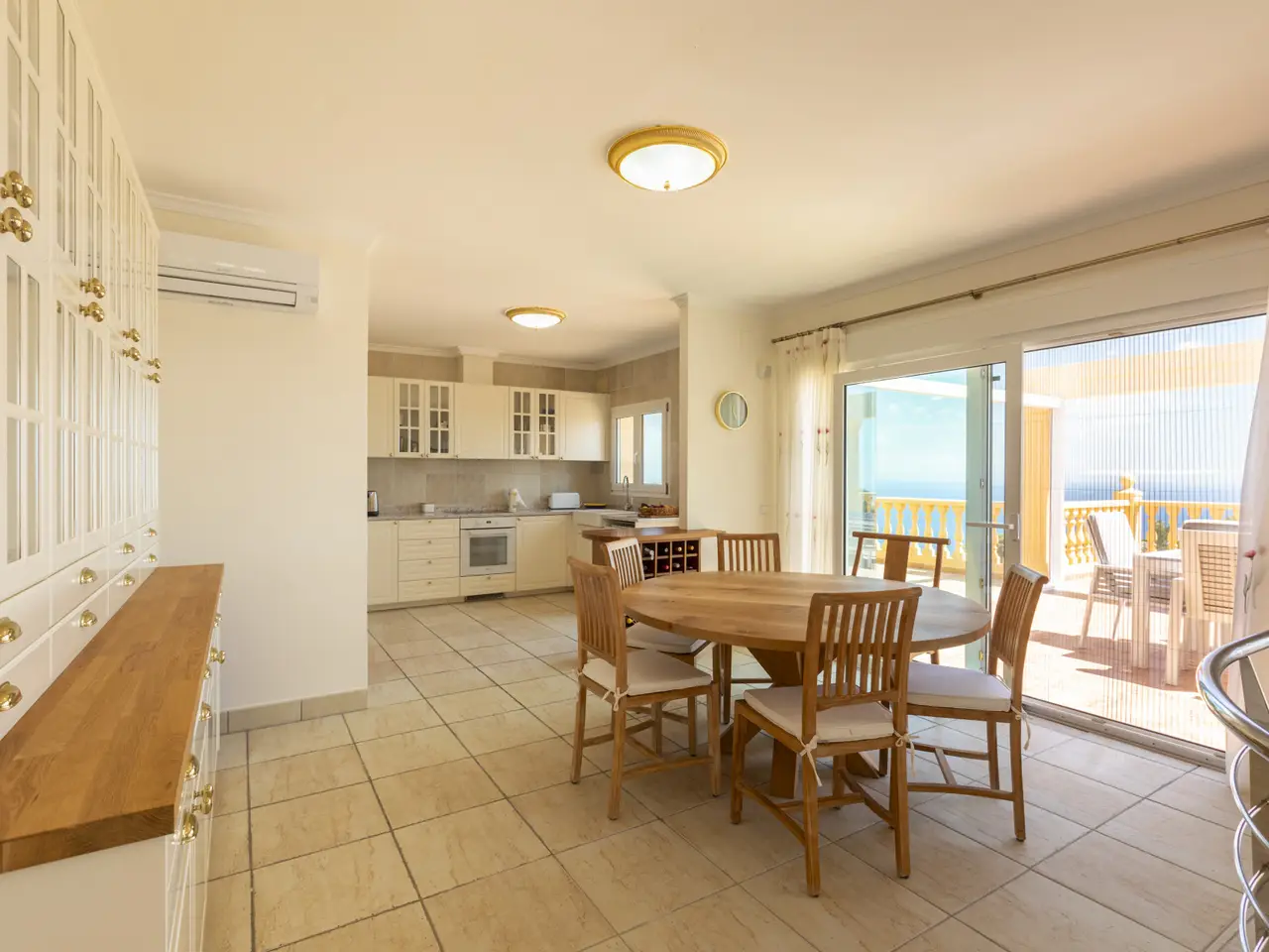 Cozy property with sea views in a quiet area with large terrace. The house is distributed on two levels. The main floor is composed of living room with fireplace, kitchenette equipped with access to a spacious terrace overlooking the island of Portichol, courtesy toilet and the master bedroom with ensuite bathroom. On the ground floor we find two double bedrooms with wardrobes, one full bathroom, laundry area and storage room and separate apartment with living room, kitchenette and a double bedroom with ensuite bathroom. From this level you can access the pool area where you will find a barbecue, a toilet and outdoor shower. It has a garage for two cars, parking area and garden. It has underfloor heating by heat pump, air conditioning in the bedrooms, installation of solar panels, alarm system and surveillance cameras.
