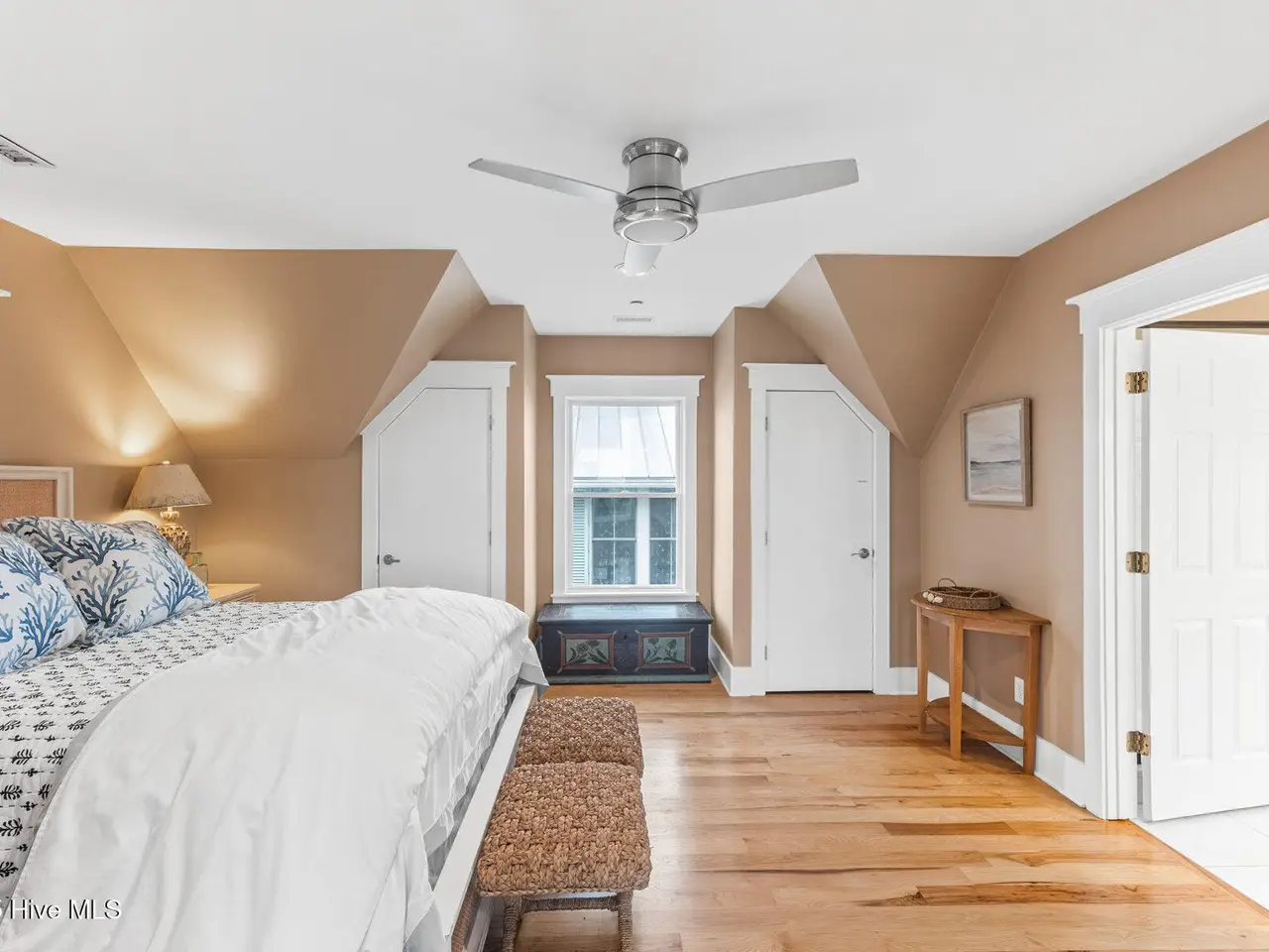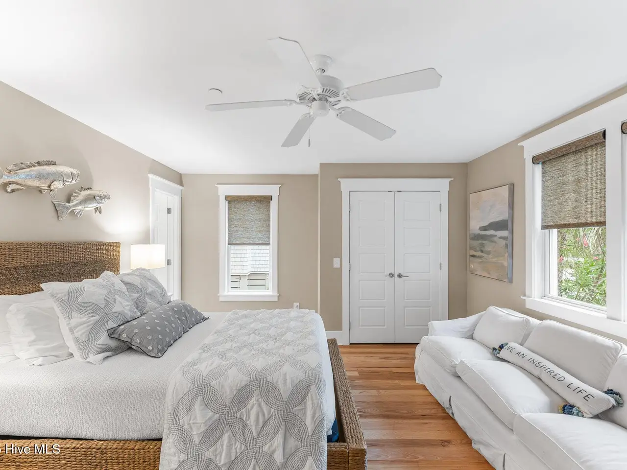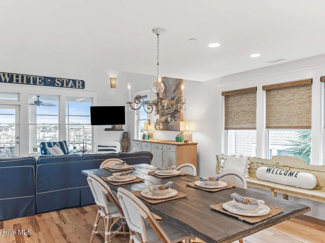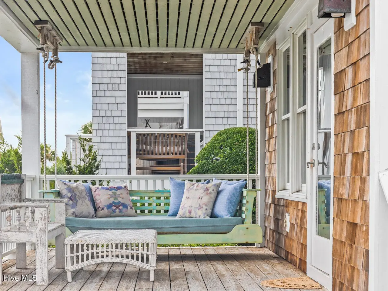 Coastal charm on one of the island's most iconic corners. At the meeting of Keelson Row and Transom Row, this Nantucket-style retreat offers front row views of the marina, sweeping saltwater marshes, and the daily rhythm of Bald Head Island. With 4 bedrooms and 4.5 baths total, the home spans just over 2,300 square feet and is designed for laid-back island living. The reverse floor plan makes the most of its elevated views. Upstairs, the vaulted living room opens to a screened porch where you can watch boats drift by and spot the beacon of Old Baldy. A renovated kitchen blends coastal character with modern function, creating a warm and welcoming flow throughout. On the main level, you will find two guest suites. One of which opens directly to a covered porch with a swinging bed that catches the breeze and invites long, lazy afternoons. Just outside, the wraparound front porch is lined with rocking chairs and offers a perfect perch to watch the island go by. A cozy fire pit patio just off the side adds one more spot to unwind. The top-floor primary suite is a true retreat with sweeping marsh views, a cozy reading nook, and a spacious walk-in shower. The crofter, accessed by a spiral staircase, offers two twin beds and a full bath for guests or flexible living space. Sold furnished and including two 4-passenger golf carts, this home offers a front porch lifestyle made for slow mornings, sunset views, and timeless island memories.