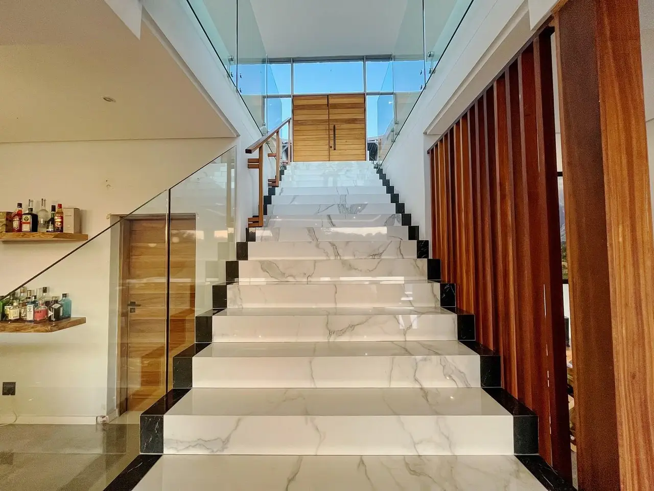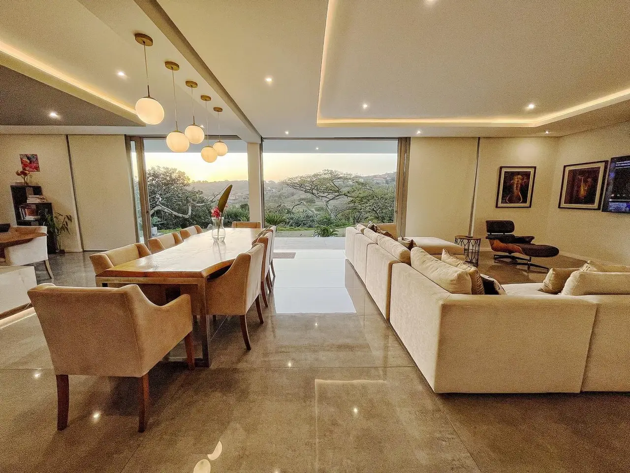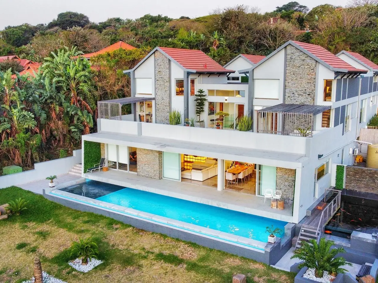 Exquisite Six-Bedroom Villa in Zimbali Estate Architectural Masterpiece Inspired by Japanese Design Discover unparalleled luxury in this Japanese-inspired, ultra-modern villa located within the prestigious Zimbali Estate. This exceptional property boasts unique architectural features that captivate and impress from the moment you arrive. A central walkway between two state-of-the-art koi ponds, home to some of the rarest and most valuable koi in the country, sets the tone for the remarkable experience that awaits. Elegant Interiors and Expansive Living Spaces Upon entering, you are greeted by double-volume foyer and bedroom suites on either side with pristine white porcelain staircase leading to the main living, kitchen, and entertainment areas. The interior is bathed in natural light, highlighting the impressive 25-meter pool and expansive green lawn, creating an inviting space perfect for relaxation and entertainment. The gourmet kitchen, equipped with top-of-the-line Smeg appliances, seamlessly integrates with the living areas, offering a perfect blend of style and functionality. Entertainment and Additional Spaces The villa features an oversized games room, ideal for family gatherings, and numerous additional spaces throughout the property. A self-contained flatlet with a private entrance and parking offers flexibility for guests or extended family, while the large additional space can serve as a sixth suite or a spacious home office, catering to various needs. Innovative Design and Superior Craftsmanship This 600 sqm masterpiece is situated on one of Zimbali's largest residential sites, spanning 2,687 sqm, offering tranquillity and scenic views of the golf course. The villa's design celebrates light and space, featuring large-scale glazing, double-volume interiors, and a tasteful blend of smooth, minimalistic textures, neutral stone cladding, and warm wood elements. Sophisticated Accommodation The villa provides an exceptional array of en-suite accommodations, including a separate self-contained guest suite and a multi-purpose childrenGÇÖs bed/playroom with mezzanine floors for added privacy. Expansive open-plan lounges and dining areas include a luxurious dual-tone gourmet kitchen with integrated Smeg appliances, perfect for the socially interactive family. Wall-to-wall glass sliding doors create a seamless flow to an expansive patio overlooking the full-length pool, landscaped lawns, and an astroturf area, offering a paradise for hobby enthusiasts. Advanced Features and Sustainability This home is a koi lover's dream, featuring state-of-the-art, easy-to-manage pools that can be effortlessly converted to a non-tank environment. No detail has been overlooked, with a large-scale generator, gas-operated showers, automated blinds, a SONOS sound system, and SONOF switches, all operational via the 'we-link' app. The Italian porcelain flooring is of the highest quality, ensuring both beauty and durability. Exclusive Lifestyle and Amenities Zimbali Coastal Resort is renowned for its exclusive lifestyle and state-of-the-art amenities, including: - 18-hole (par 72) Championship Zimbali Golf Course - Six tennis courts - Two squash courts - Three cricket nets - Extensive communal pools and direct access to 3.5 km of pristine beach - Five-star gymnasium and fitness center, free and exclusive to owners and long-term tenants - World-class soccer pitch with astroturf - Nature and walking trails with over 200 species of birds Experience the epitome of luxury living in this unique and sophisticated Zimbali villa, where every detail has been thoughtfully designed to provide an unmatched lifestyle for discerning families. Contact us today for more information and your private viewing
