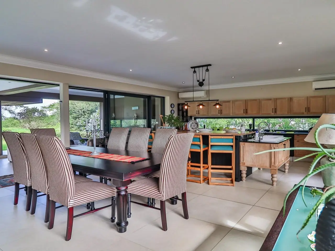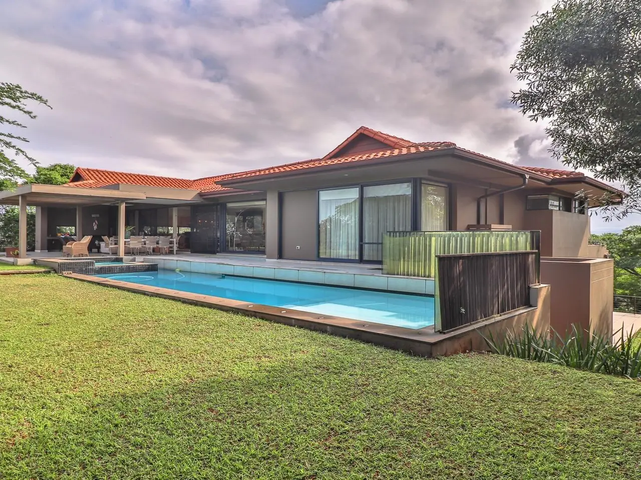 Luxurious Opulent Home in Zimbali Welcome to this palatial residence in Zimbali, masterfully designed by Chen Sagneli, where luxury meets lifestyle. Set across three expansive levels, this home is a testament to opulent living and is perfectly suited for a large family who loves to entertain. Step inside the grand double-volume entrance hall that leads you to expansive reception and entertainment areas, characterized by high ceilings and seamless access to lush gardens and courtyards. The main lounge opens onto a tranquil pool patio featuring a dining area and a state-of-the-art gourmet kitchen, complete with a large engineered island and illuminated by chic suspended lamps. This kitchen also includes a pantry, separate scullery, and laundry, flowing effortlessly into the living areas. Each of the four oversized, air-conditioned bedrooms offers a luxurious en-suite bathroom and private garden access. The majestic master suite extends across the northern wing of the top floor, boasting a magnificent walk-in dressing room and an exquisite outdoor shower. This suite, like the rest of the home, capitalizes on the northern light and offers stunning sunset vistas over rolling green hills. Entertainment is at the heart of this homeGÇÖs design. The first floor features a spacious home office and a home theatre room complete with a bar, ideal for hosting movie nights. The top floor surprises with its flawless design and extraordinary interaction with the surrounding landscape, including a covered patio with a built-in braai and a designer swimming pool with a rim-flow Jacuzzi. The residence offers not only a massive generator and borehole with underground water tanks but also includes staff accommodation and four garages. For convenience, an elevator ensures easy access across all levels. Outdoor living is equally impressive, with three patios offering diverse viewsGÇöfrom sunrise and fairway scenes to sunset and inland vistas, all connecting beautifully with the landscaped garden that melds into the golf course. Residents of this home will enjoy the exclusive Zimbali lifestyle, complete with access to clubhouses, a world-class golf course, tennis and squash courts, nature trails, top-notch restaurants, a spa, and direct beach access. This home is more than just a residenceGÇö this home is ideally suited for discerning families who appreciate grandeur in both entertainment and private life. itGÇÖs a lifestyle waiting to be embraced. Contact us today to schedule your private viewing