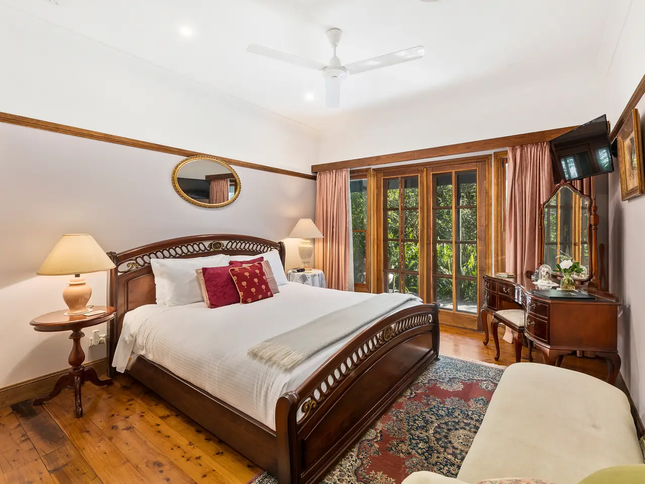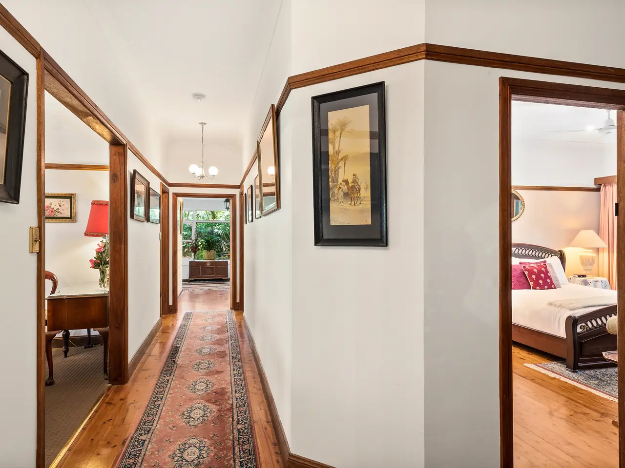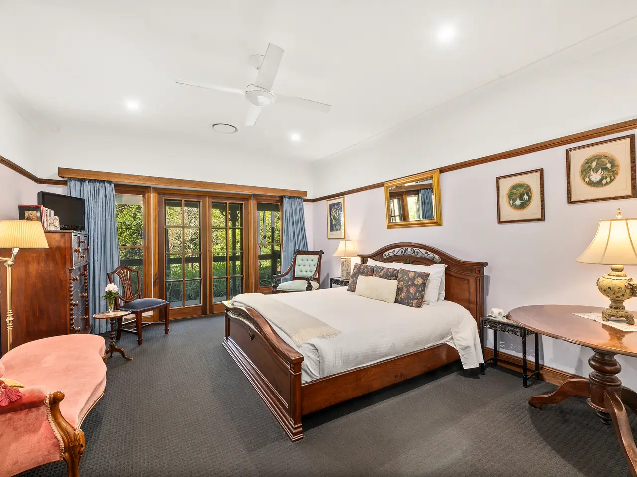 Built in 1919 by one of the region's pioneering dairy farmers, 'The Laurels' has long stood as a cherished chapter in Kangaroo Valley's pastoral story. Once part of a working dairy, the classic country homestead's original stone gateposts, post-and-rail fencing, and wraparound verandah still honour its rural roots. Set beneath towering camphor laurels planted over a century ago, this five-bedroom, five-ensuite residence now seamlessly blends timeless craftsmanship with modern comfort. Period features remain beautifully intact – from pressed metal ceilings and leadlight windows to timber-framed doors and original glasswork – while zoned ducted air conditioning, a 6kW solar system and full insulation ensure year-round comfort. A country-style timber kitchen with a gas cooktop connects to generous living spaces including a sitting room warmed by a combustion fireplace. Additional rooms include a library, a formal dining room, a breakfast room, and a family room that flows onto a large entertaining deck. Each bedroom opens onto the deep verandah that wraps around the home's romantic footprint, while a three-bay barn-style shed and five guest parking spaces provide practical amenities. Set on just under an acre of flourishing gardens and currently operating as a thriving B&B, 'The Laurels' invites new custodians to continue its storied legacy. • Built in 1919 by one of Kangaroo Valley's pioneering dairy farmers • Original stone gateposts, post-and-rail fencing, and deep wraparound verandah • Five bedrooms, each with its own ensuite, opening to the verandah • Pressed metal ceilings, leadlight windows and original timber doors • Country-style timber kitchen with gas cooktop adjoining a breakfast room • Sitting room with combustion fireplace, library, formal dining and family room • Zoned ducted AC, 6kW solar system and full insulation • Entertaining deck overlooking established, flourishing gardens • Three-bay barn-style shed and five additional guest parking spaces • Set on just under an acre and currently operating as a successful B&B