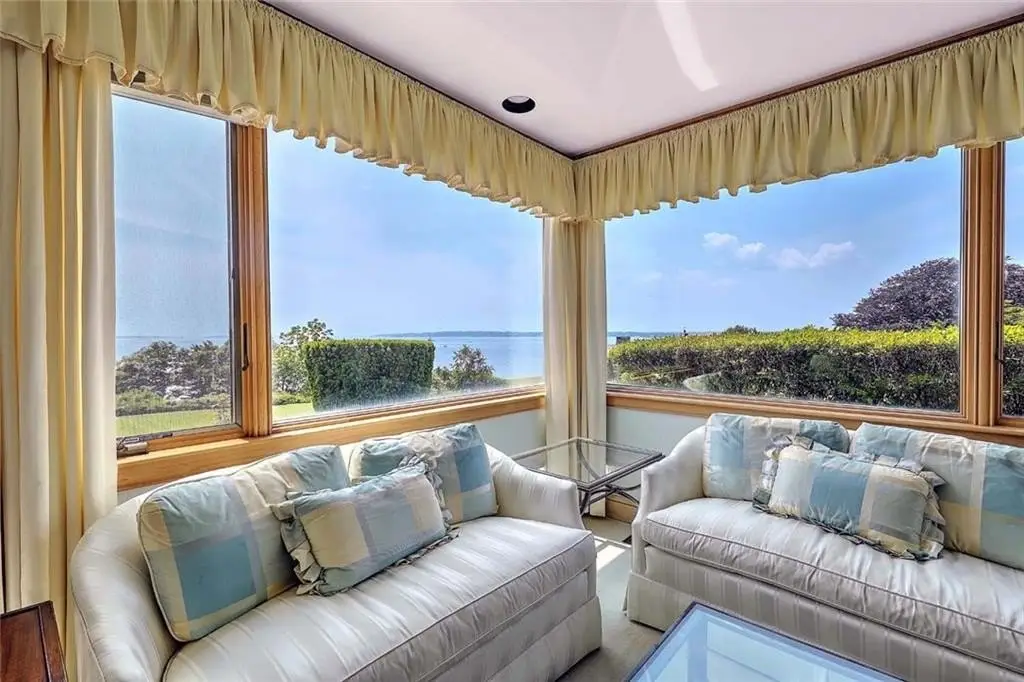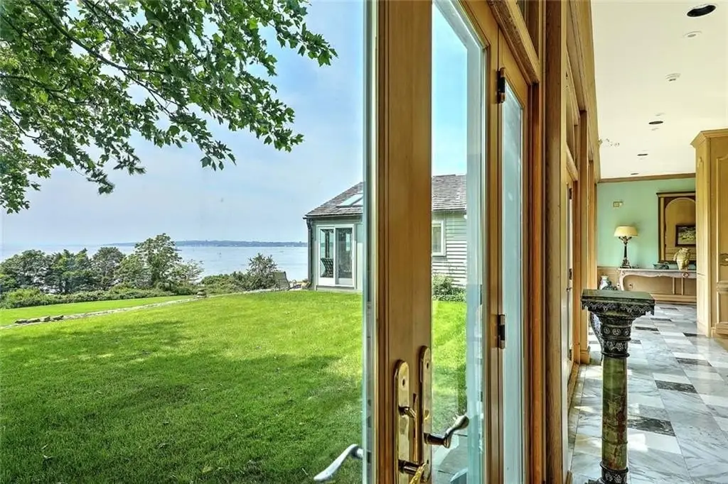 This Barrington waterfront estate featured in Architectural Digest with nearly 3 acres and continuous water views of Narragansett Bay evokes Nayatt Point’s golden era as a premier summer retreat. Built for Henry S. Chafee by George W.W. Brewster, the home sits on the site of a former Victorian house using the original foundation. To the rear, bay views and the iconic lighthouse provide the perfect backdrop for entertaining on dual stone terraces. Inside, a central living area with marble floors consists of an entry hall, living room, and dining area divided by 2 fireplace walls and flanked by 2 wings. One wing descending the sloping grade includes the owner’s suite, bonus room, and a double guest room. Retire to the main suite with water views from its sitting room, skylighted sunroom, and the terrace. The opposite wing offers a kitchen with professional-grade appliances, teak counters, and a water-facing breakfast area. The family room showcases a massive stone fireplace and more water views through oversized French doors out to the grounds. Finally, the carriage house, the only remaining original structure, provides a 1st-floor garage with a fabulous 2nd-floor apartment to customize to your live/work/play needs. This superlative slice of coastal living is down the road from the amenities of the RI Country Club. The Barrington Marina, town center, dining, the bike path, and vibrant community make this one of the state’s finest properties.
