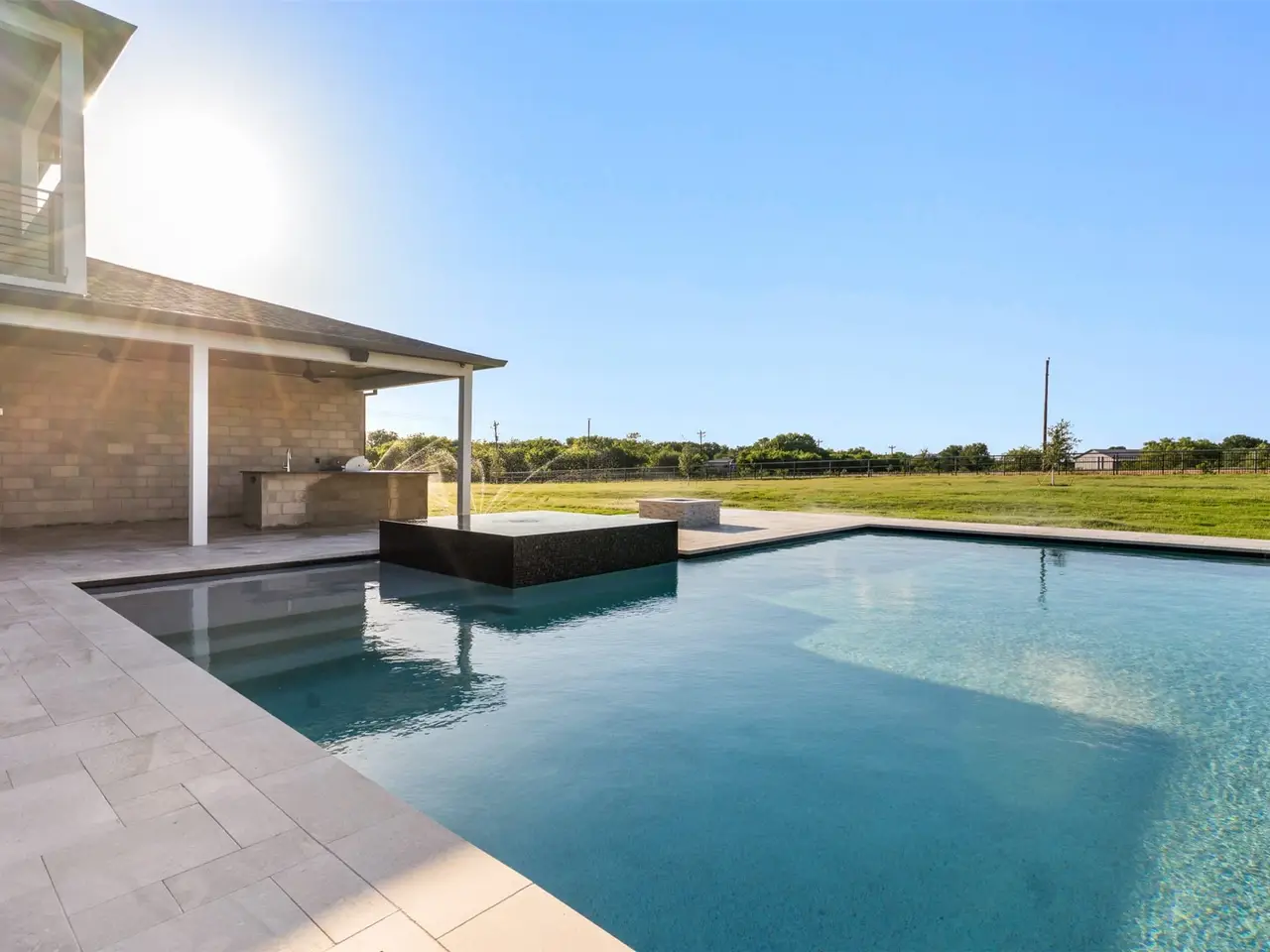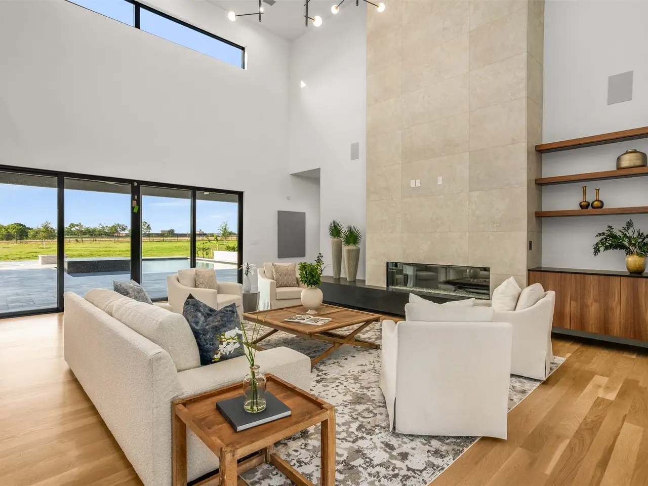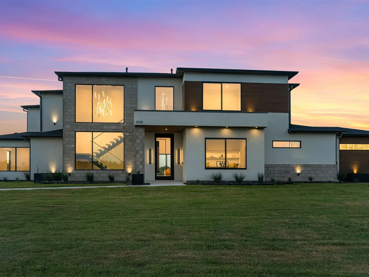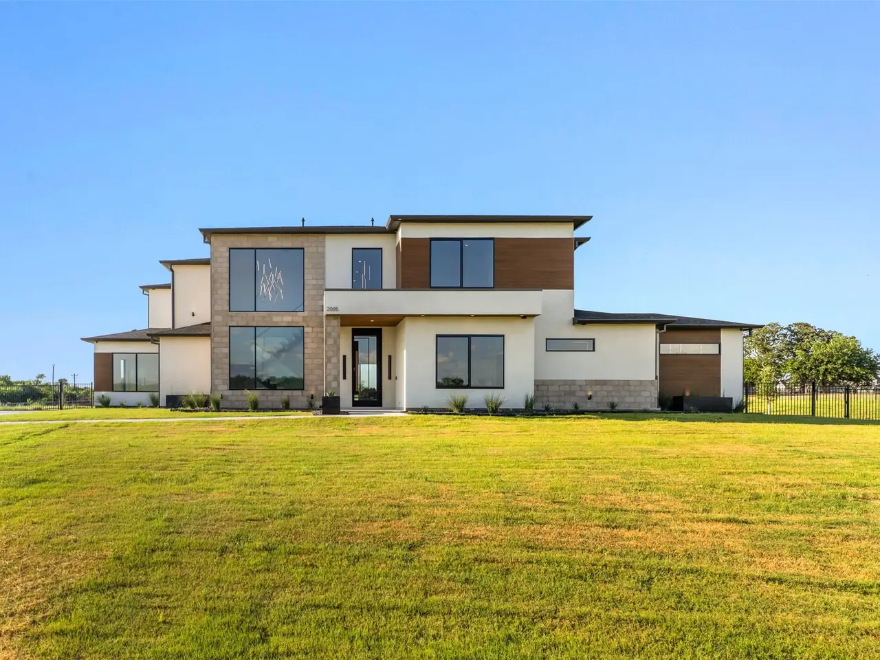 Modern Luxury on 2 Acres! Trifecta Estates - Built by Fourteen Construction Experience cutting-edge modern living on a sprawling 2-acre lot in the heart of Bartonville. This newly built showpiece by Fourteen Construction masterfully blends bold architectural design with luxurious amenities, all set within the prestigious Trifecta Estates. An impressive pivot door sets the tone for what's inside - where clean lines, a floating staircase, and flawless Level 5 smooth wall finishes create an unforgettable first impression. Natural light pours through expansive walls of glass, framing stunning views of the resort-style backyard from the open-concept living, kitchen, and dining areas. At the heart of the outdoor oasis is a large sparkling pool, flanked by two expansive covered patios, perfect for entertaining or relaxing in style. The outdoor kitchen is fully equipped and ready for your next gathering. Inside, enjoy elevated features like a linear fireplace, LED-lit master closet, and zero-maintenance exterior siding. Thoughtfully engineered for comfort and performance, the home includes spray foam insulation, two tankless water heaters, a heavy-duty foundation with piers, and full Ethernet cabling. Pre-wired for security cameras and integrated audio both inside and out. Rounding out this modern marvel is a 4-car garage, high-end designer lighting throughout, and timeless attention to detail in every room.