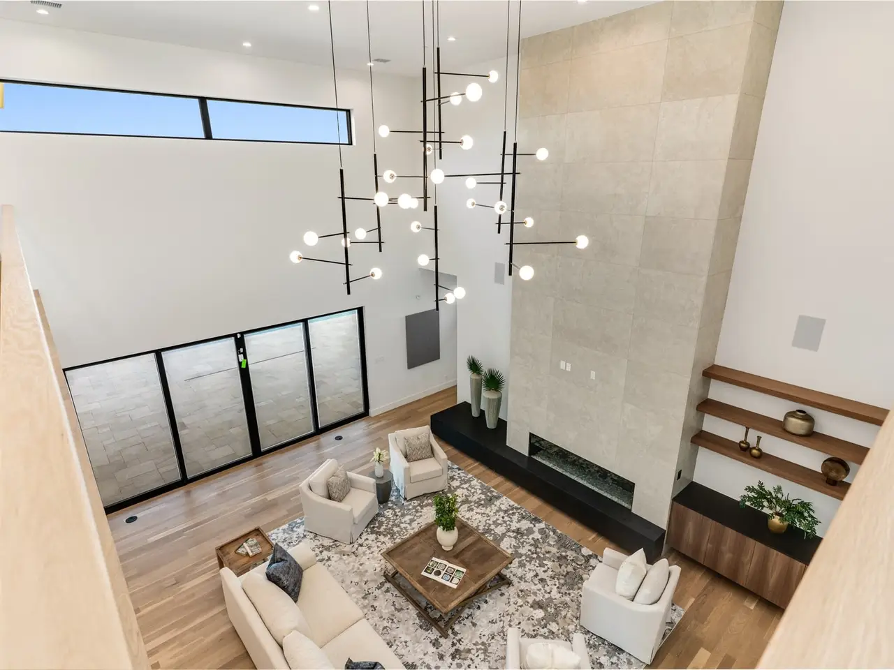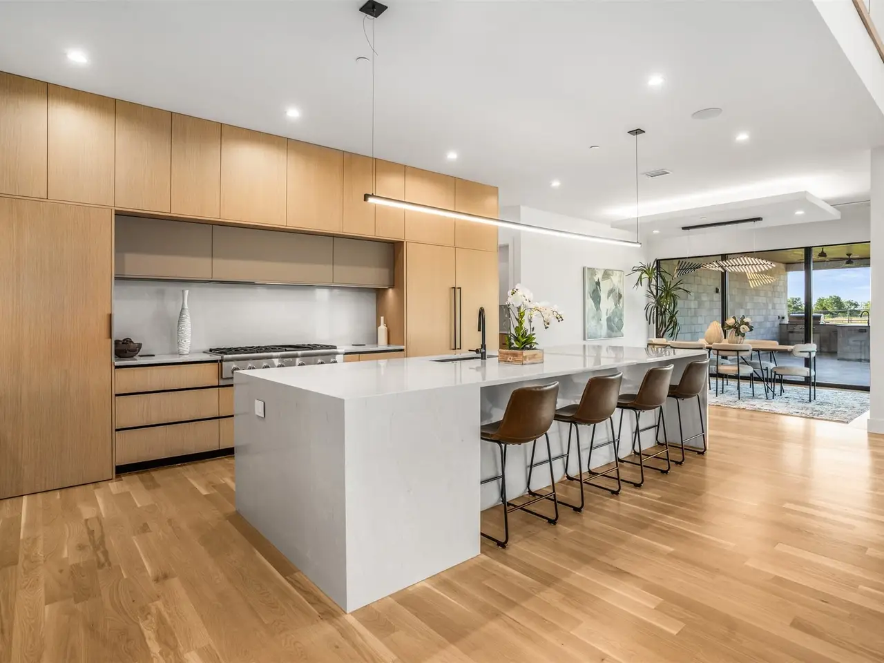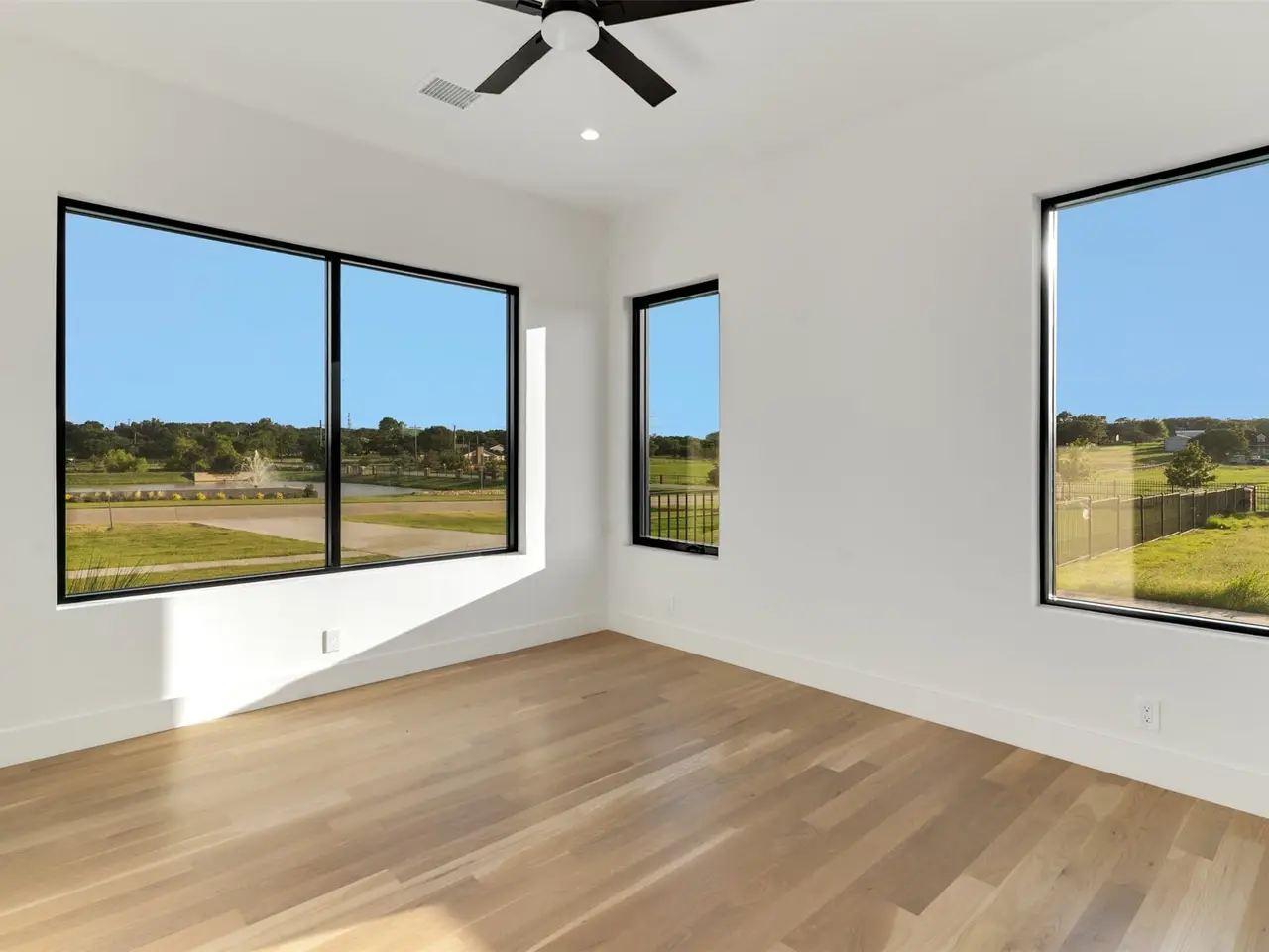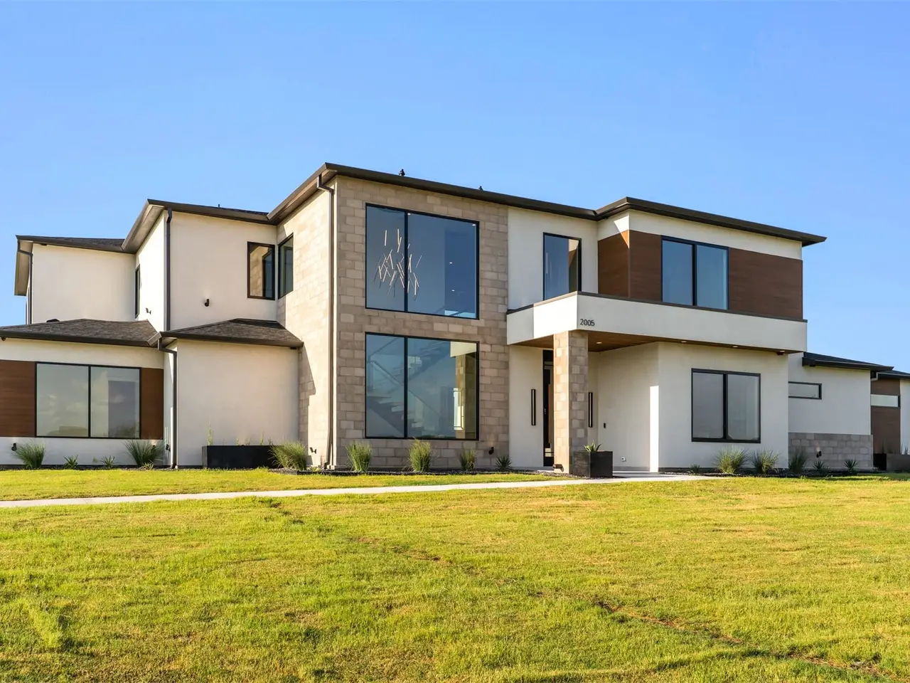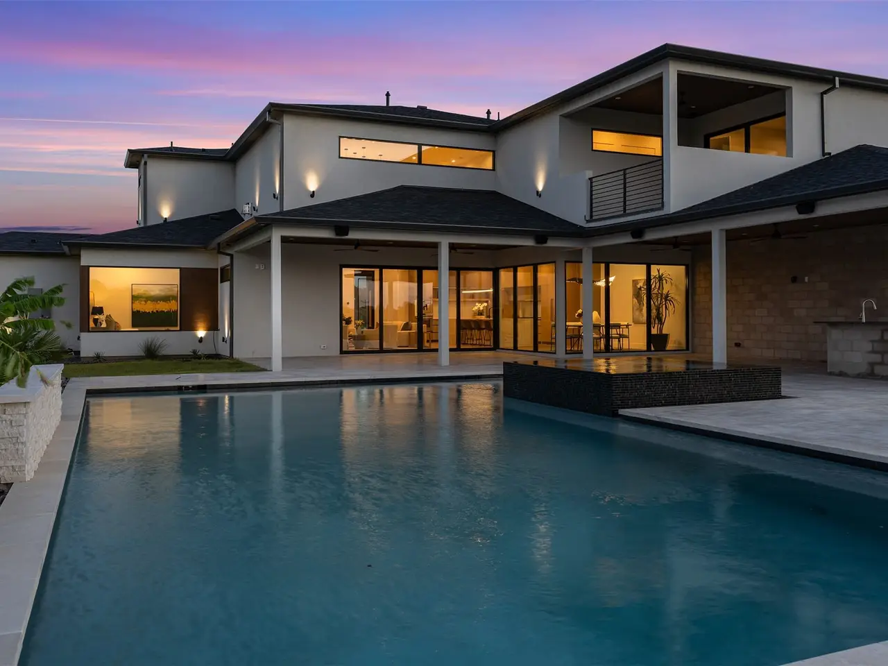 Modern Luxury on 2 Acres! Trifecta Estates - Built by Fourteen Construction Experience cutting-edge modern living on a sprawling 2-acre lot in the heart of Bartonville. This newly built showpiece by Fourteen Construction masterfully blends bold architectural design with luxurious amenities, all set within the prestigious Trifecta Estates. An impressive pivot door sets the tone for what's inside - where clean lines, a floating staircase, and flawless Level 5 smooth wall finishes create an unforgettable first impression. Natural light pours through expansive walls of glass, framing stunning views of the resort-style backyard from the open-concept living, kitchen, and dining areas. At the heart of the outdoor oasis is a large sparkling pool, flanked by two expansive covered patios, perfect for entertaining or relaxing in style. The outdoor kitchen is fully equipped and ready for your next gathering. Inside, enjoy elevated features like a linear fireplace, LED-lit master closet, and zero-maintenance exterior siding. Thoughtfully engineered for comfort and performance, the home includes spray foam insulation, two tankless water heaters, a heavy-duty foundation with piers, and full Ethernet cabling. Pre-wired for security cameras and integrated audio both inside and out. Rounding out this modern marvel is a 4-car garage, high-end designer lighting throughout, and timeless attention to detail in every room.