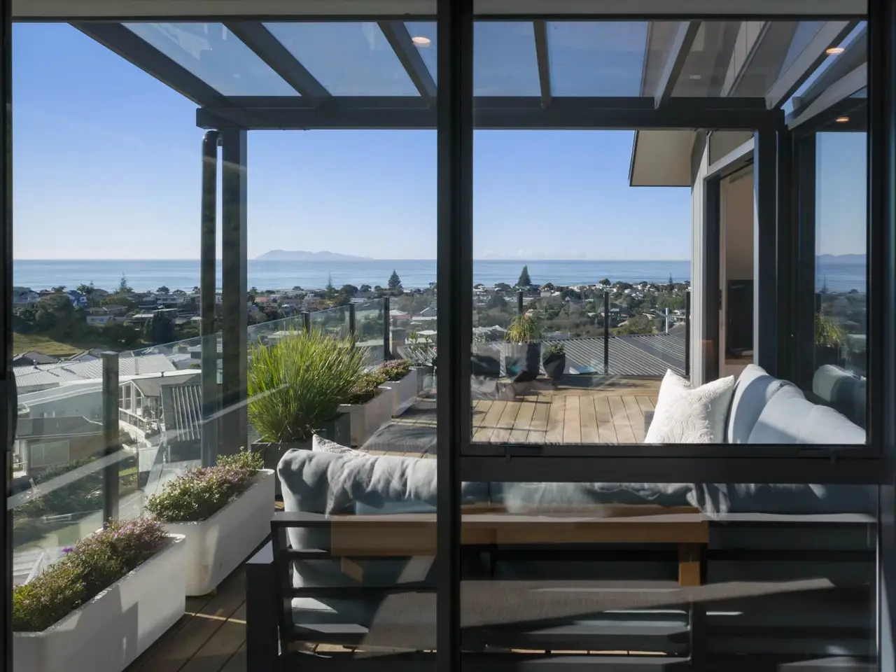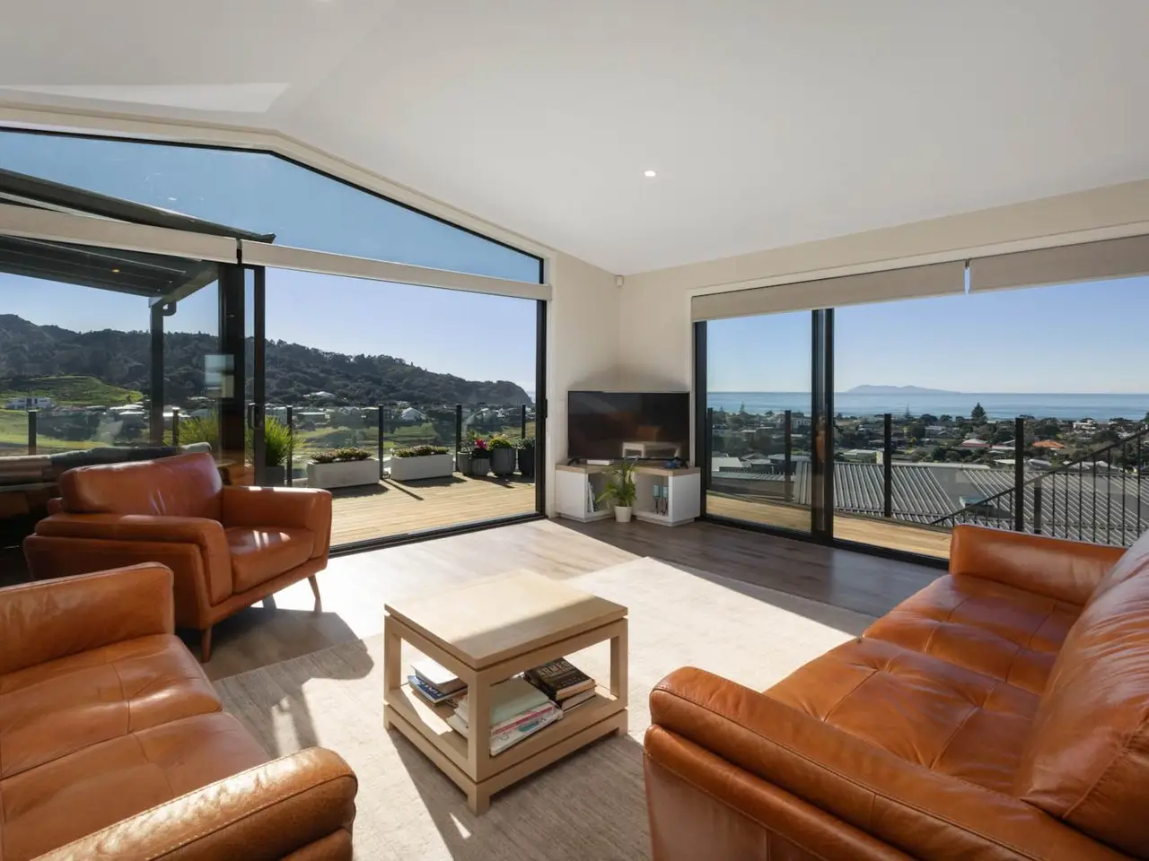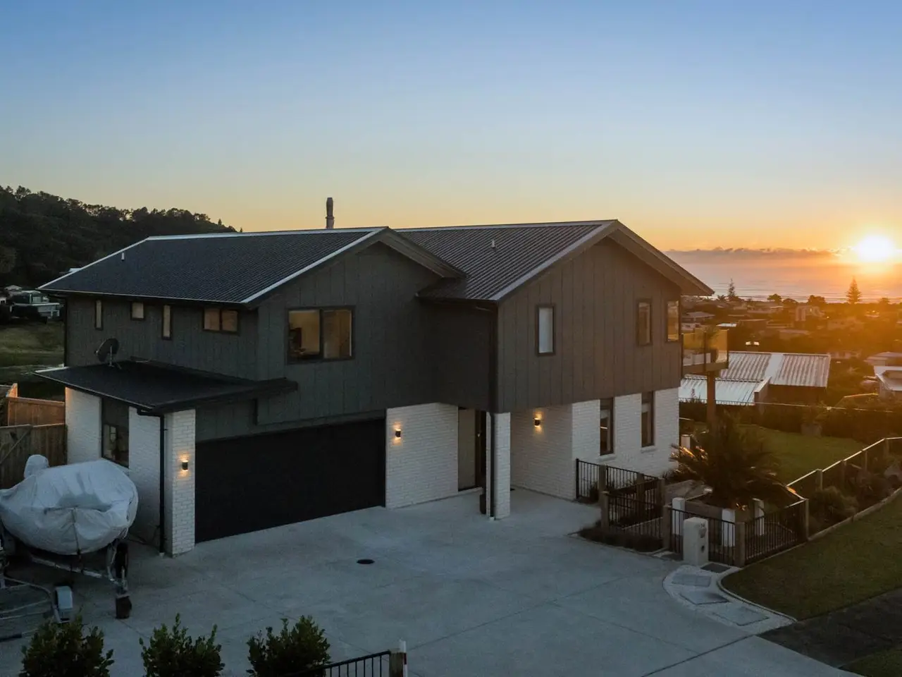 Perched high on the crown of prestigious Tohora View, this intelligently designed home offers the perfect fusion of location, lifestyle, and possibly the best ocean views at Waihi Beach. This two-year-old build has been nominated for the prestigious House of the Year Award! From the moment you enter, you're greeted by light, space, and seamless flow over two levels. An internal lift, providing effortless access from the main level to the top floor — a thoughtful addition that brings both convenience and futureproofing. The home also provides a striking American Ash timber staircase, blending natural beauty with architectural elegance.On the upper level: an expansive open-plan living area, anchored by a sleek, modern kitchen with a scullery, connects effortlessly to a generous dining and living hub. High-stud ceilings enhance the sense of scale, while stacker doors lead to a substantial wraparound deck. The stand-out feature is the panoramic ocean views that sweep from The Mount to Waihi Beaches north end and the hills beyond. Accommodation on this level includes a private master suite with its own en-suite with a luxurious bath and an oversized walk-in wardrobe, plus a second bedroom or office space and the convenience of a powder room. Every detail throughout the home — from premium fittings to considered finishes — reflects a commitment to style, comfort, and enduring quality.On the lower level: An internal access double garage allows for security and convenience while two large bedrooms and a generous second living area are perfect for accommodating teenagers or extra guests. Servicing the lower level is a fully tiled bathroom with a separate WC and dedicated laundry. Access the exterior spaces through several portals to a well-equipped second entertaining space with an outdoor oven to make those summer evenings even more enjoyable.Outside, landscaped gardens frame the home with lush greenery and seasonal colour, offering both privacy and a peaceful connection to nature. Plenty of parking for the boat and motor home too!Call us today for your private viewing