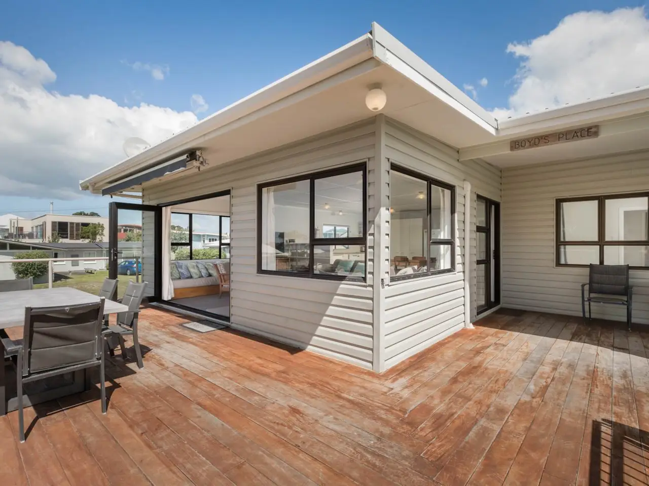 Welcome to one of the most sought-after addresses along the coast. Perfectly positioned on an elevated 835m2 corner site, this property captures outstanding sea views that stretch across the horizon. The home offers plenty of accommodation, making it ideal for family getaways, permanent living, or holiday letting. The expansive grounds provide ample room for tents, RVs, and outdoor fun, while the thoughtful layout ensures comfort indoors. Step outside to the huge northeast-facing deck – an entertainer’s dream. From sunrise coffees to evening gatherings, it’s the perfect vantage point to soak in the ever-changing seascape. Or alternatively cross the road and have a meal at the popular Flat White restaurant. This is more than a property, make family memories. Space, views and prestige come together on Shaw Road. Auction: 1 Citrus Avenue, Waihi Beach on Saturday 1 November 2025 at 2:00PM (unless sold prior)