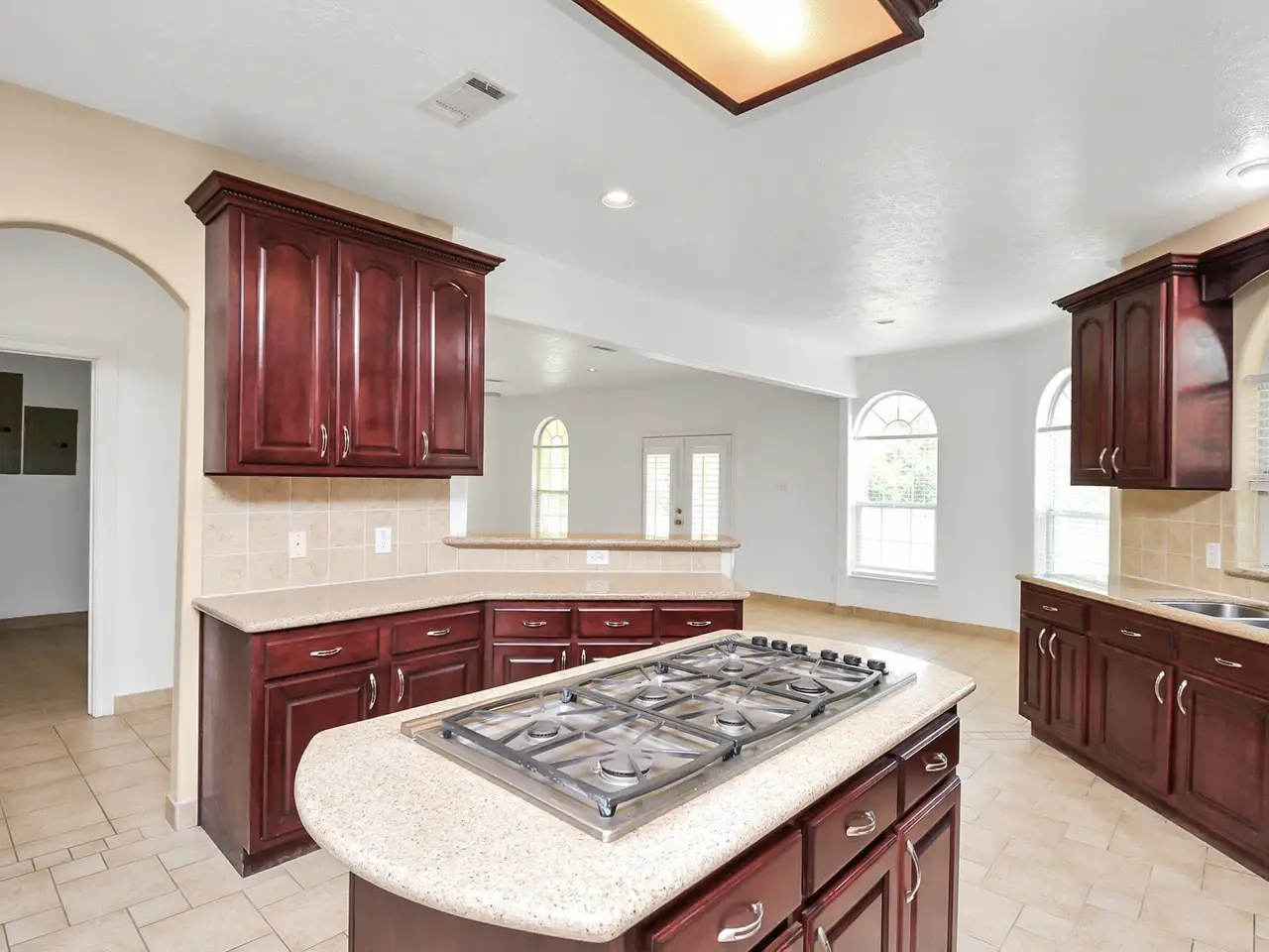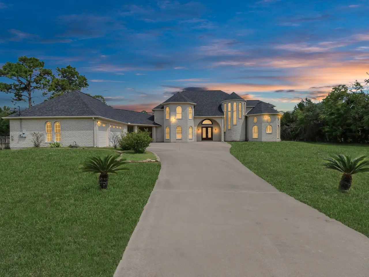 Set on nearly 8 acres in Baytown, Texas, this custom-built home offers an ideal blend of space, comfort, and privacy. The thoughtfully designed floor plan features a spacious primary suite downstairs and three additional bedrooms upstairs — each with its own ensuite bath and walk-in closet. The chef’s kitchen is a true centerpiece, boasting stainless steel appliances, granite countertops, and a 6-burner gas cooktop. Soaring windows flood the living spaces with natural light and showcase breathtaking views of the lush, expansive backyard. Outdoors, enjoy a 3-car garage, a generous patio area, and endless opportunities for recreation, relaxation, or future additions. Whether you're an outdoor enthusiast or simply seeking your own private retreat, this property delivers. Don't miss out — schedule your private tour today!