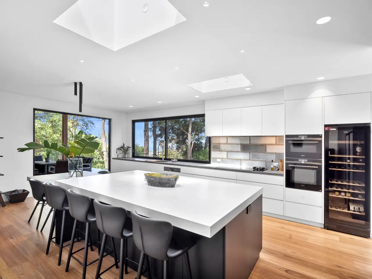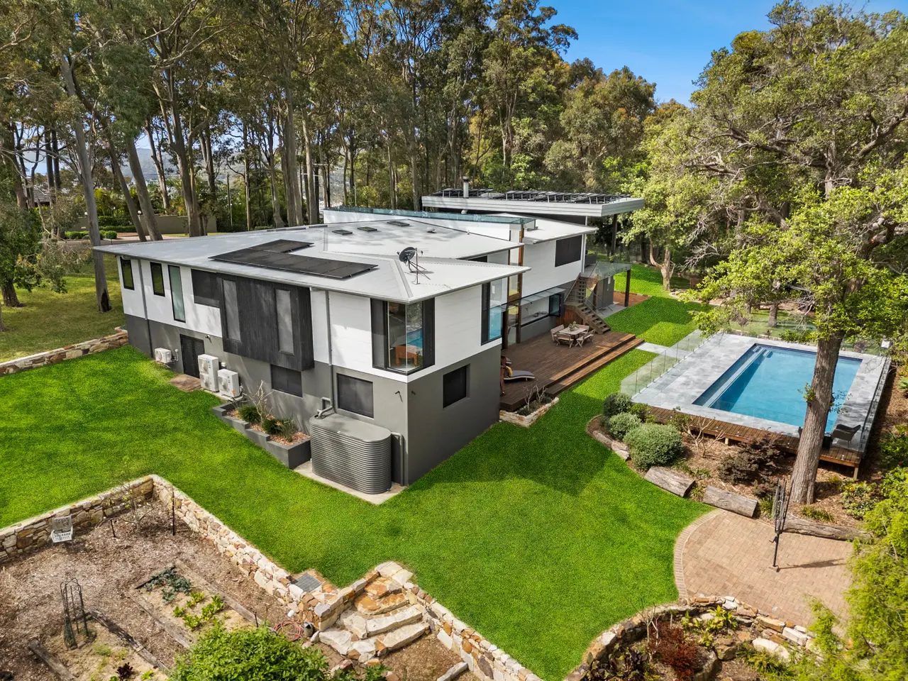 Spanning estate-like grounds on Bayview's premier street address, there are only two words for this architect designed residence: absolutely spectacular. Awarded top prize in 2022 from the Master Builders Association, the home merges striking forms with the artful play of light and dimension to create an environment of carefree sophistication and casual elegance. The design fully capitalises on the extraordinary landscape and ocean vistas, with three wings – one for children, another for parents and a third for guests, along with three distinct living zones. Extensive glazing creates a sun-trap from the north, while the luminous, free-flowing layout and skylit interiors add to the effortless livability of this phenomenal residence. The property covers a full level acre, blanketed with lush green lawns and dotted with soaring gum trees; the exquisite gardens are finished with reclaimed timber and sandstone, creating an extraordinarily private backdrop for the 12m saltwater pool and views that seem to stretch for miles on end. - Architect designed; awarded top prize by Master Builders Assoc. - Set on a level acre amid gardens, lush green lawns + towering gums - Premium quality design + build; three living zones across two levels - Stunning entertaining terrace on the main floor delivers ocean views - Fully self-contained guest suite at pool level + servery to the deck - Purpose-built home office plus separate study or fifth bedroom - Expansive alfresco deck, 12m resort-style pool, fabulous firepit area - Top-of-the-line kitchen, Siemens appliances, hidden butler's pantry - Master wing boasts superb views, luxe ensuite, walk-in robes + lounge - Elegant bedrooms; all bathrooms include heated floors + towel racks - Temp controlled wine cellar at pool level; holds up to 1,500 bottles - Ducted/zoned climate control, 13.2kW solar, main gas connection - Established garden and fruit trees edged with vintage sandstone borders - Four-car garage w/internal access; room for boats or campervans - Fully fenced property; electronically gated, 18,000ltr water tanks Disclaimer: Whilst all care has been taken to ensure accuracy in the preparation of the particulars herein, no warranty can be given, and interested parties must rely on their own enquiries.