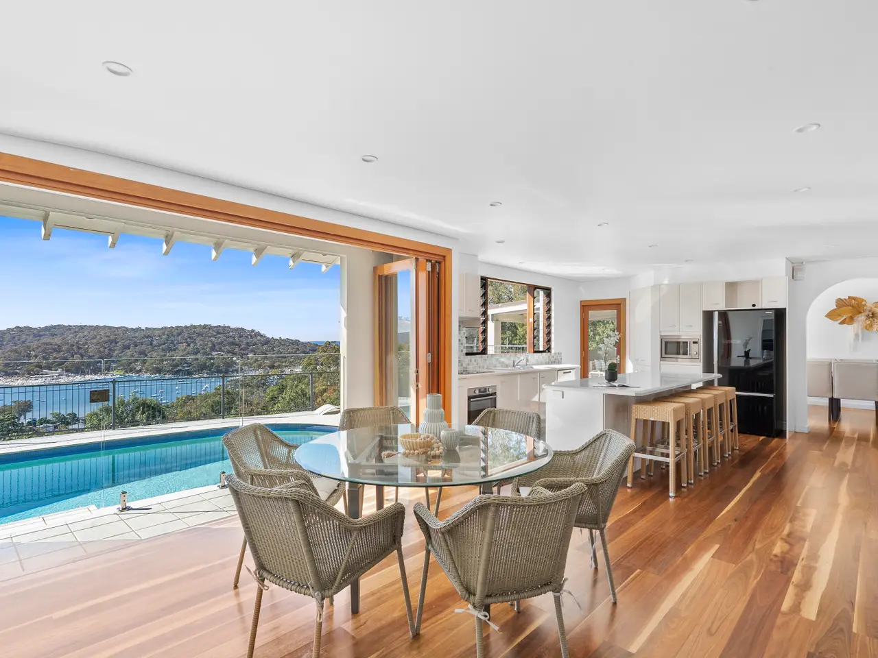 Privately nestled within a full acre on Bayview's most prestigious street, this contemporary entertainer boasts extraordinary, due north vistas straight up Pittwater to Lion Island and the Central Coast. The home spans three light-soaked levels with ample space for the family to spread out, while inviting the outdoors in with all main living zones merging with an enormous sunlit terrace and sparkling saltwater pool. Well designed and finished with quality appointments throughout, the expansive layout provides maximum privacy and flexibility for parents, children and weekend guests. - Sensational position offering 180-degree north views across Pittwater - Seamless connection to expansive, sunlit terraces + saltwater pool - Gorgeous hardwood floors and bifolds across all main living zones - Tri-level design; warm and sunny in winter, cool and breezy in summer - Exceptional privacy and a versatile layout; bedrooms on each level - Elegant kitchen includes both walk-in pantry and full butler's pantry - Master ensuite, fully equipped home theatre, wood burning fireplace - Guest powder room, air con, double garage with internal access