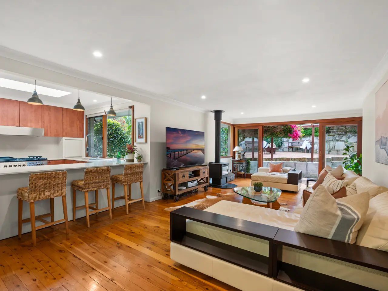 Radiating warmth with its natural timbers and earthy tones, this four-bedroom home sits in an elevated position, thoughtfully crafted for privacy and comfort. The flexible floorplan includes a versatile downstairs studio, which can function as a fourth bedroom, home gym, or office. The expansive alfresco balcony, perfect for year-round entertaining, overlooks a tranquil leafy reserve, offering a peaceful setting for gatherings or quiet moments. The north-facing tiered garden at the rear, is complete with a charming children's cubby, enhancing the home's allure, providing inviting spaces for relaxation and play. Located moments to village shops, trendy seaside cafes, restaurants, shopping centres, schools, gyms, golf courses, cinemas, and express city buses. - Spacious four-bedroom home on 757m², offering warmth and privacy - Flexible floorplan with a downstairs studio, home gym or office - Year-round alfresco space perfect for entertaining and relaxing - Natural timbers and earthy tones create a welcome ambiance - Seamless indoor-outdoor flow for effortless living and entertaining - Cosy wood-burning fireplace adds warmth and charm to the home - Kitchen with oversized oven, gas appliances, and leafy outlook - Bedrooms with mirrored built-in robes and white plantation shutters - Master with ensuite, luxe bath, dual vanity, and tranquil outlook - Laundry with external access and underfloor reverse cycle air-con - Enveloped in lush greenery, manicured lawns, and garden shed - Tiered garden with children's cubby and vibrant bougainvillea - Located opposite Pamela Crescent Reserve and Playground - Spacious double automatic lock-up garage with internal access - Moments to village shops, seaside cafes, schools, and city buses Disclaimer: Whilst all care has been taken to ensure accuracy in the preparation of the particulars herein, no warranty can be given, and interested parties must rely on their own enquiries.