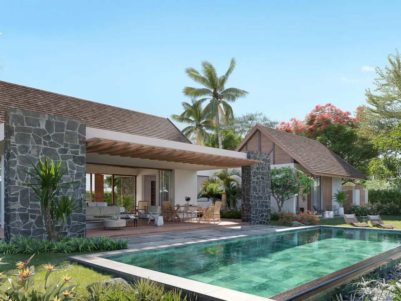 Located in the residential neighborhood of L’Écho des Champs in Anahita Beau Champ, Villa Demera 4 embodies the essence of modern Mauritian living—comfortable, sustainable, and thoughtfully designed. With seamless transitions between indoor and outdoor spaces, this villa invites you to embrace an open, harmonious tropical lifestyle, immersed in nature. A Design Inspired by Climate and Landscape Designed with a bioclimatic approach, Villa Demera 4 prioritizes: An open architecture with expansive glass doors and covered outdoor spaces Natural materials such as volcanic stone, wood, and thatch, blending effortlessly into the surroundings Optimal positioning on the plot to maximize natural ventilation and sunlight throughout the day The villa opens onto a private garden and pool, creating an intimate green oasis perfect for relaxation and shared moments with family and friends. Spacious, Functional Living Areas Villa Demera 4 features: A bright living room extending to a covered terrace with a dining area and lounge space An open, practical, and convivial kitchen 3 to 4 spacious bedrooms with en-suite bathrooms, ensuring comfort and privacy A landscaped garden with a pool and relaxation area The layout is designed for effortless flow and a living experience deeply connected to nature, all in a simple yet refined manner. Part of a Sustainable, Vibrant Community Villa Demera 4 is an integral part of the Anahita Beau Champ development—a domain that blends innovation, agriculture, wellness, and authenticity: Zeste Café & Deli, coworking spaces, a fitness room, walking and cycling trails Upcoming amenities: schools, a health center, a local market, and an Innovation Park Exclusive access to the Beach & Boat Club Amarela, with shuttle service to Île aux Cerfs Investing in Anahita Beau Champ: A Meaningful Choice Freehold ownership with residency permits for foreign buyers Resale possible on the international market Access to a community committed to sustainable, inclusive, and eco-conscious development A rare opportunity to live in harmony with nature while enjoying modern comforts Villa Demera 4 is the perfect expression of contemporary tropical living—connected, refined, and at the heart of one of Mauritius’ most innovative projects.
