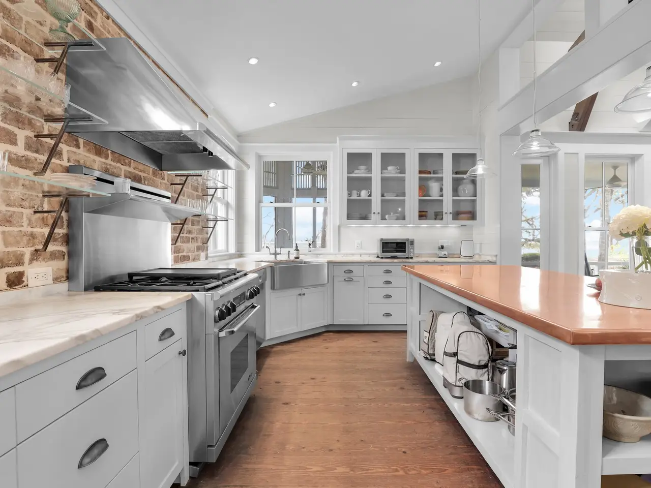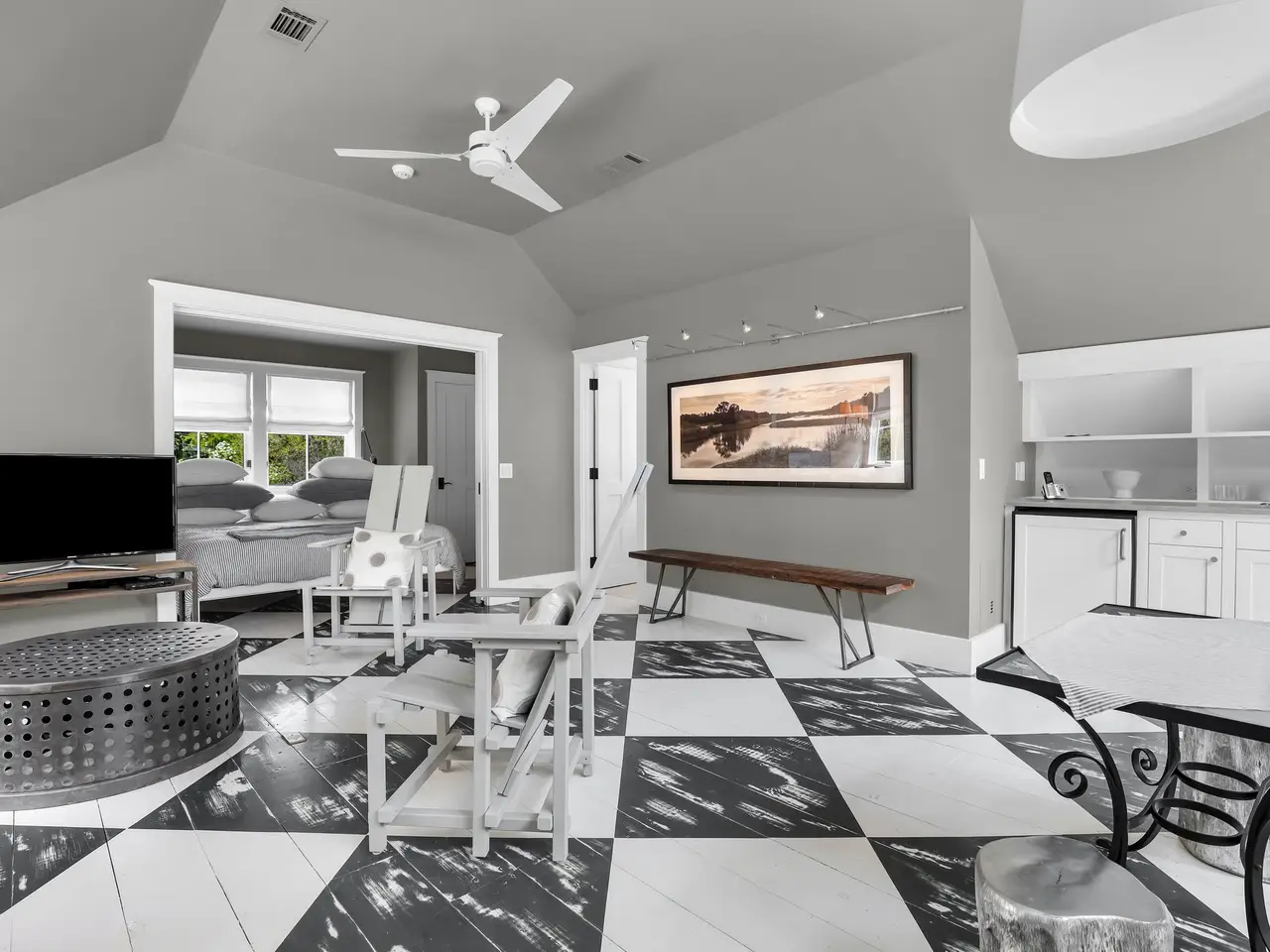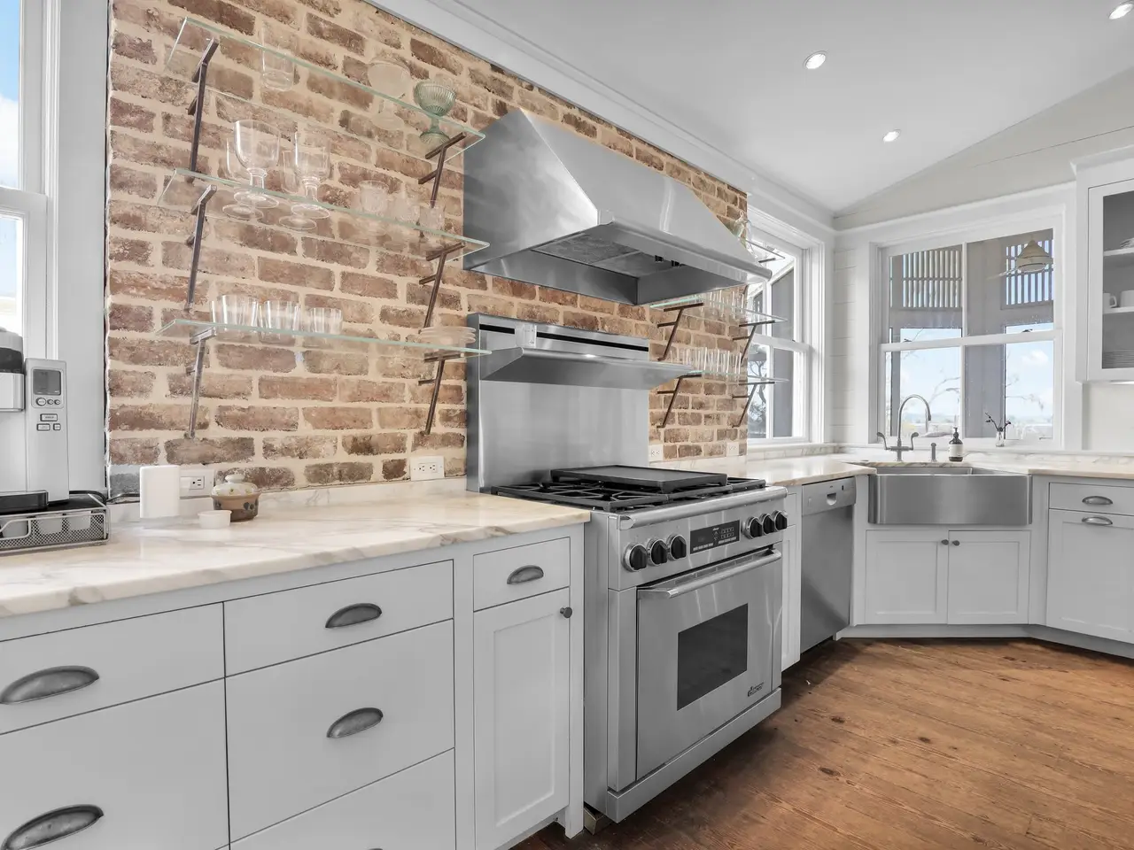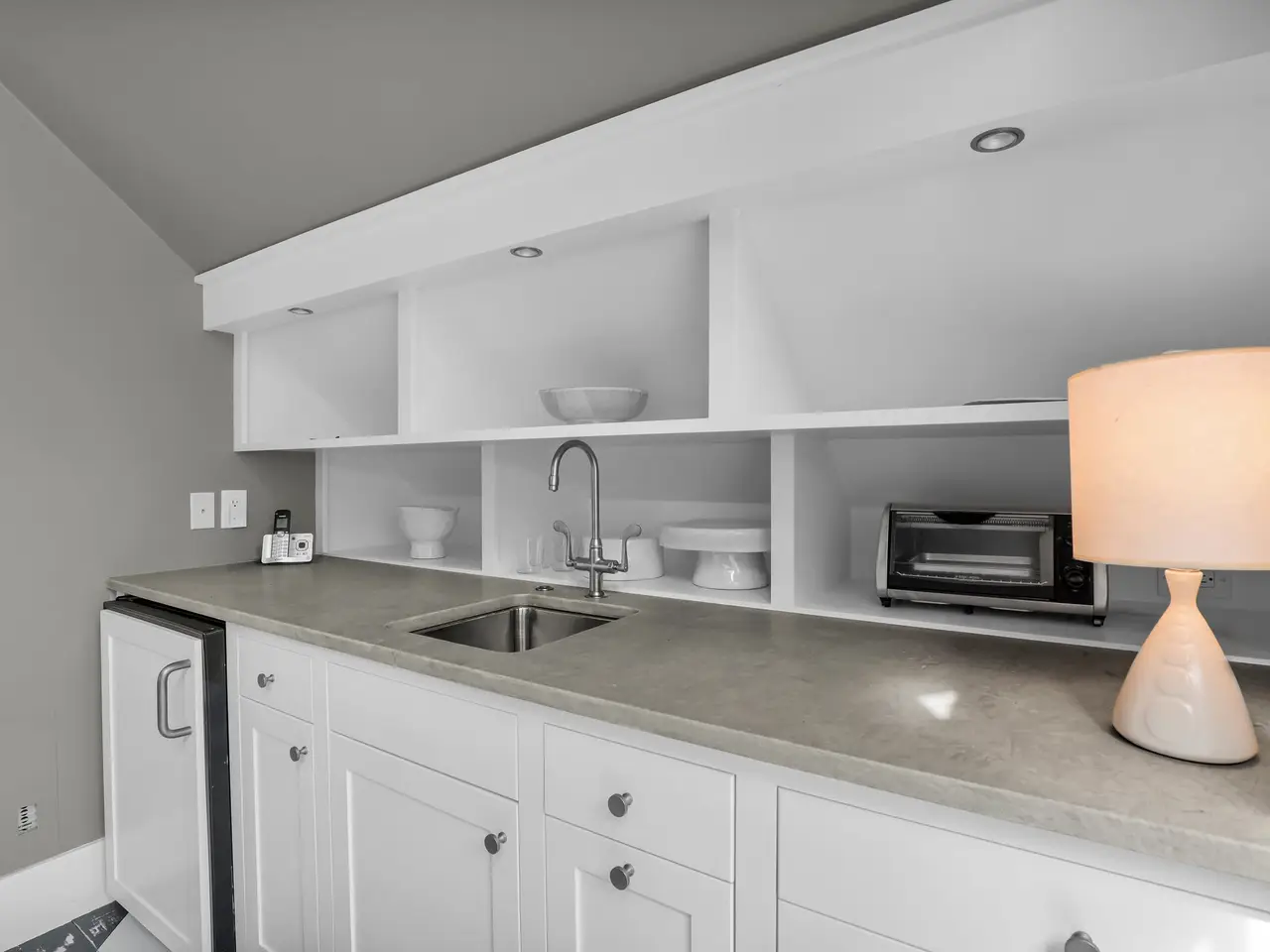 - Vaulted ceilings with dramatic wood-burning fireplace