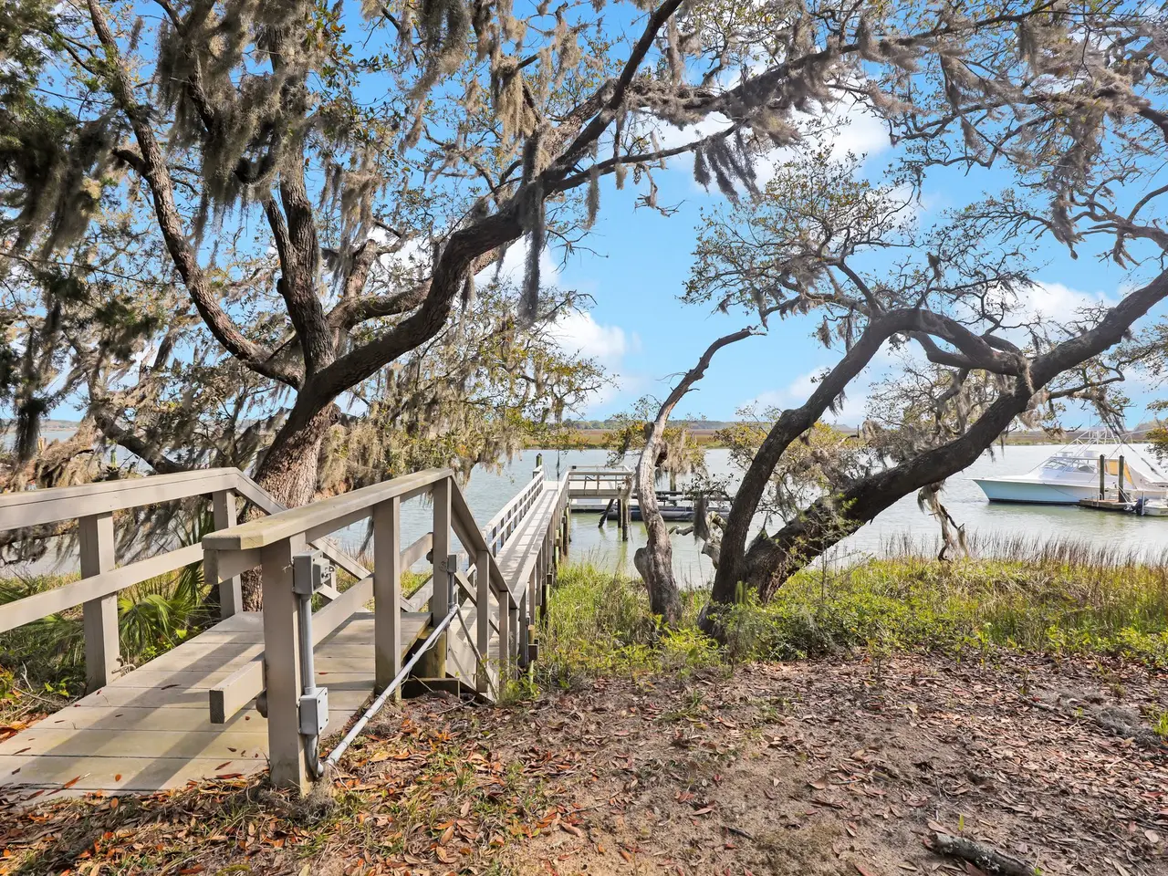 Situated on a south-facing bluff on Distant Island, this deepwater, award winning contemporary interpretation of Southern vernacular architecture offers the finest in location, quality and design. Featuring four bedrooms and three and one- half baths, the home was designed as three separate structures, connected by hyphens and breezeways, creating private and light- filled distinct spaces. A gravel drive winds through mature landscaping to the home. A herringbone- patterned Old Carolina Savannah grey brick staircase, covered by a large pergola, leads to the front door. The staircase is enhanced by built-in planters. An airy foyer, with a brick floor, allows for access to the living room and kitchen. Casual and sophisticated, the living room offers a dramatic two- story vaulted ceiling, wide-plank reclaimed heart pine floors and a bank of windows facing the deep water of Distant Island Creek. The wood-burning fireplace also offers a gas starter and an exposed brick chimney. The walls are shiplap, and large built-in shelves are adjacent to the fireplace. Four ceiling fans gently turn to keep the room fresh and cool. Beautiful beams and contemporary cables offer structural support and create a dynamic blend of old and new. Anchoring the east end of the living room is a kitchen featuring custom cabinetry, some with glass panels. There is a Dacor gas range and cooktop, a Bosch dishwasher, a Dacor wall oven and separate microwave. There are two sinks and honed Calacatta gold marble counters. Focal points include a brick back splash and the massive copper-topped island. The well-conceived island offers storage and easy access for small appliances. Located off the living room is a perfect place to watch a movie or read a book. Surrounded by custom shelves, this well- proportioned room offers a large TV with a home-theater surround sound system. A large laundry room adjacent to the kitchen continues the same high- quality counters and cabinetry, while a powder room completes this end of the home. The Lowcountry lifestyle can be fully enjoyed outside of the home as amenities include a large hexagonal screened porch, and open covered porch and a spacious waterfront deck. There is a private deepwater dock extending into Chowan Creek offering easy access to the ICW, fishing, sandbars, and restaurants. Distant Island is a short 10 minute drive to Downtown Beaufort or 20 minutes to the Hunting Island State Park Beach, offers a community garden, 3 docks, private boat landing, walking trails, and a tennis court. Truly on of the finest properties in the Lowcountry and one of a kind. This material is based upon information, which we consider reliable, but because it has been supplied by third parties, we cannot represent that it is accurate or complete, and it should not be relied upon as such.