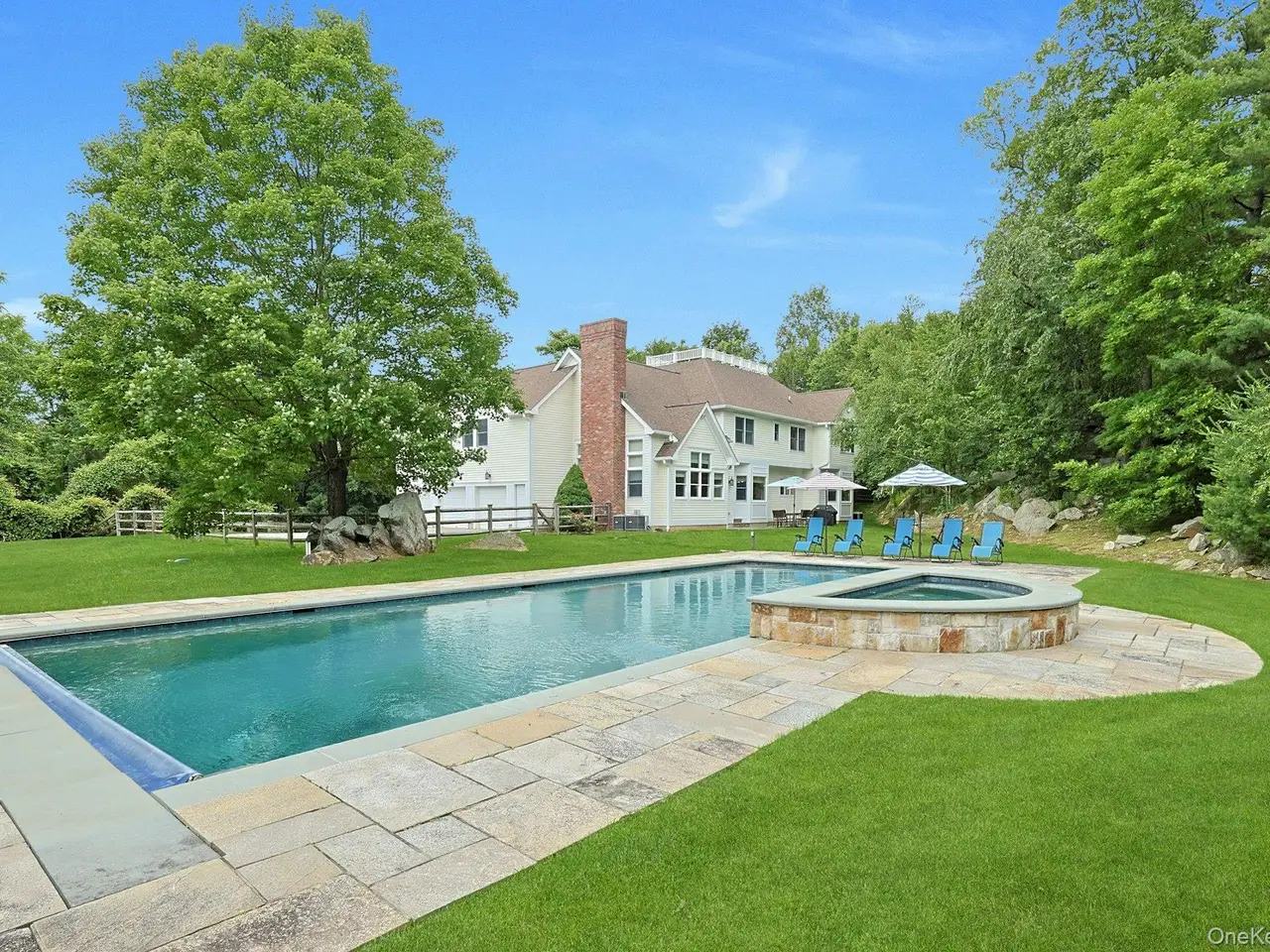 Welcome to Hammond Ridge, the sought after neighborhood in Bedford Corners. This majestic Colonial offers the perfect balance of sophistication and comfort for today's modern living. The approach up the driveway reveals a home with a stately and welcoming presence. Inside, natural light pours through large picture windows filling every room with warmth and openness. The layout is designed for both entertaining and everyday life with formal spaces, flexible rooms for work or relaxation and a dramatic two-story family room that anchors the heart of the home. The gracious primary suite serves as a private retreat complete with a sitting room, dual walk-in closets and a spa-like bath. Step outside to a resort-style setting with a sparkling 22x50 saltwater pool, hot tub and expansive stone terrace all surrounded by rolling lawns and serene views. Enjoy privacy and tranquility without giving up convenience - just minutes to Armonk, Chappaqua, Bedford, Mount Kisco, Westchester Airport and a 7-minute drive to the Mount Kisco Train to NYC.