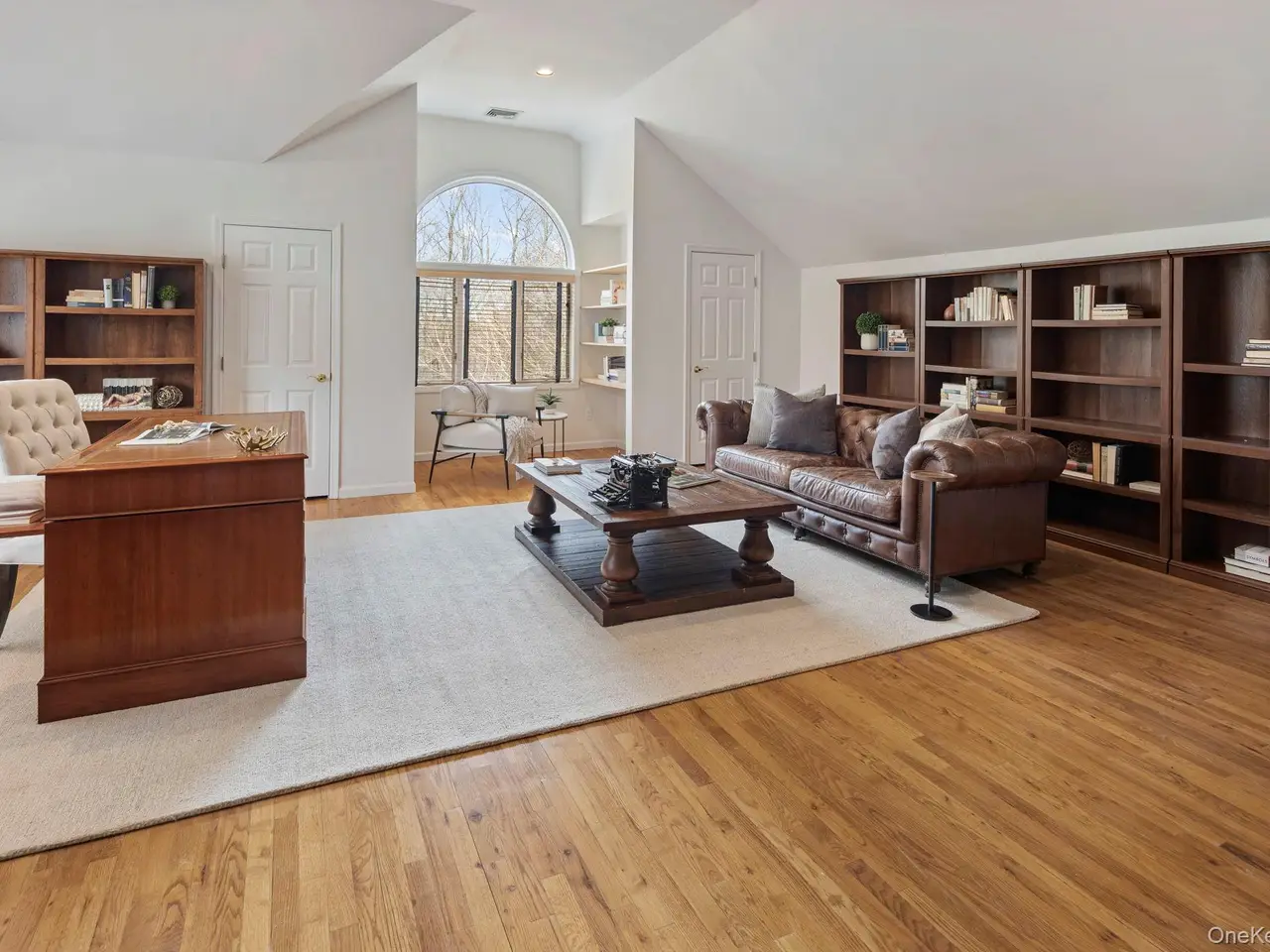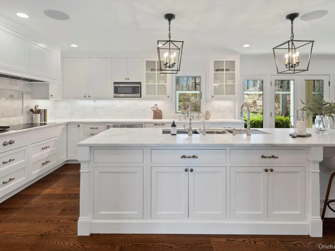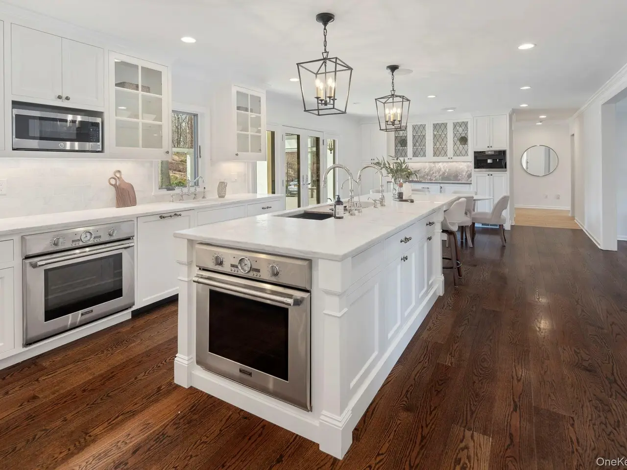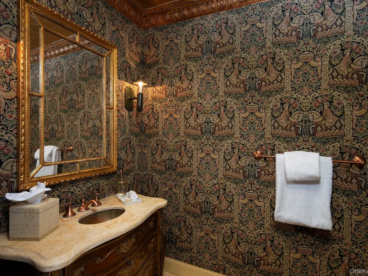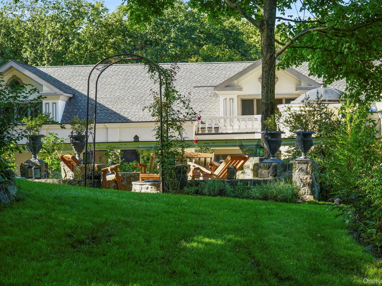 An incredible retreat for living, working and relaxing in complete privacy. Lives like a 5 bedroom home. Transitional style mini estate set on 4.7 serene acres with a pool and magnificent botanical gardens. Flexible floor plan great for hosting guests. Highlights include a new high-end chef's kitchen, marble rotunda entry, dramatic living room, limestone and marble baths, French doors, stone terraces, and Belgian block courtyard. Luxurious first level suite w/library, fireplace, spa bath and dressing room closet. The second level bedroom suite has a sitting room and bath. All bedrooms and bonus room are en-suite and open to a hall lounge. There are two laundry areas. Lower level provides abundant space for enjoying the game room with fireplace, kitchenette, fitness center, bath and sauna. Beautiful terrace patios surround a 20'x40' pool and overlook the private yard and spectacular gardens. Close to village, schools, trains, shops, restaurants, nature preserves and major highways.