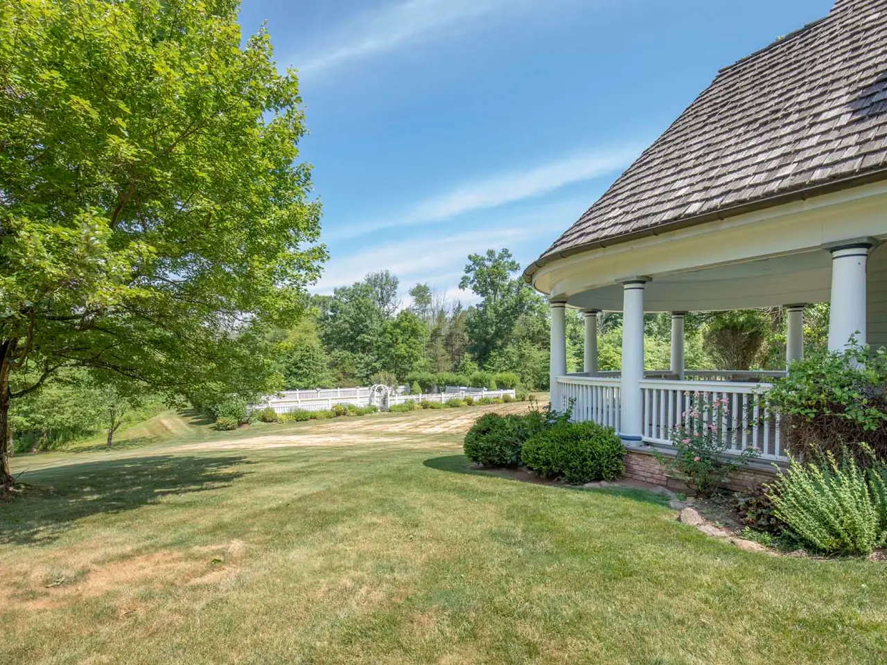 Exquisitely-Detailed Colonial Revival Estate on 43± Acres in Bedminster Set on 43± open, rolling acres in Bedminster Hunt Country, an exceptional gated Colonial Revival estate with equestrian facilities is set along one of the township's most desirable lanes. Featured in NJ Design magazine, the sophisticated interiors create a relaxed ambiance characterized by rich colors and remarkable millwork. The expansive seven-bedroom, eight full bath and two half-bath main residence is enriched by a three-stall horse barn featuring an attached three-car garage with a two-bedroom apartment above and an adjacent bonus room with kitchenette and full bath. Outside the main house, a generous patio and dual-covered side porches overlook sublime views of the acreage, while a pool tucked beyond a charming arbor and white picket fencing is lushly landscaped. Set far back from the road at the end of the long drive, this gracious property provides absolute privacy. Classic design elements within the layout include seven intricately mantled fireplaces, oak wood floors, arched doorways, traditional moldings and woodwork, stunning architectural details, unique built-ins, custom-painted rooms, exposed ceiling beams, two wet bars, a rear staircase and covered porte-cochère access to the home's three-car garage. Hiland Hall Turner Architects oriented the residence on the acreage to take advantage of morning sunlight in the front rooms and colorful sunsets in rear-facing spaces. A grandly styled layout invites epic entertaining as well as quiet times inspired by natural beauty viewed from numerous glass doors and oversized windows. A vestibule entry leads to the front-to-back foyer fitted with painted oak floors, a curving staircase and sightlines into some of the principal rooms. These include a formal living room anchored by an ornately mantled fireplace, a wood-paneled library featuring a fireplace and a connecting mahogany wet bar, and a dining room designed with built-in china cabinets, a fireplace, windowed seating niche and hand-painted wallpaper. An expansive fireside game room is finished in artful trim throughout. Nearby is a home office and formal powder room. The epicurean kitchen presents a center island with a prep sink, Franke farmhouse sink, custom cabinetry and a sun-splashed dining area with a domed ceiling featuring a hand-painted cloud mural. A collection of high-end appliances includes a Viking range, Sub-Zero refrigerator, Bosch dishwasher and wine refrigerator. Adjacent to the kitchen is a secondary office space and a butler?s pantry. The floor plan continues into a great room set under towering vaulted ceilings accented by reclaimed wood beams. Natural light spills into this space from fixed upper windows and French doors to the porch, while a floor-to-ceiling stone fireplace is a handsome focal point. This part of the home is completed by a mud room with storage options, informal powder room, staircase to the finished lower level, secondary stairs to the bedroom level, and access to the porte-cochère and garage. Upstairs, a captivating window seat in the landing overlooks tranquil grounds. A primary suite begins in the vaulted ceiling bedroom featuring a fireplace, sitting area, built-ins and access to the extra-large primary balcony. An oversized dressing room with wardrobe organizers and two walk-in closets provide ample storage. The spa-like primary bath has a heated floor and includes a jetted soaking tub, separate water closet with a toilet and bidet, an oversized shower and double vanity. Four additional en suite bedrooms each connect to a full, private bath, and a laundry room is a smart addition. Over the garage, a finished guest area contains a kitchenette, large bedroom, full bath and amazing countryside views. The third level was renovated in 2020 and offers a bedroom, full bath, sitting area and roomy cedar closet. The walkout lower level is accessible by stairs in both the entrance foyer and mud room area. Of special note is the Tuscany-inspired wine cellar which is temperature-controlled and provides storage for over 1,500 bottles. The beamed-ceiling tasting room has a gas fireplace, terra cotta floors and a wrought iron chandelier. This level also has a home theater/media room with a wet bar, refrigerator and popcorn machine; a huge playroom; a home gym with glass doors to the yard; a full bath; infrared sauna and mechanical systems including a whole-house generator. A detached three-car garage is designed with an adjacent horse barn offering three beautifully finished stalls, a kitchen, bath, storage room and access to a turn-out field. The barn's second level has a two-bedroom apartment and a separate bonus room, ideal for guests or staff. Originally built in 2000 and thoughtfully updated through the years, this architecturally-nuanced residence is finished in whitewashed brick, gray clapboard and a cedar shake roof. Its Bedminster location in Somerset County is celebrated for open green spaces, winding country roads and legendary estates, yet is only about an hour from Manhattan and approximately 45 minutes from Newark Liberty International Airport.