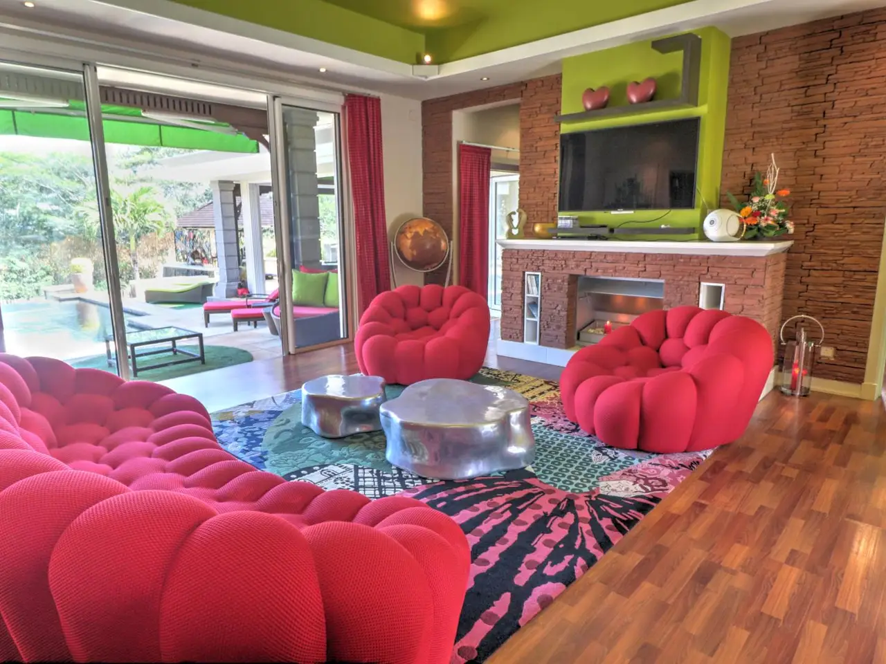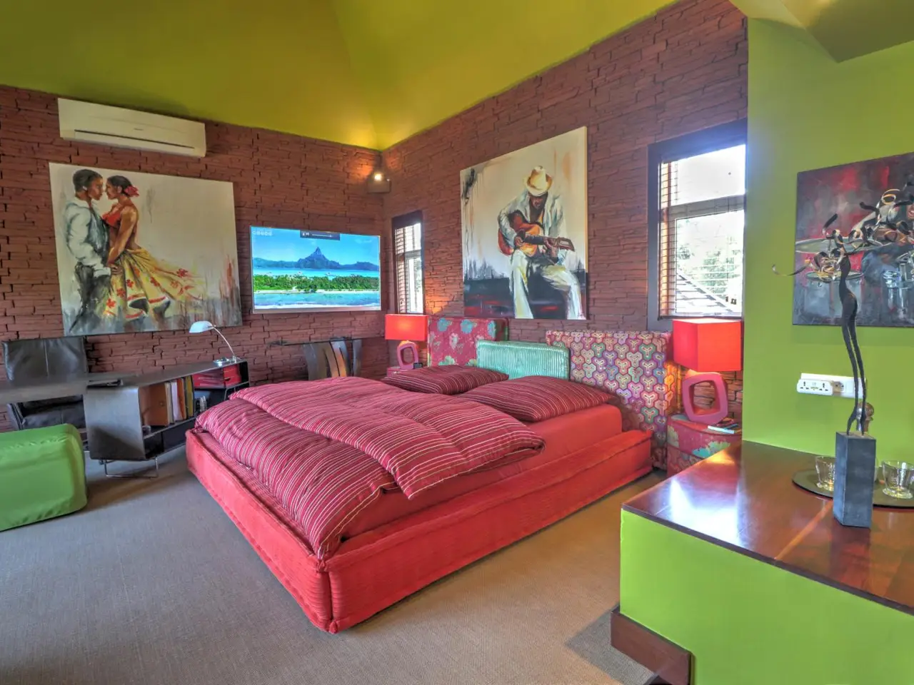 This 3-bedroom villa for sale in Heritage Villas Valriche, a reputed golf estate in the South-West of Mauritius, boasts exceptional sea views, colourful rooms and a hand-picked art collection. Known for its bold hues and personalised features, the property makes a bold statement in one of the most renowned golf estates in Mauritius. The property is situated on a spacious plot of 1350 m2, offering 2 swimming pools, a multipurpose basketball/badminton court , a private jacuzzi corner, a cinema room, an entertainment room, a covered fitness area by the main pool, 2 garages with three golf carts included in the price, and an outdoor teppanyaki bar. The 409 m2 villa, is dotted with a selection of art pieces, curated from across the world and included in the sales price. One of the bedrooms makes the ideal guest suite with its private bathroom, kitchenette, lounge and private terrasse. The spacious main bedroom is found on the first floor with lovely views of the sea. The new owner will not only benefit from the indulging lifestyle features this property has to offer, defined by statement pieces and leisure furnishing, but the latter will also be able to access the estate’s established facilities and clubs such as: the Heritage golf club, the gastronomic restaurant situated at the historic Chateau de Bel Ombre, private nature reserves, the C beach club providing residents access to the beach, as well as privileged access to the estates luxury partner hotels. With permanent residency upon purchase, and hands-on conciergerie services provided by the estate for owners looking to rent when not on Island, this is the ideal investment for those looking to have an exceptional property in a sought-after establishment where refined leisure is a at its core.