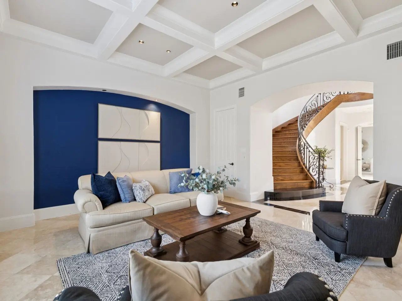 Stylish double height foyer with designer lighting