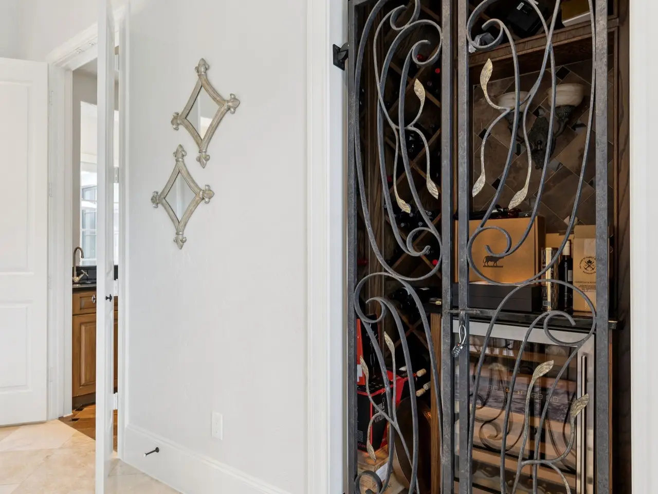 Dining room with attached wine room and butler's pantry