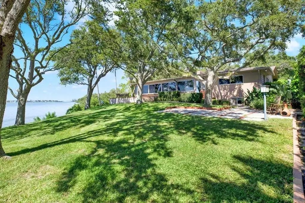 Bay-Front Home in Belleair on Rare Coastal Bluff – Waterfront views extending to Florida’s Gulf Coast! One of a handful of homes nestled on a private gate-able drive offering extraordinary privacy, this classic one-story waterfront beauty sits 14 feet atop a natural bluff overlooking Clearwater Bay. Waterfront - no flooding in 40-years ownership! Abundant windows frame mature trees and fill the home with natural light. Breath-taking views bring outdoors in, a seamless connection to surrounding natural beauty. Nearly 3000 SF, concrete construction, three bedrooms, three full and one half-bath, storage galore, living room with beautiful natural fireplace, huge dining room. Bright and spacious open-concept home perfect for entertaining. Air-conditioned terrazzo sunroom opens to patio deck with unique water views you must see to believe. Perfect for relaxing or entertaining, cooled by bay breezes, enjoying panoramic water views, stunning sunsets and entertaining wildlife...dolphins, otters, eagles and more. 720 SF basement(so rare in Florida!) with endless possibilities; playroom, gym, storage, man cave, etc. Riparian rights ensure continued enjoyment of a myriad of water activities from your own backyard including kayaking, fishing, paddleboarding and more, perhaps your own dock! Bordered to the south by green space and to the north by more than five acres of water-front park land, this property provides a rare level of privacy and seclusion. Enjoy peaceful walks along the water, surrounded by a symphony of bird songs beneath a canopy of majestic oaks. Belleair offers a small-town atmosphere with sophisticated conveniences … quality restaurants and shopping, town recreation center and prestigious Pelican and Belleair Country Club are within two miles, and Florida’s stunning Gulf Coast beaches are just minutes away. Belleair’s long history, civic pride and year-round community events make it one of Tampa Bays most sought-after neighborhoods. All this and just thirty minutes from TPA. Don’t miss this opportunity to own an incredibly unique piece of paradise.