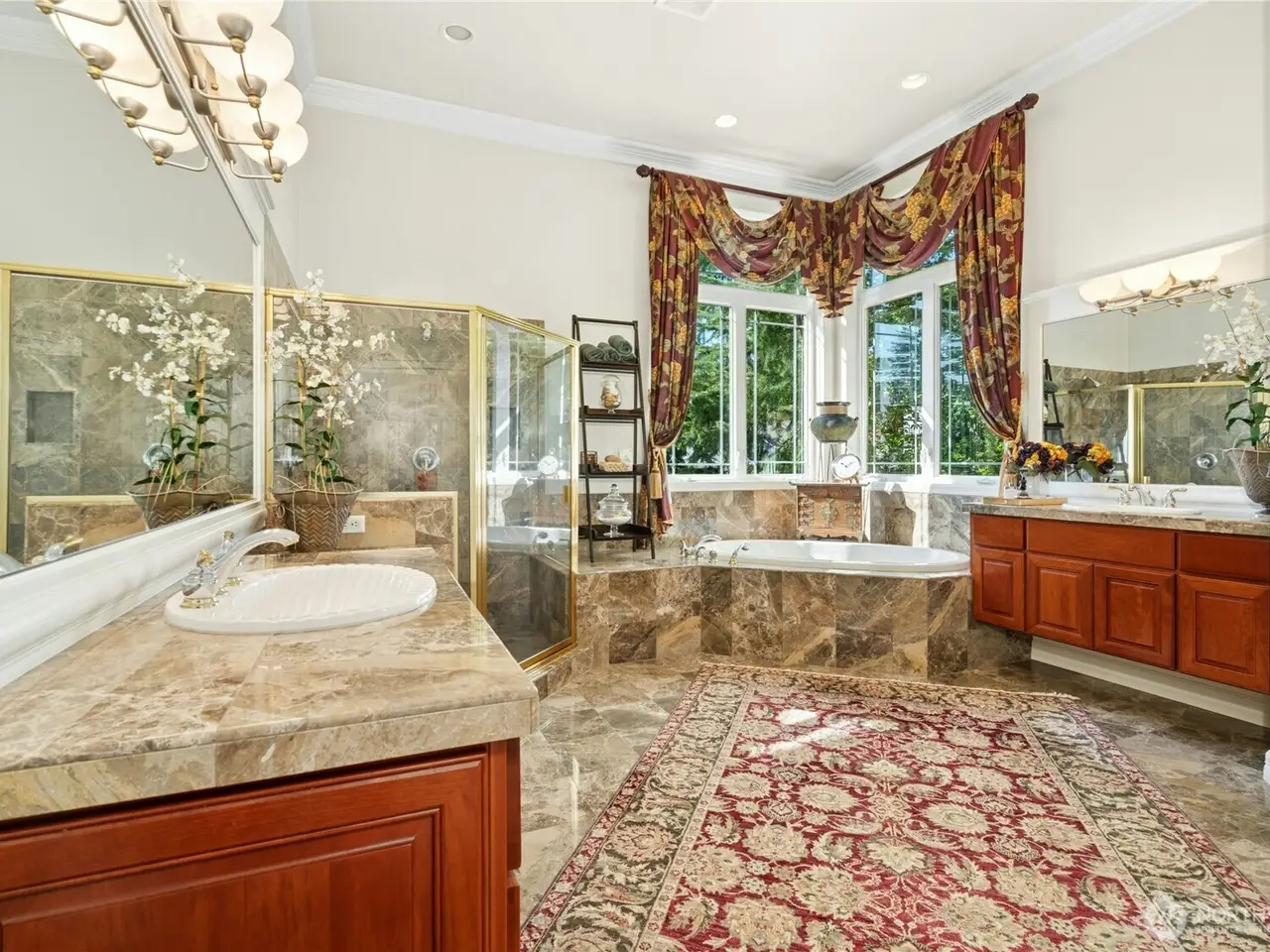 Welcome to an exquisite multi-generational 5 BR/5BA residence spanning 5,520 sq ft including the primary suite and a second BR on the first floor. The main floor features elegant formal and informal spaces, wood-paneled office and butler's pantry with wet bar and wine closet. An elegant curved staircase leads to two upstairs bedrooms, each with a private bath and a cozy sitting/play area. The lower level includes a spacious BR with full bath, a versatile great room with a large wet bar, and 2 more rooms for exercise, play, or study. New DaVinci roof in 2025. Convenient access to I-90 & 405, downtown Bellevue/Seattle/Sea-Tac airport. The Summit is a coveted community with security, a clubhouse, workout room, two pools and tennis/pickleball.