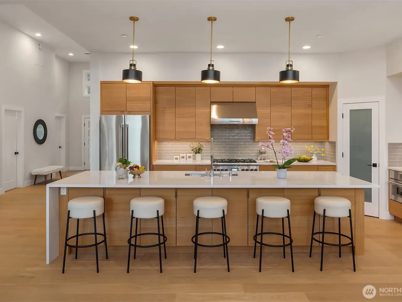 Designer chef's kitchen with waterfall island