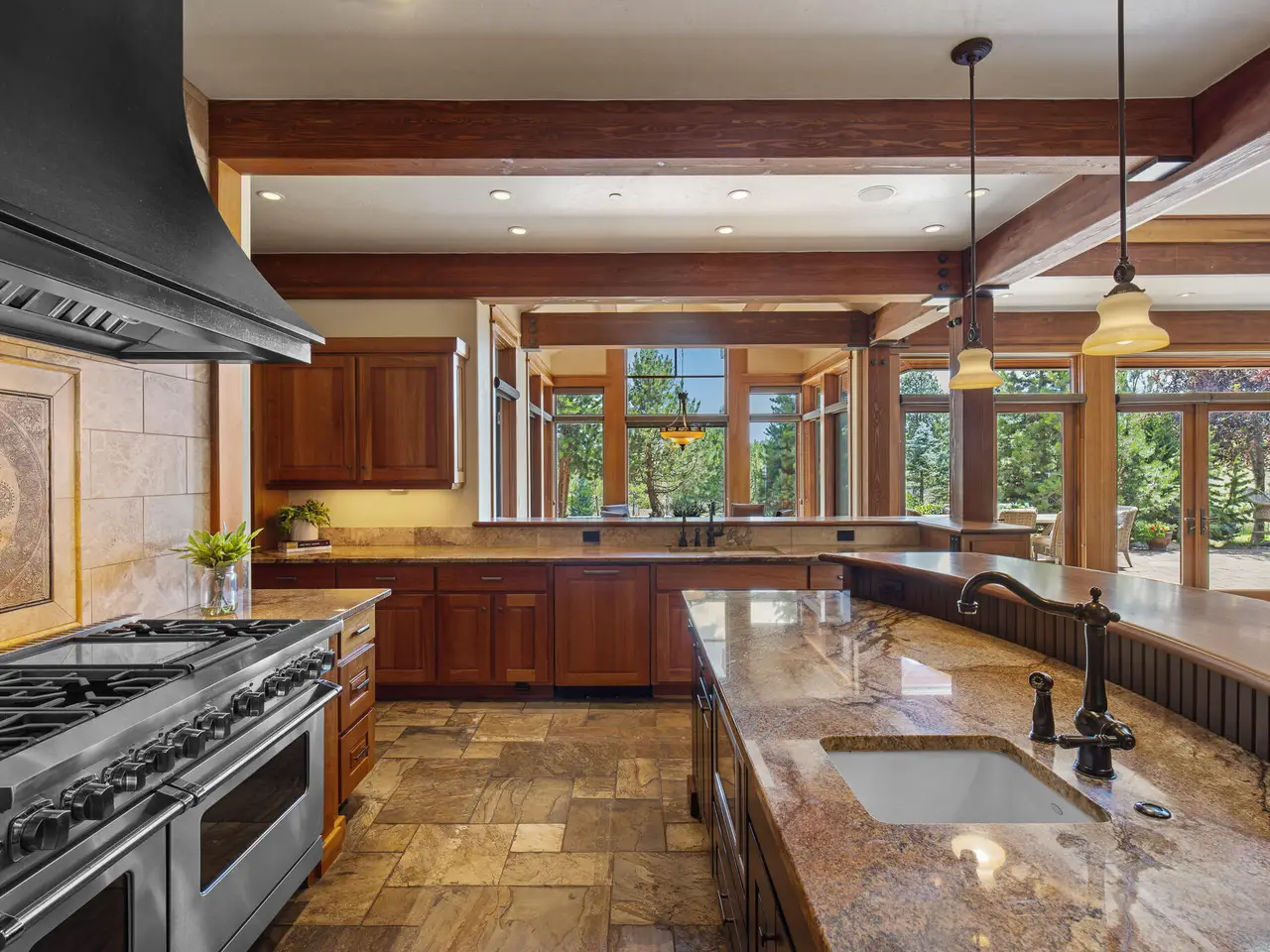 Experience privacy & elegance in this stunning Norman-built estate, nestled on 10.09 acres in the prestigious gated community of The Highlands at Broken Top. Thoughtfully designed w/ exquisite craftsmanship & high-end finishes throughout, this property offers the ultimate in Central Oregon living. The gourmet kitchen is a chef's dream, featuring veined slab granite, custom cherry wood cabinetry, dual breakfast bars, & a Sub-Zero refrigerator. The open-concept great rm showcases a floor-to-ceiling stone & wood gas fireplace. The main-level primary suite is a true retreat w/ a cozy gas fireplace, spacious walk-in closets, a soaking tub, & a luxurious double shower. A private office w/ custom built-ins, a serene library, wine cellar, home theater, swimming pool & hot tub. This home has a detached 1,776 SF guest house, 3 heated garages provide space for up to 9 cars.