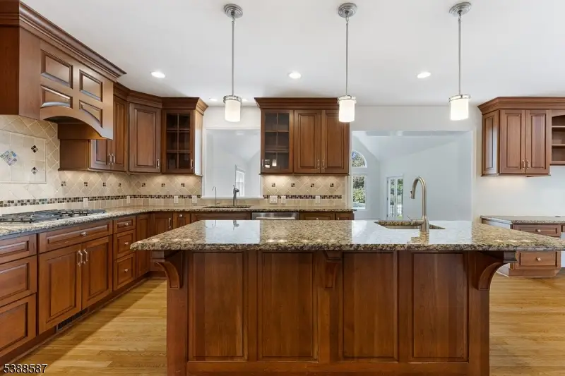 Welcome to this beautifully maintained custom Cape Cod home, featuring 4 spacious bedrooms, 3 full bathrooms, and a 3-car garage. The main level offers a bright and inviting living room, a formal dining room, and a gourmet kitchen complete with a center island and a charming wood burning fireplace. A sun-drenched family room overlooks the heated saltwater in-ground pool. A first-floor bedroom with a full bath, along with a mudroom and laundry closet, adds comfort and convenience. Upstairs, you'll find 2 generously sized bedrooms with a shared hallway full bathroom with double vanity, as well as a luxurious primary suite boasting a walk-in closet, a spa-like bathroom, and a bonus sitting room/ office (which could be a 5th bedroom). Attic access is also available for additional storage. The finished basement provides extra recreational space and ample storage. Outside, enjoy a serene, fenced-in backyard complete with a pool, fire pit, playground, mature fruit trees, blueberry and raspberry bushes, and full garden. Located in an established neighborhood with top-rated schools and easy access to major highways, this home truly has it all.