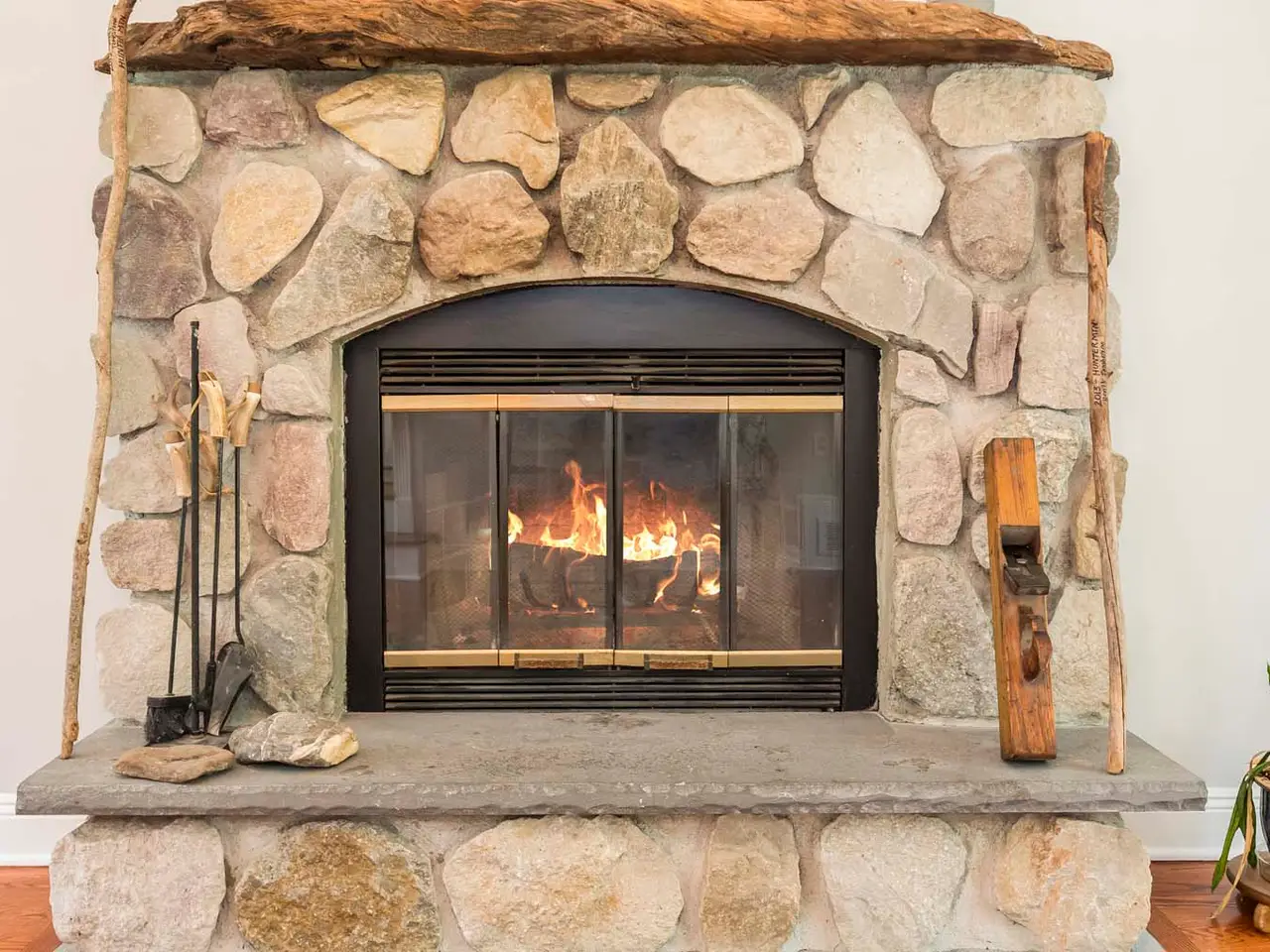 • Striking stone fireplace