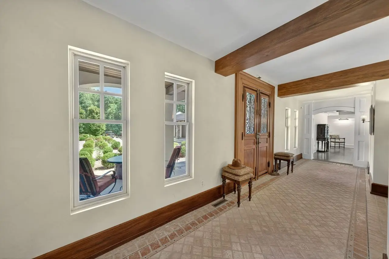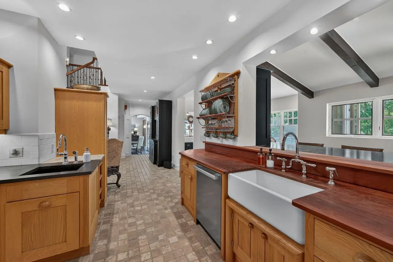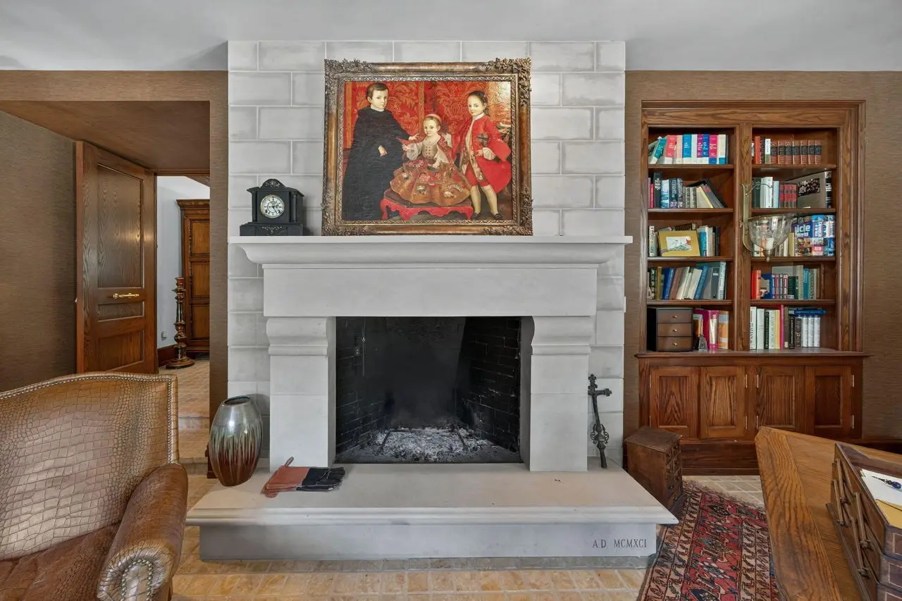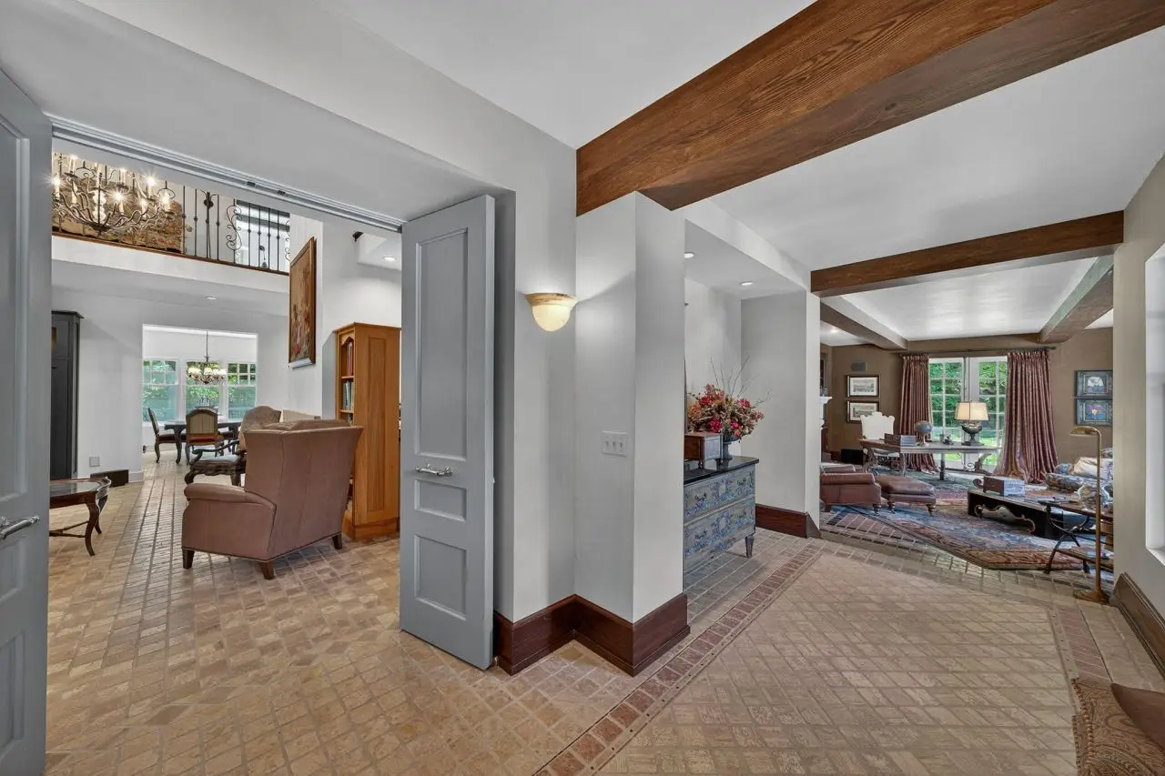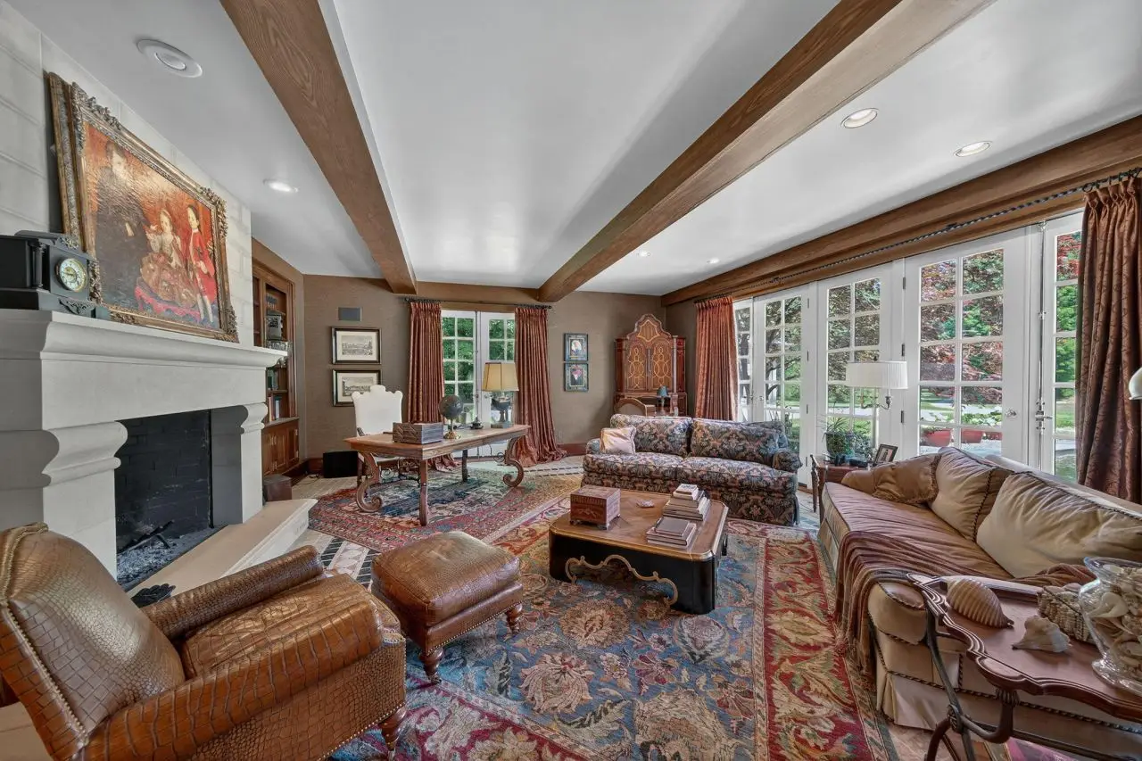 Welcome to your private sanctuary, nestled on 60 secluded acres in the rolling hills of Southwestern Michigan's renowned wine country. This extraordinary property evokes the charm and elegance of a European country estate, combining timeless design with modern comfort and masterful craftsmanship. From the moment you arrive, a sense of serenity and refinement surrounds you. Enter the main residence through antique front doors imported from a French townhome in Provence, and step into a home where every detail has been thoughtfully curated for beauty, quality, and ease of living. The home is designed for a relaxed yet sophisticated lifestyle, with tumbled marble flooring throughout the main level for effortless maintenance and a total of 7 fireplaces that bring warmth and ambiance to every room. The spacious family room features a Rumford fireplace, white oak beams, a pine-decked ceiling, and stunning white oak floors made from trees harvested on the property. The living room, with its limestone Rumford fireplace and custom oak double doors, opens into a formal dining room with yet another fireplace and access to a covered porch with beamed ceilings and a stone fireplace; ideal for outdoor entertaining. At the heart of the home is a bespoke kitchen designed by De Giulio of Chicago. It features English Olive Ash cabinetry by Smallbone Bespoke Cabinetry, additional custom pieces by Ayr Cabinetry, and premium appliances including an iconic, red 4-oven AGA range, Sub-Zero refrigerator, freezer, plus drawers. The kitchen is thoughtfully arranged with multiple work surfaces for specialized tasks, including granite and Burmese teak counters, a soapstone vegetable sink, and a stunning maple parquetry chopping block. Just off the breakfast room is a charming Summer Kitchen outfitted with an AGA Bordeaux companion range, titanium granite counters, thick plank hand-hewn oak shelving, and additional granite workspaces. Upstairs, the home continues to impress with a custom library wrapping around the landing. The primary suite offers a peaceful retreat with its own fireplace, a balcony overlooking the gardens and reflection pond, and a luxurious dressing area with center island, enclosed closets, and spa-like bath featuring an antique soaking tub, porcelain sink, makeup area, and a large walk-in shower with travertine marble tile. Two private guest suites, a dedicated office, a generous laundry room, and a large craft or sewing room complete the second floor. Additional living space is found in the separate guest quarters, perfect as an art studio, home office, or in-law suite; featuring its own kitchen, bath, fireplace, and laundry area. Outside, the estate includes a large pole barn with a concrete floor, power, and a covered porch, ideal for storing equipment, staging events, or extra parking. A charming stone garden house offers space for tools, potting plants, and organizing gardening supplies. Whether you're preparing meals in a chefs kitchen, enjoying peaceful mornings on the porch, exploring wooded trails, or simply taking in the tranquil views, this remarkable property offers a rare combination of seclusion, elegance, and lifestyle flexibility. It is the ultimate country refuge, crafted with intention, steeped in quality, and ready to welcome its next discerning steward.