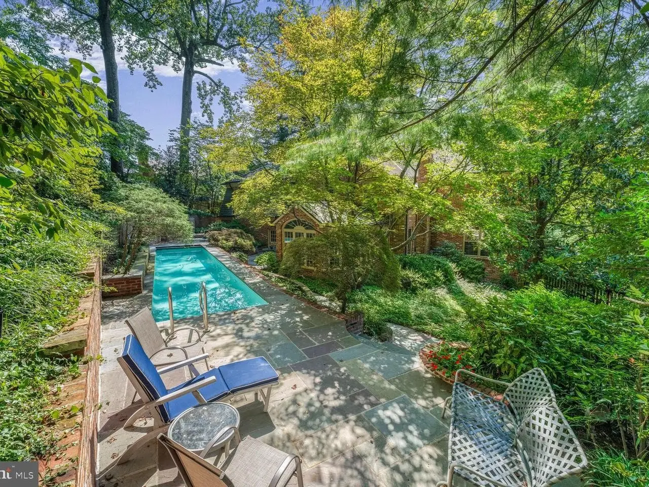 GREAT NEW PRICE ADJUSTMENT!! Fabulous opportunity to update and personalize this stately hillside home on a quiet drive in coveted Bannockburn Estates - an ideal property for entertaining on both a grand and intimate scale. The first level features a wide center-hall foyer, an elegant, embassy-sized living room, formal dining room, table-space kitchen, main-floor laundry, a large paneled family room with wet bar and powder room, plus a glass-enclosed sunroom with access to a flagstone patio, multi-level pool area and a wooded path with two more patios above. The second floor boasts four spacious bedrooms and three baths, including an expansive sitting area/office off the primary bedroom with built-ins and storage galore. The walk-out lower level offers a large paneled rec room, full bath and bonus room. With more than 6600 sf of living space, three fireplaces, slate & copper roofing, lush grounds, a double garage, extensive hardscaping, exterior lighting, an in-ground sprinkler system and more, all on a 20,000+ sf lot, this property is truly an oasis to call home.