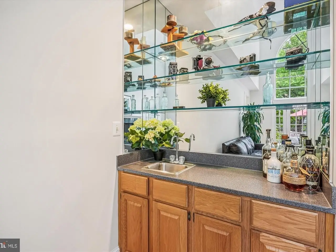 Wet bar with glass display shelving