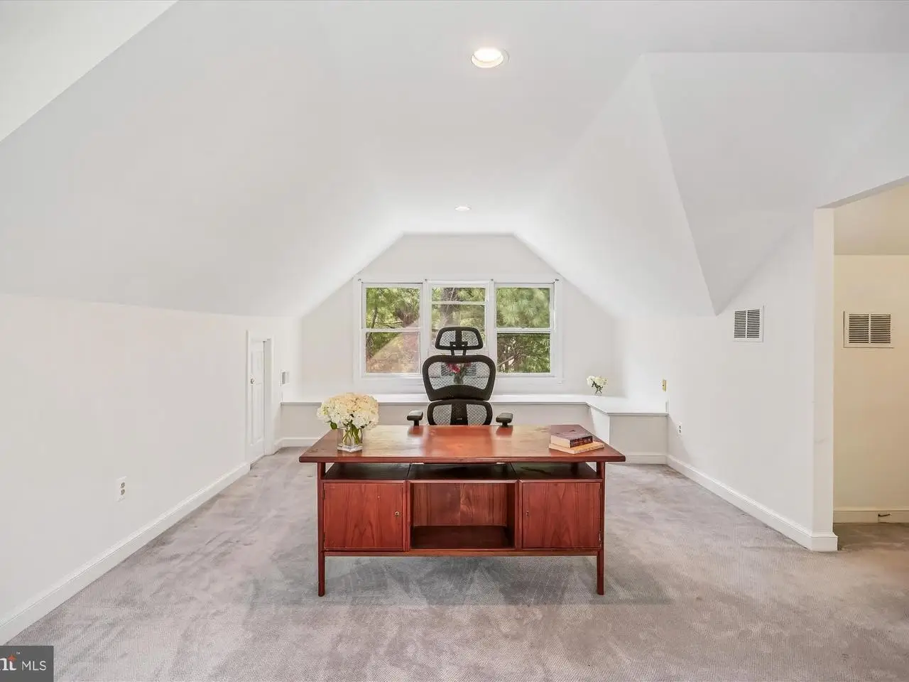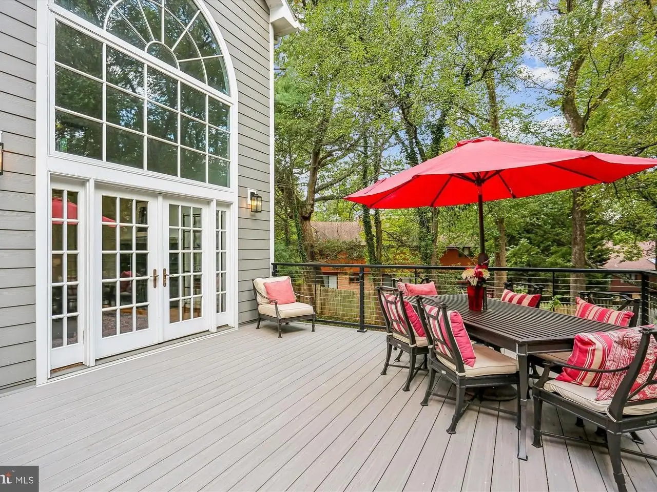 This incredible Victorian home is tucked away on a pipestem off Wilson Lane-set far from the road in a peaceful enclave. Nestled in a truly private setting with mature landscaping and ample parking, this striking contemporary residence offers over 4,500 square feet of living space, including five bedrooms and 3.5 bathrooms across three thoughtfully finished levels. Originally built in 1988, the home has been carefully updated over time, including new siding, new Trex deck, replacement windows, and a new dual-zoned HVAC system. Defined by dramatic ceiling heights, distinctive octagonal architecture, and stunning windows, this home offers a unique and inviting character. Inside, you'll find an entry foyer, a living room with crown molding, a large dining room with a China closet, a spacious kitchen with breakfast area, and a dramatic two-story family room. The sunlit kitchen features GE double wall ovens, solid surface countertops, recessed lighting, a GE Profile five-burner gas cooktop, a pantry, a built-in desk, and a fabulous octagon-shaped breakfast room with access to the Trex deck. The showstopping family room includes a soaring Palladian window, French doors to the deck, a marble wood-burning fireplace, and a built-in wet bar with glass display shelving. A powder room and coat closet complete the main level. Upstairs, the luxurious primary suite includes multiple closets with organizers-including two walk-ins-cathedral ceilings, a ceiling fan, and access to a spacious private loft. This versatile upper-level loft / retreat offers an office area with a balcony, fitness space, and a cedar walk-in closet. The primary bathroom includes a double vanity, a jetted soaking tub, and a separate shower. Two additional bedrooms, each generous in size and able to comfortably accommodate two beds, a hall bathroom, and a laundry closet complete the upper level. The walk-out lower level features a large recreation room with a fireplace and wet bar, two more bedrooms, a full bathroom, and a sizable storage room. Sitting on an extraordinary 22,559 square foot lot, the home's outdoor space includes a fenced backyard, a new Trex deck with cabled railing, a brick paver patio, a shed, a two-car garage, and additional surface parking. The home's architectural style beautifully integrates with the natural surroundings, creating a tranquil retreat with easy access to everything Bethesda has to offer. Just steps from Pyle Middle School and Whitman High School, and ideally located near Downtown Bethesda, local shopping, and the Capital Beltway-this is a rare opportunity not to be missed!